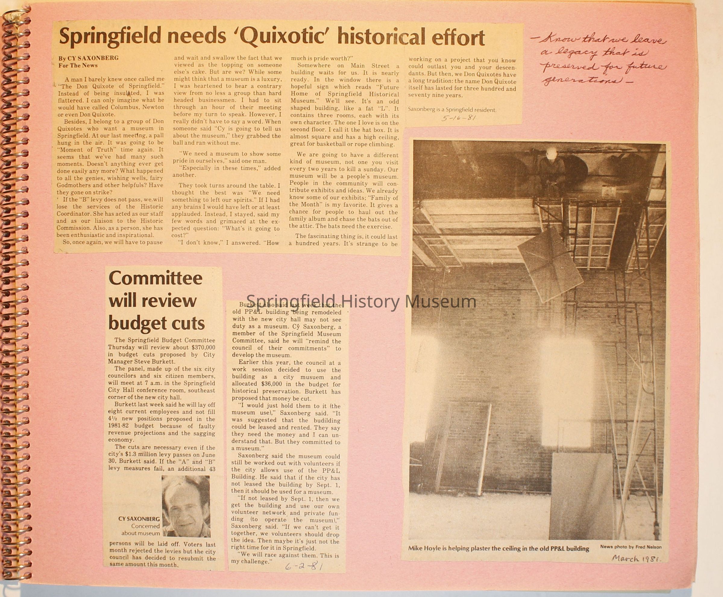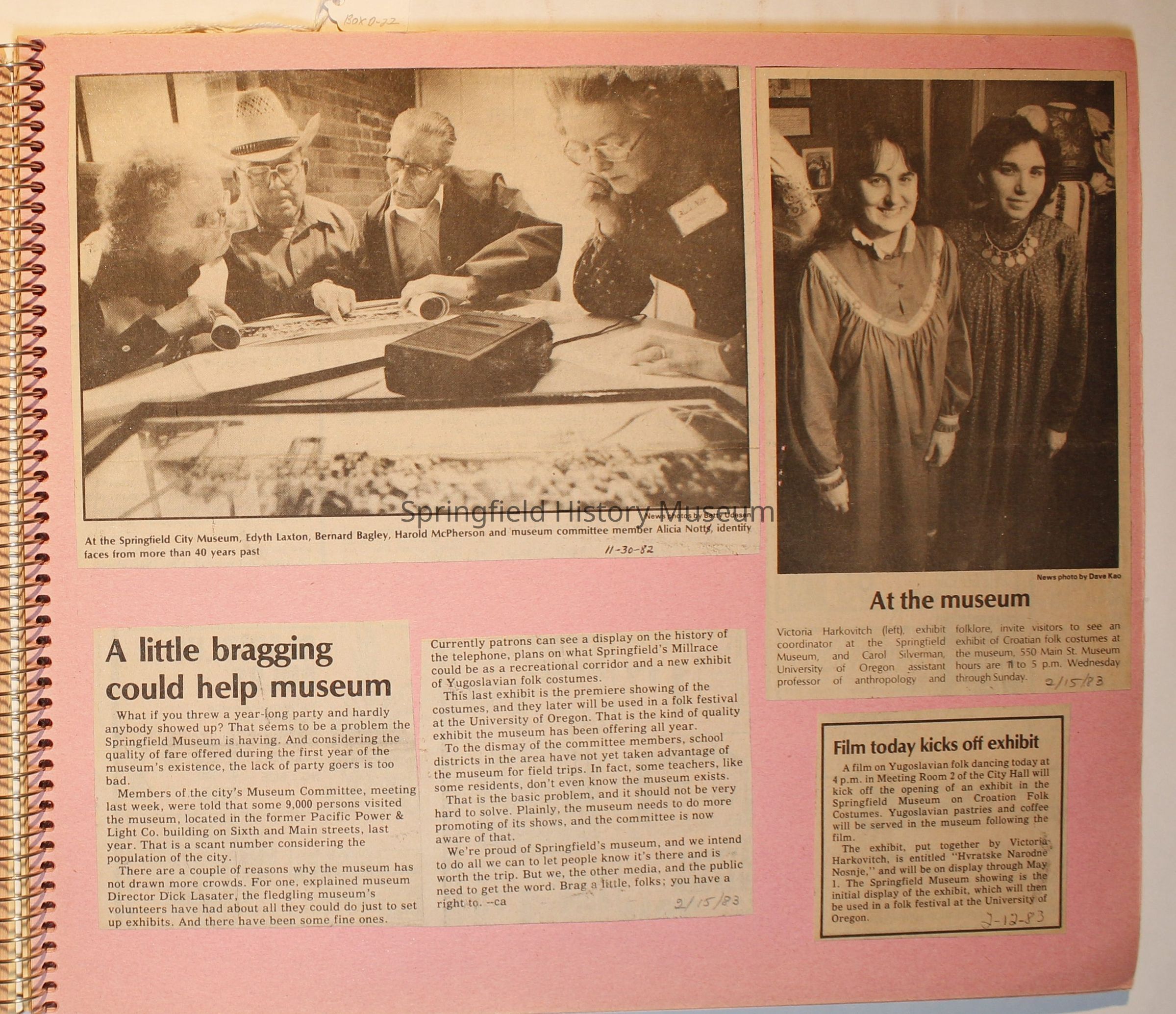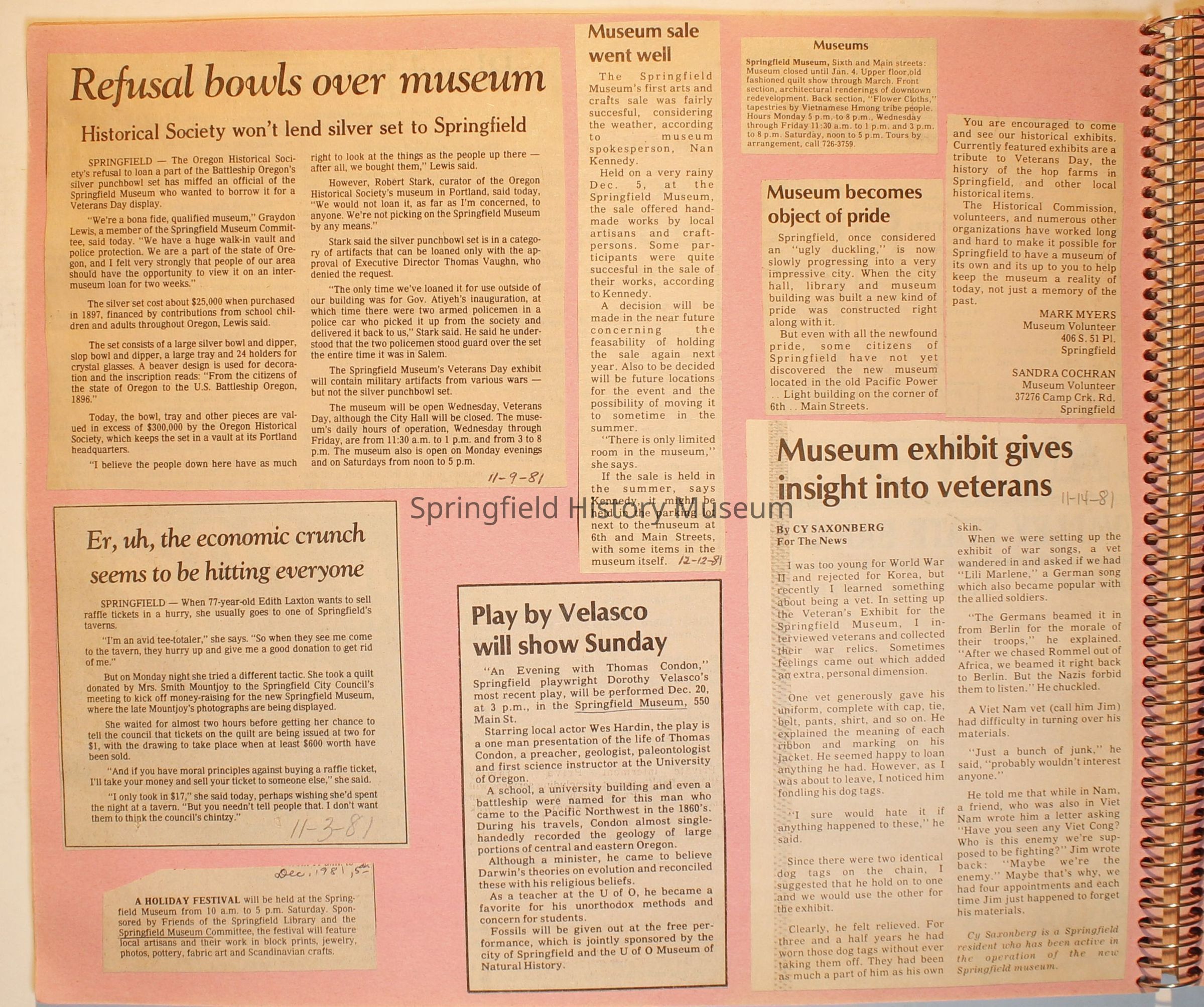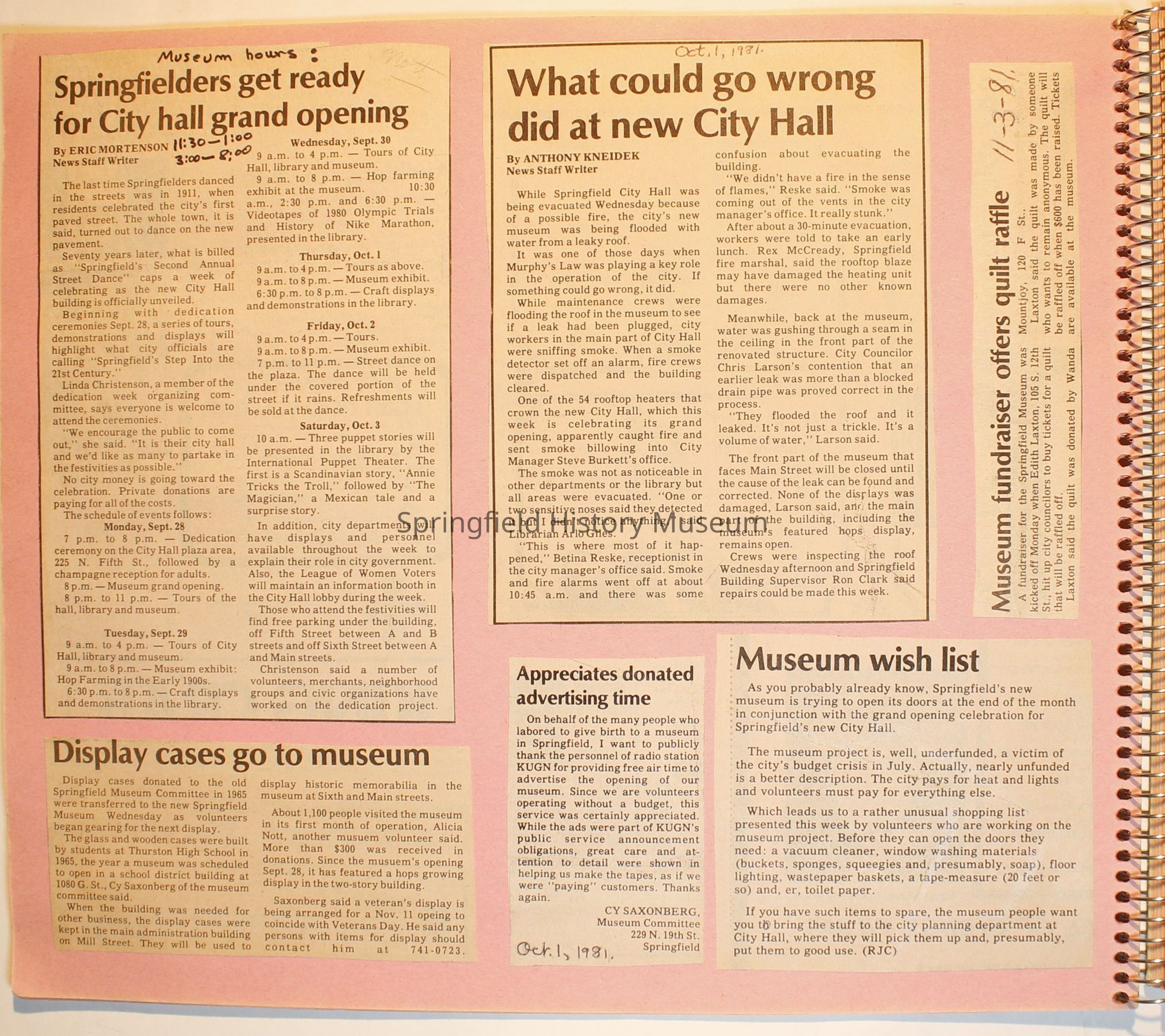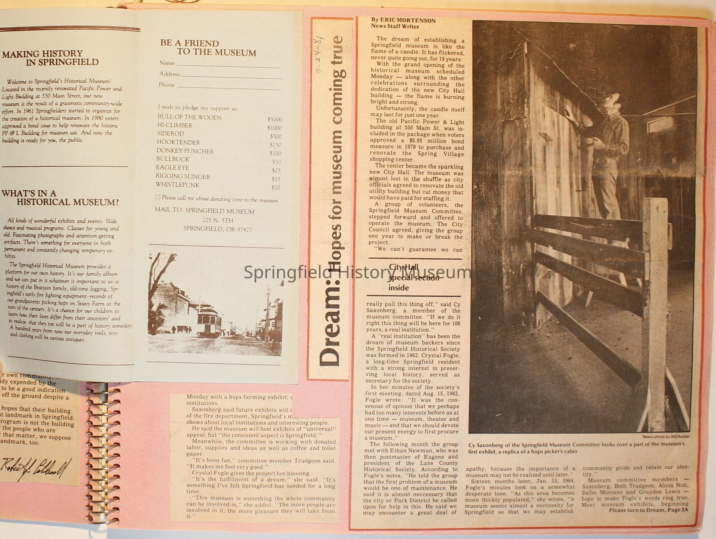 Scrapbook on the Springfield History Museum, 1981 through 1986Entry/Object ID