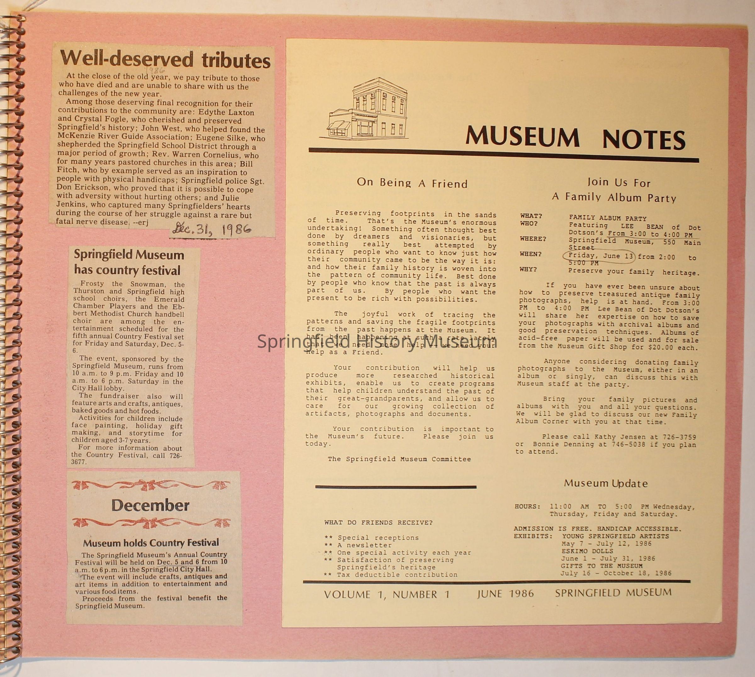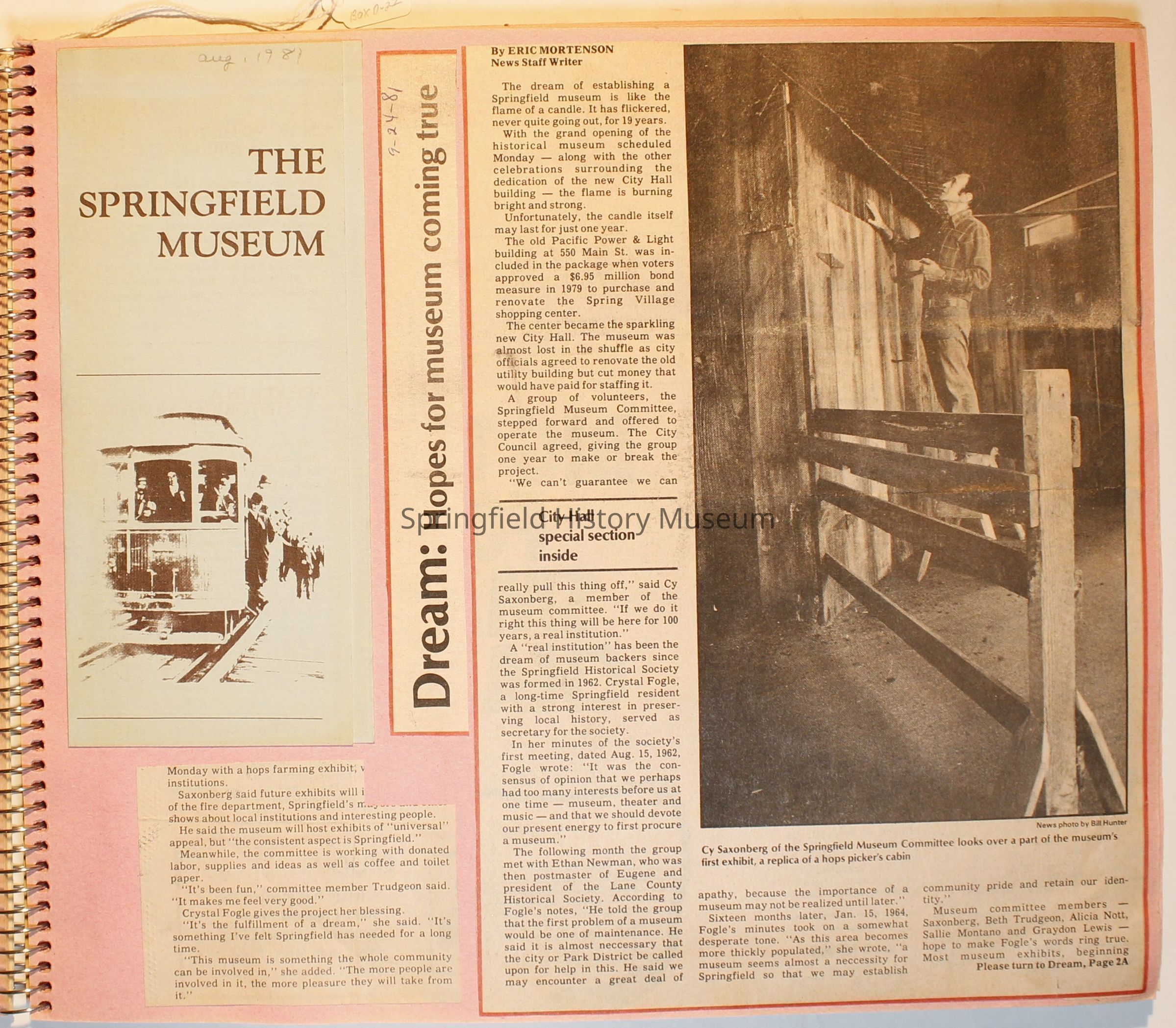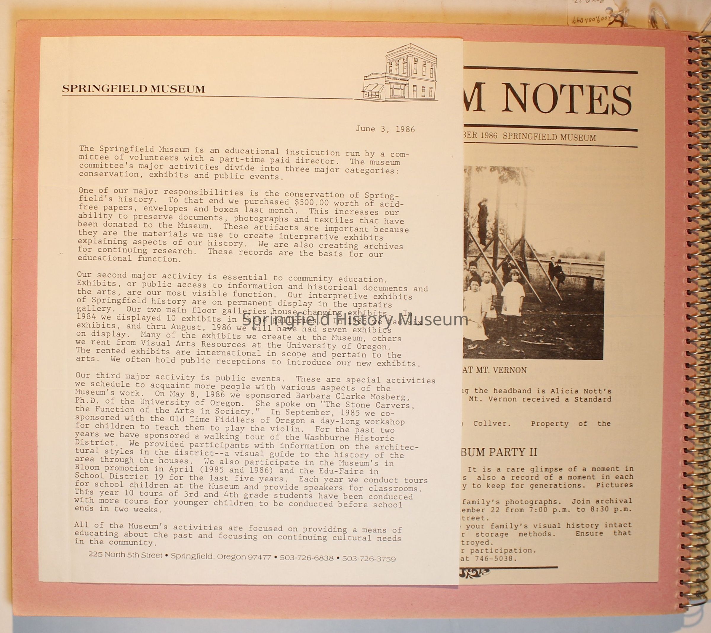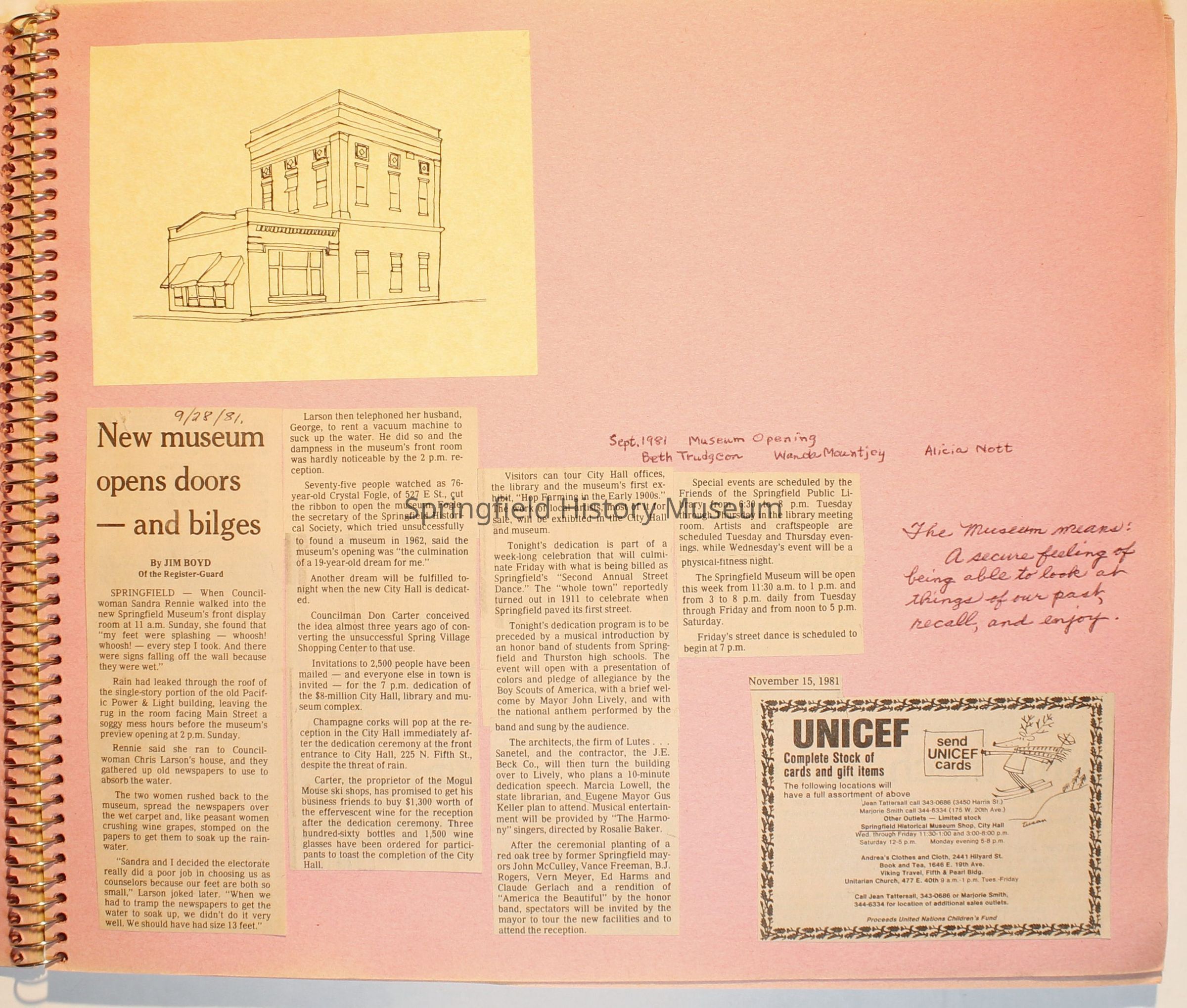 Scrapbook on the Springfield History Museum, 1981 through 1986Entry/Object ID
