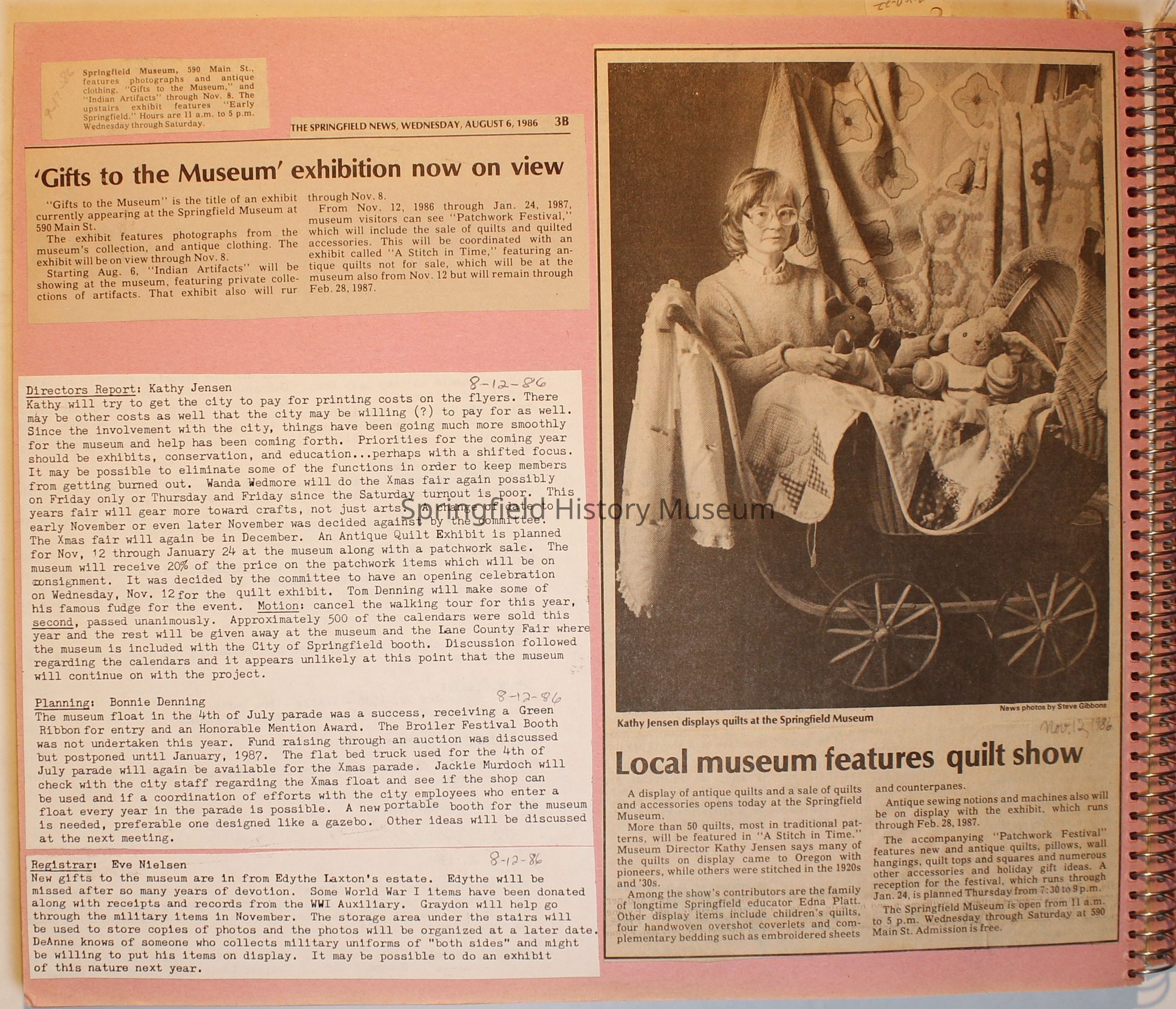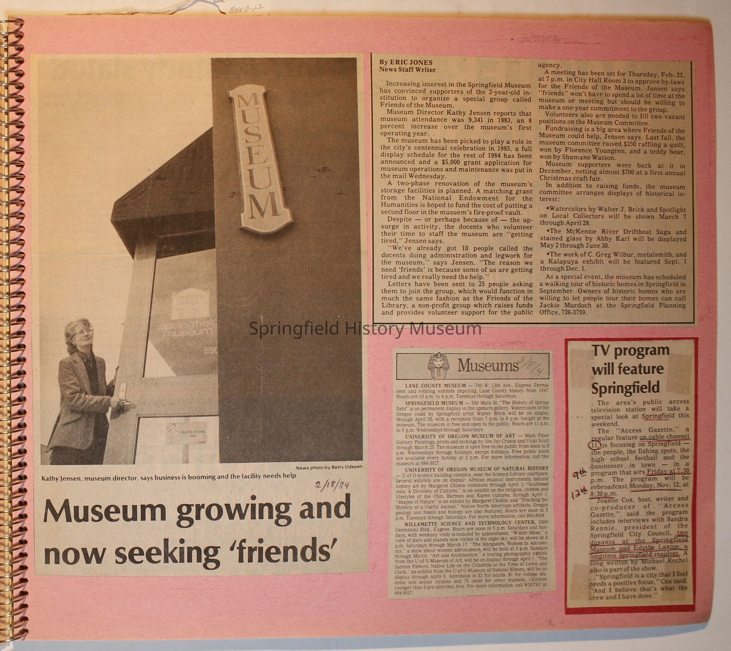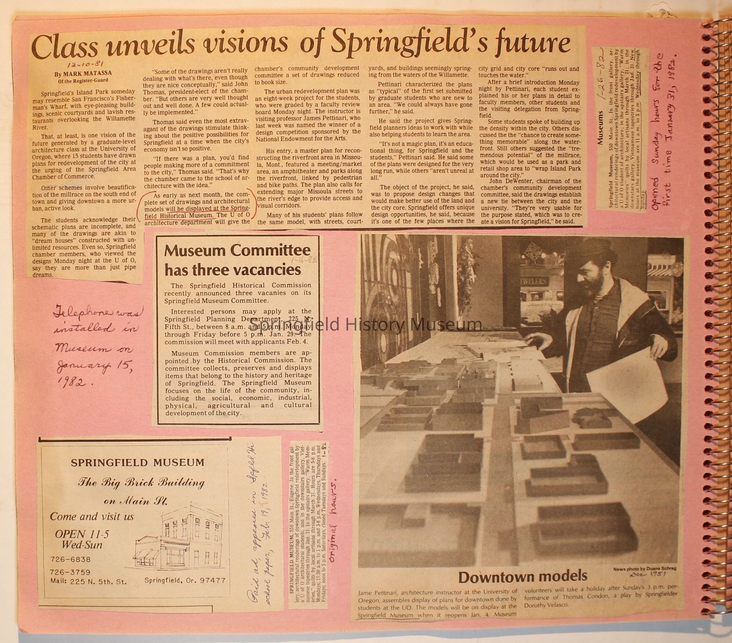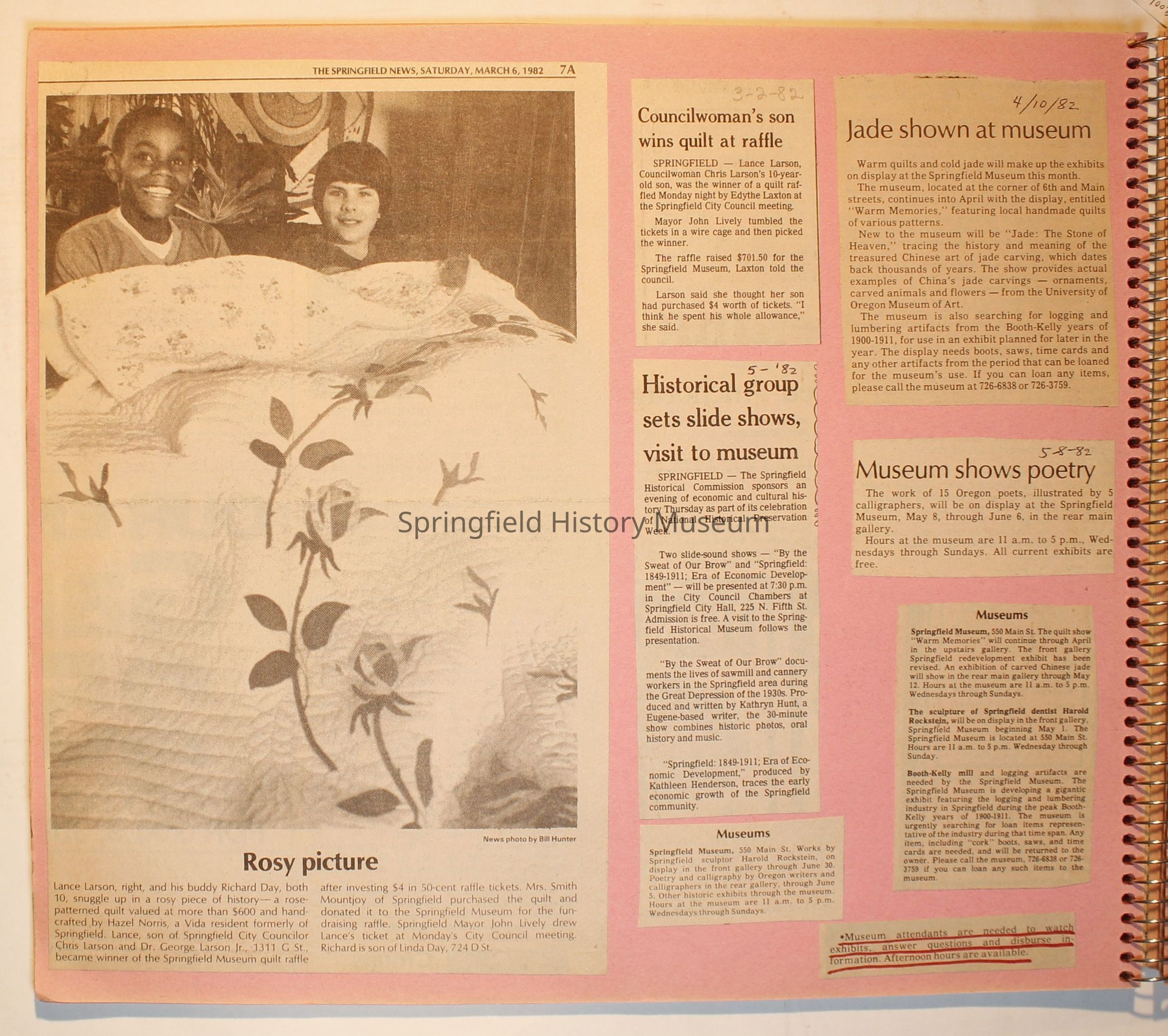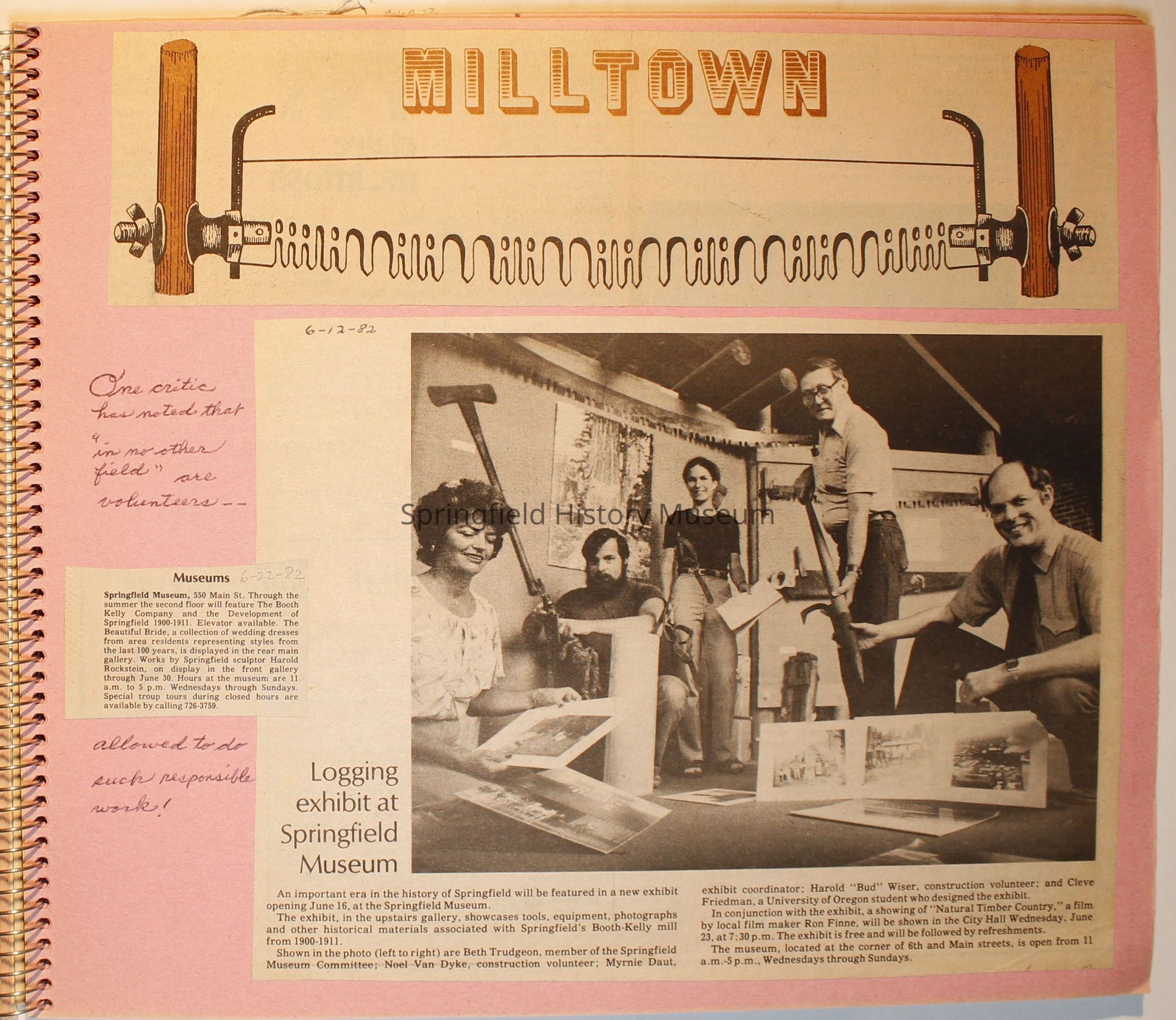 Scrapbook on the Springfield History Museum, 1981 through 1986Entry/Object ID