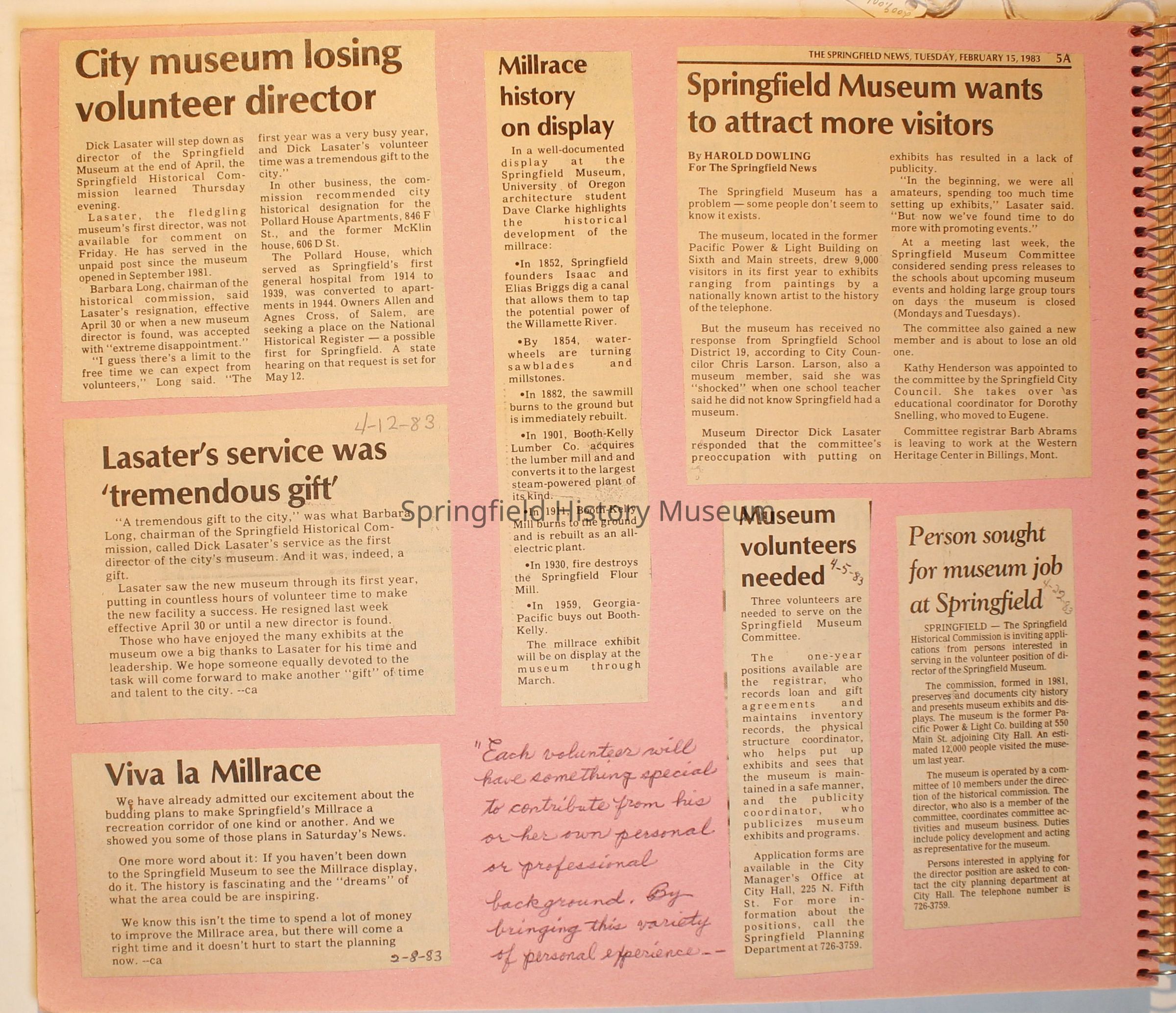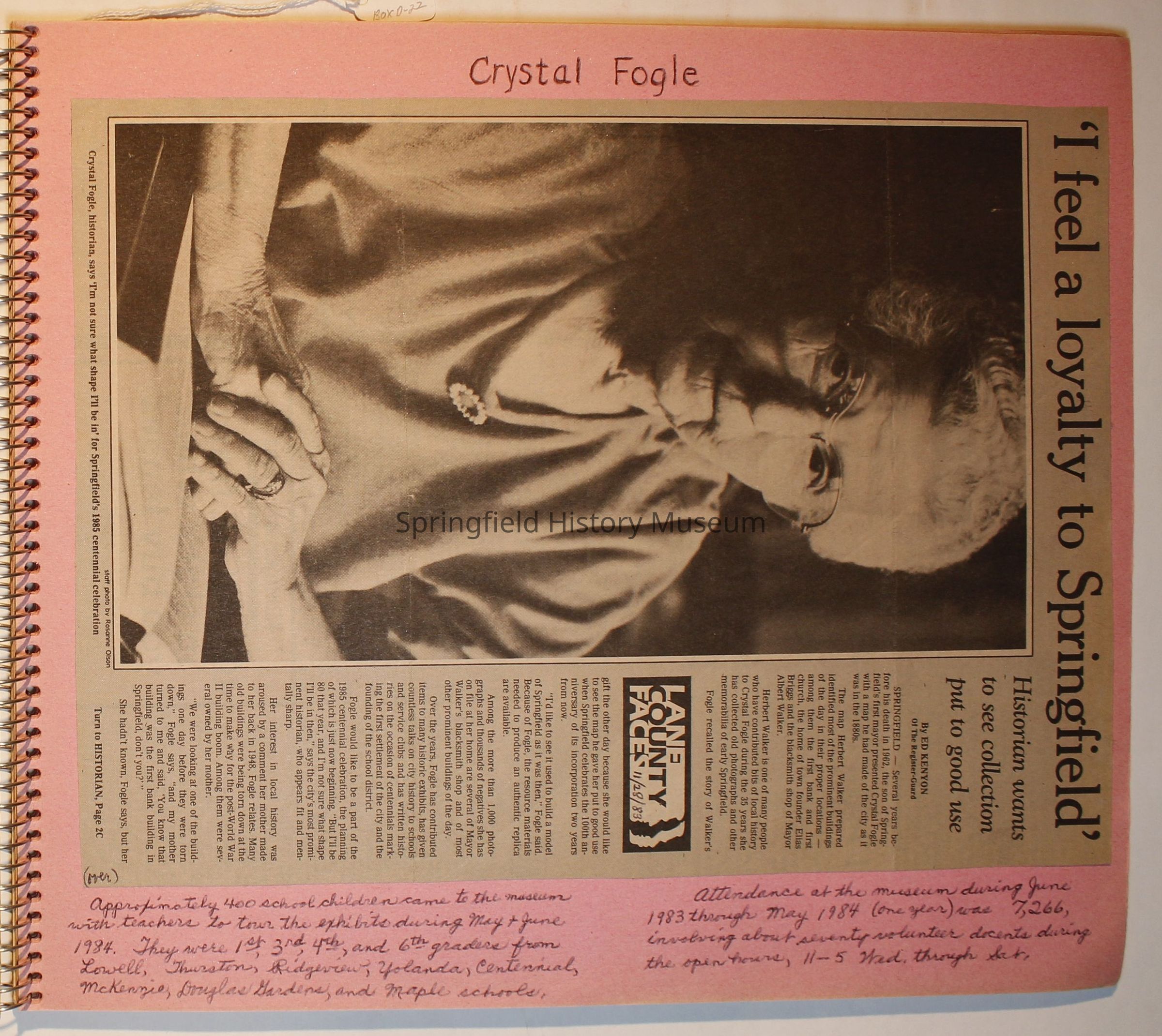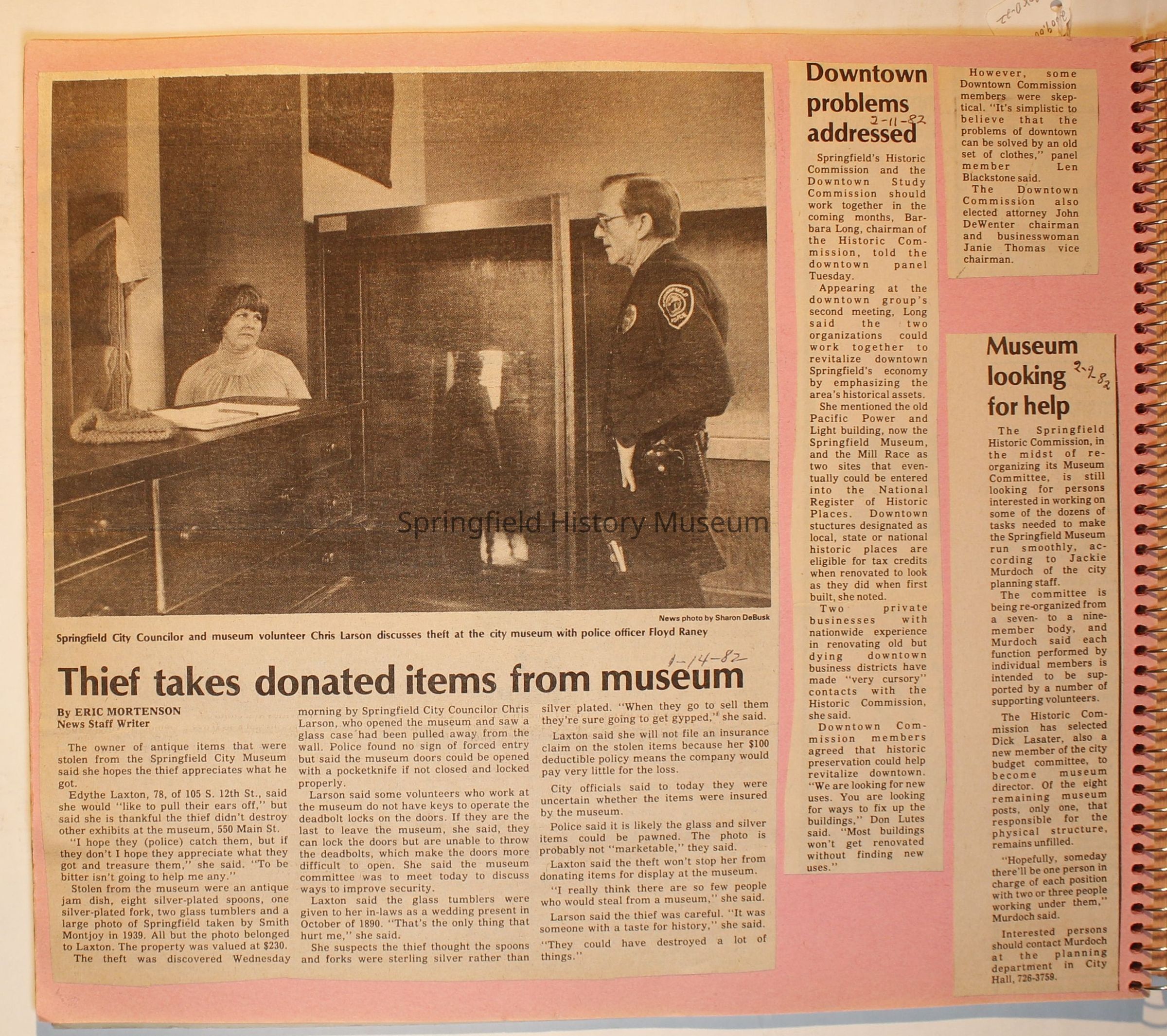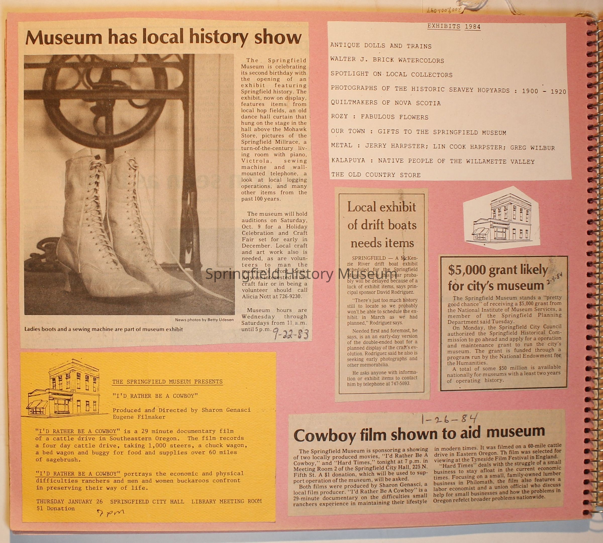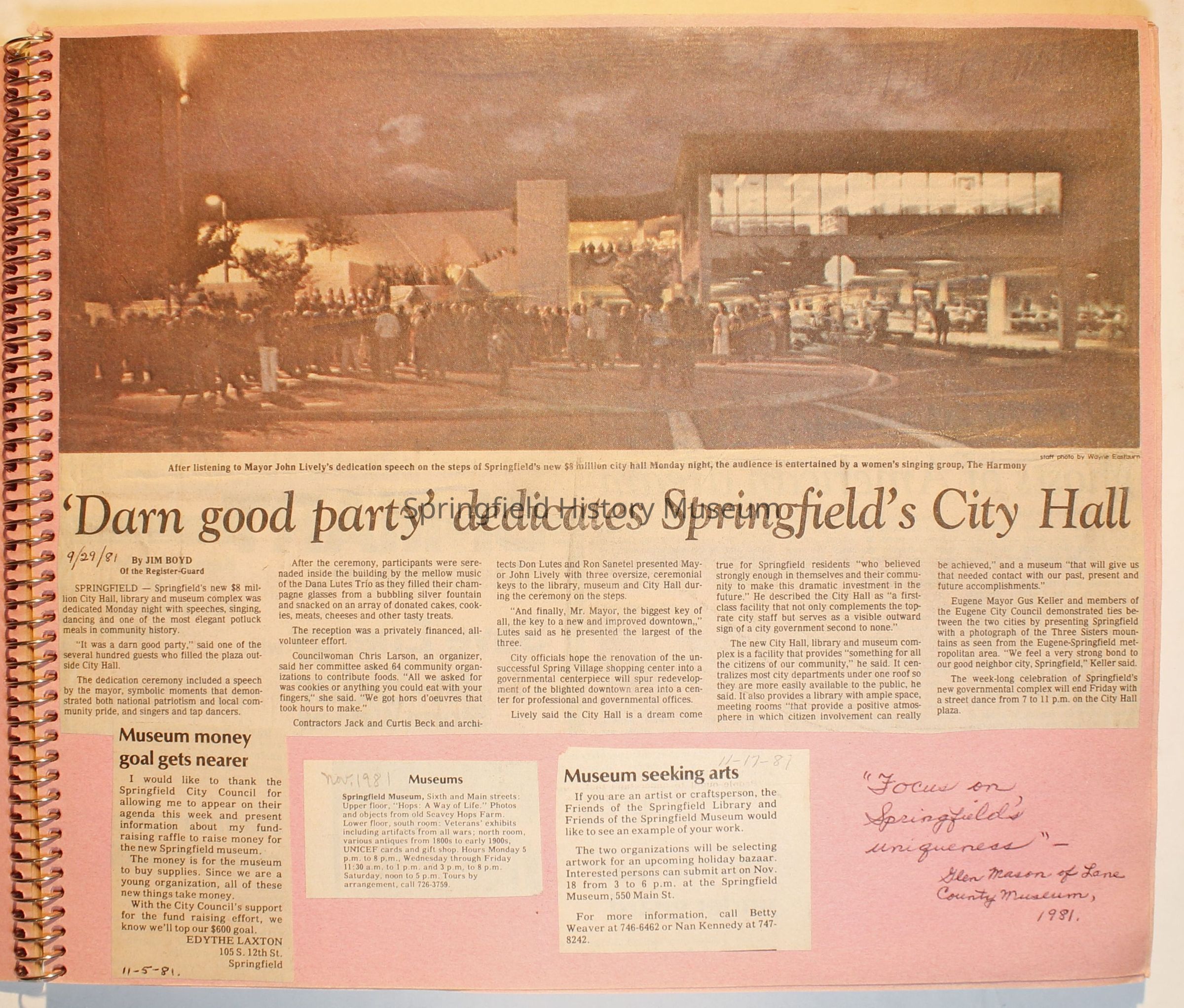 Scrapbook on the Springfield History Museum, 1981 through 1986Entry/Object ID