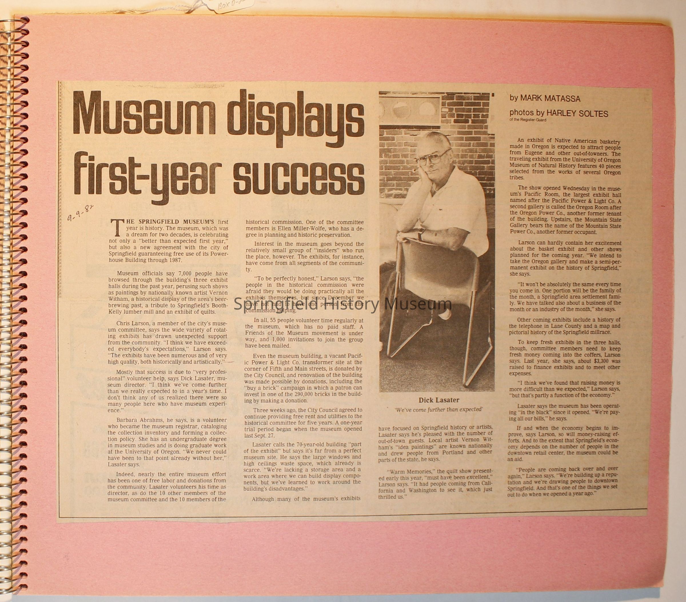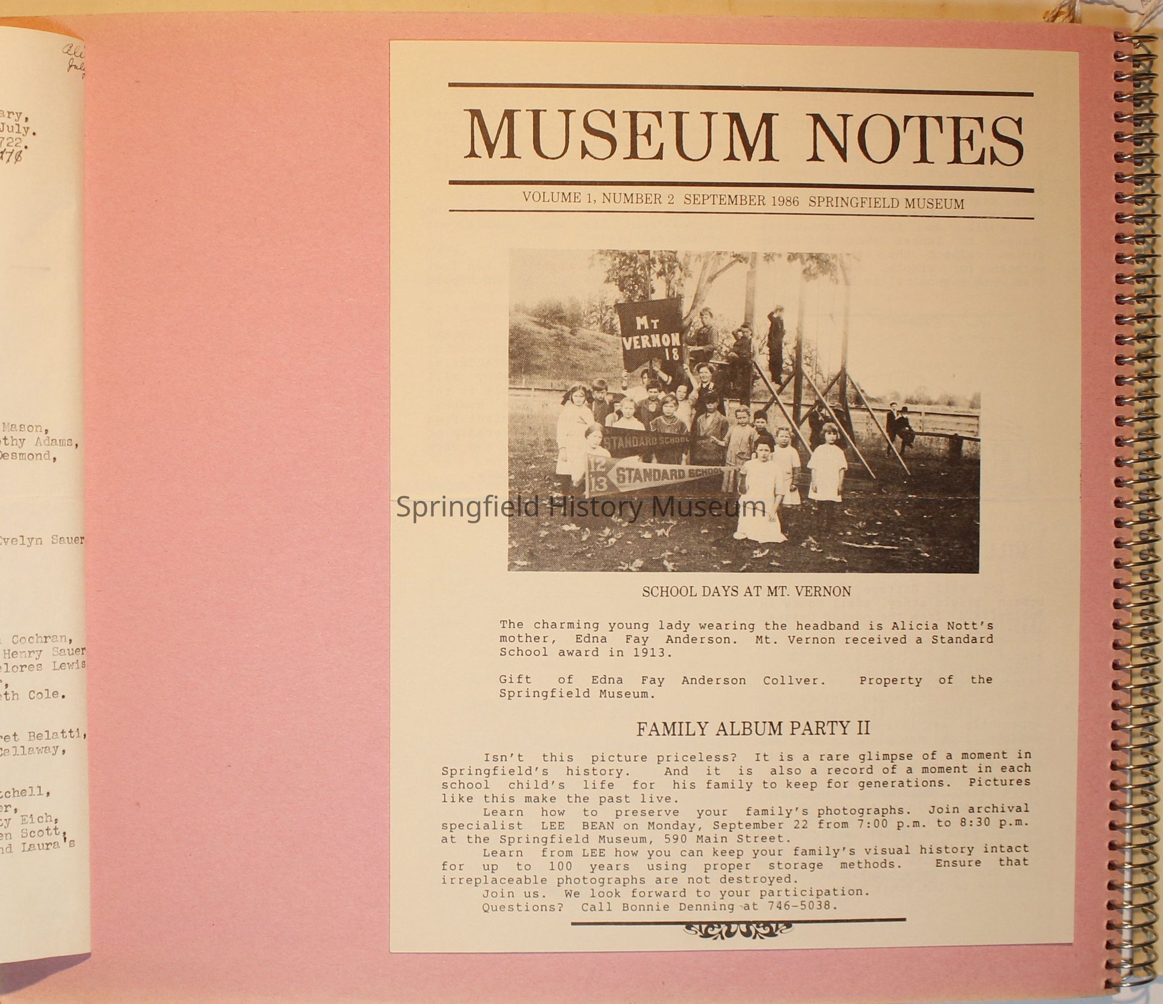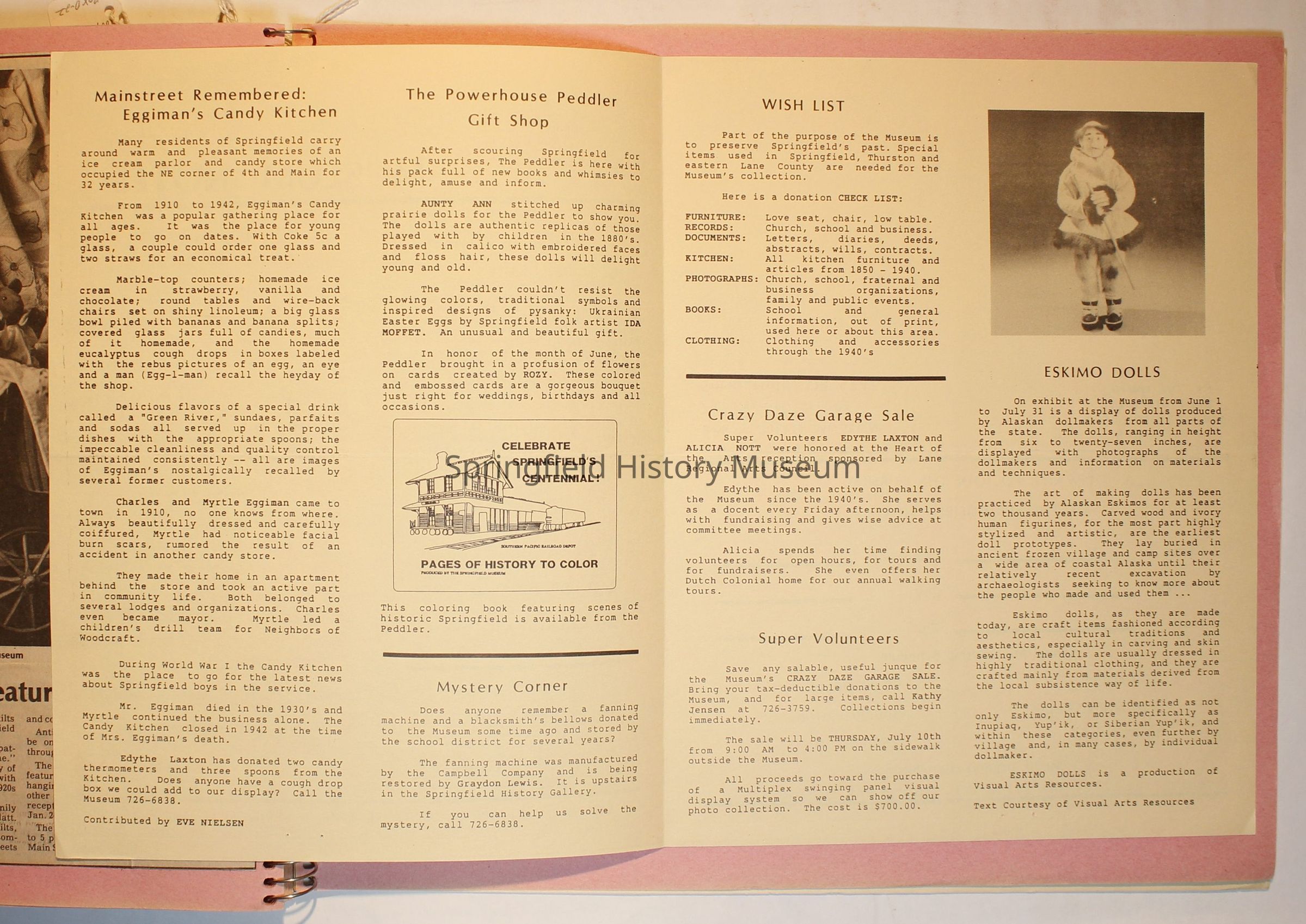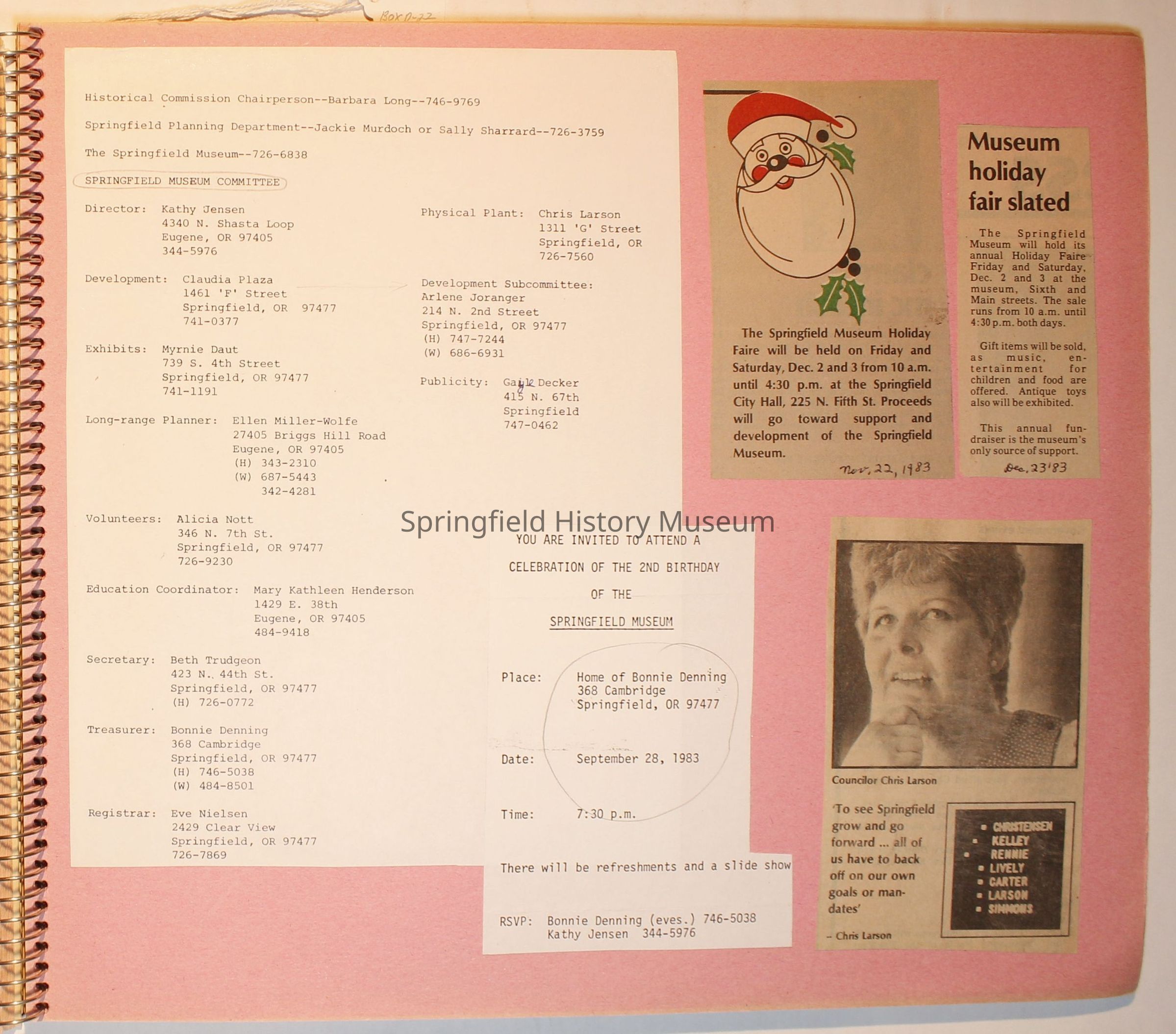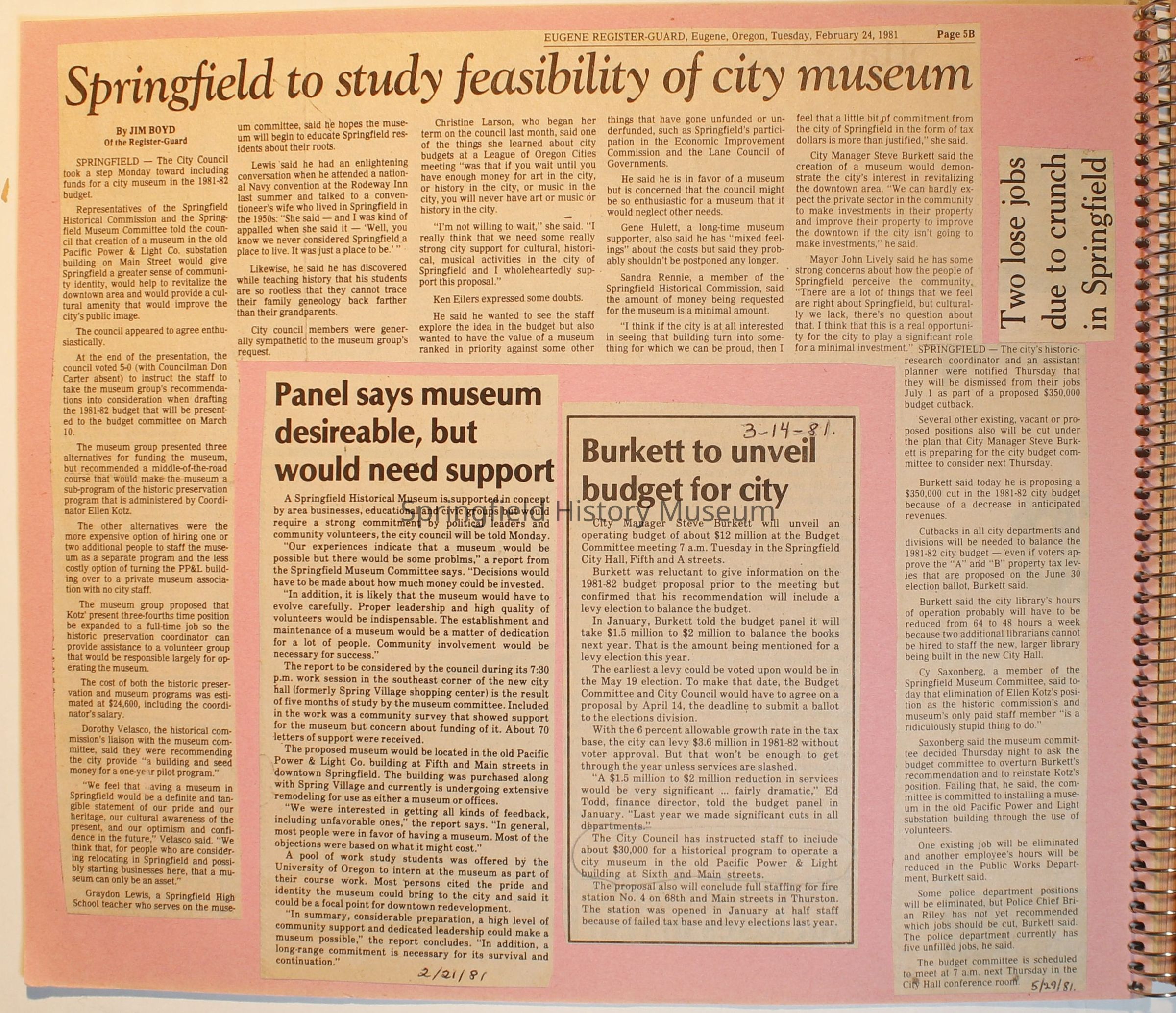 Scrapbook on the Springfield History Museum, 1981 through 1986Entry/Object ID
