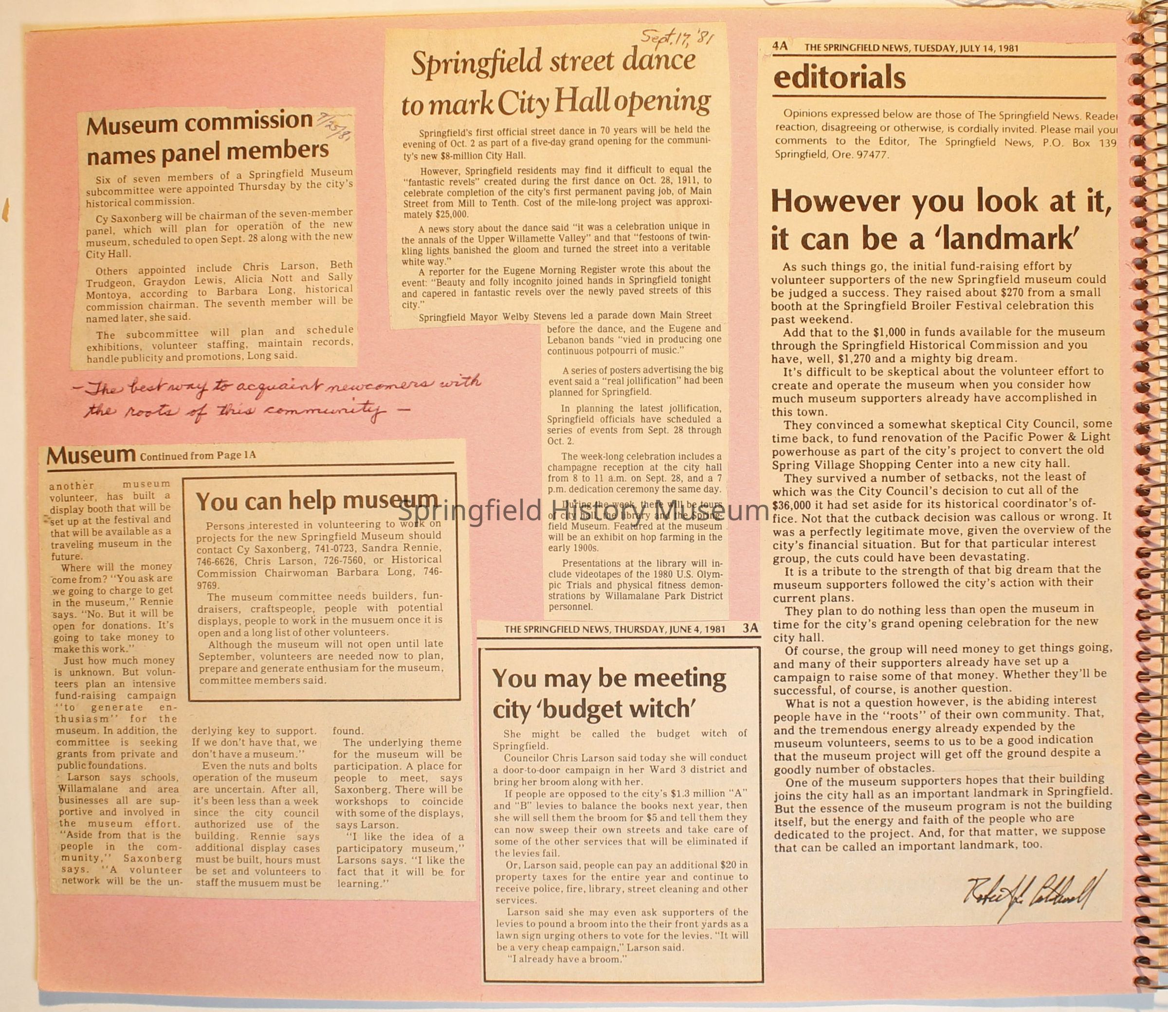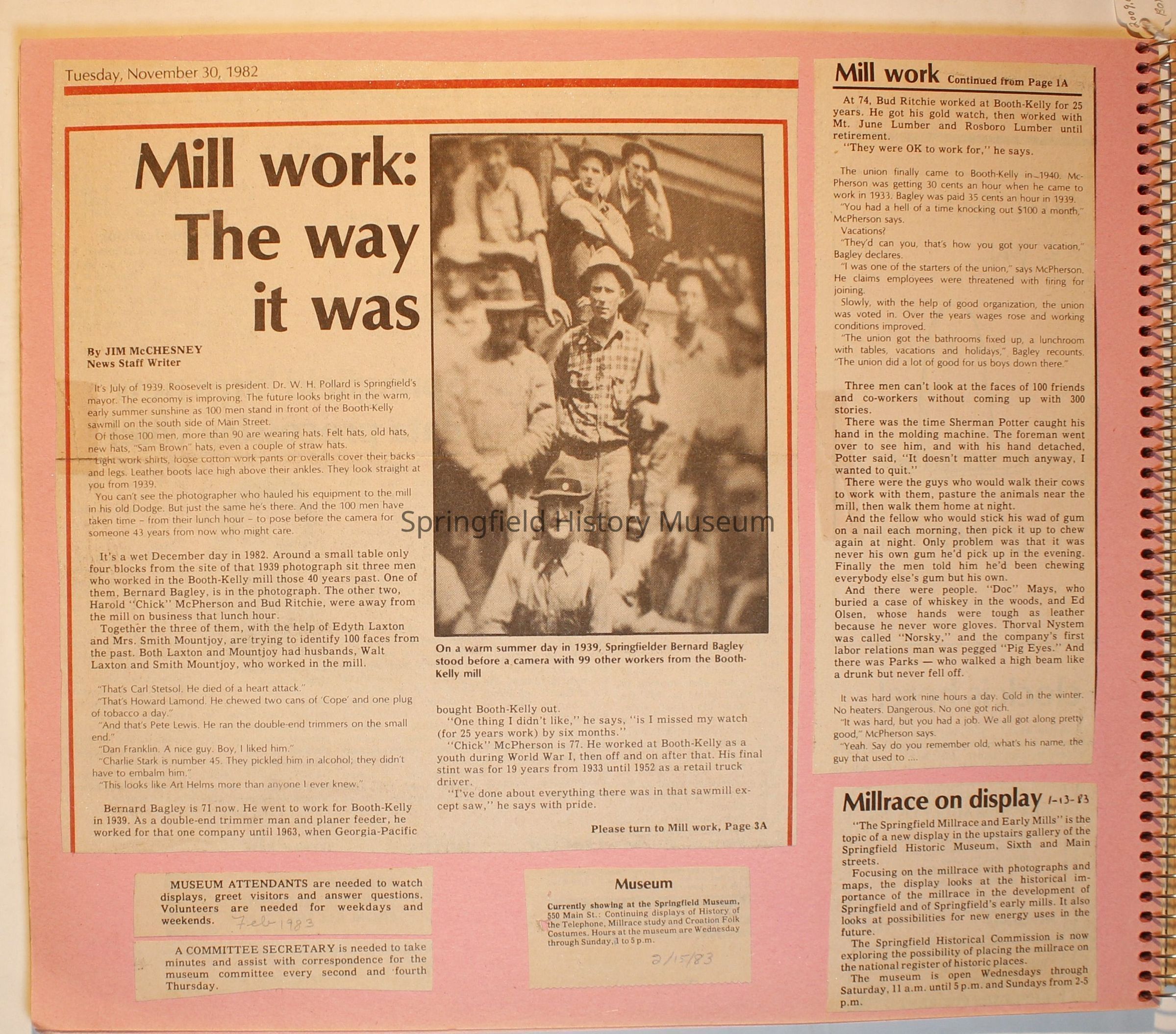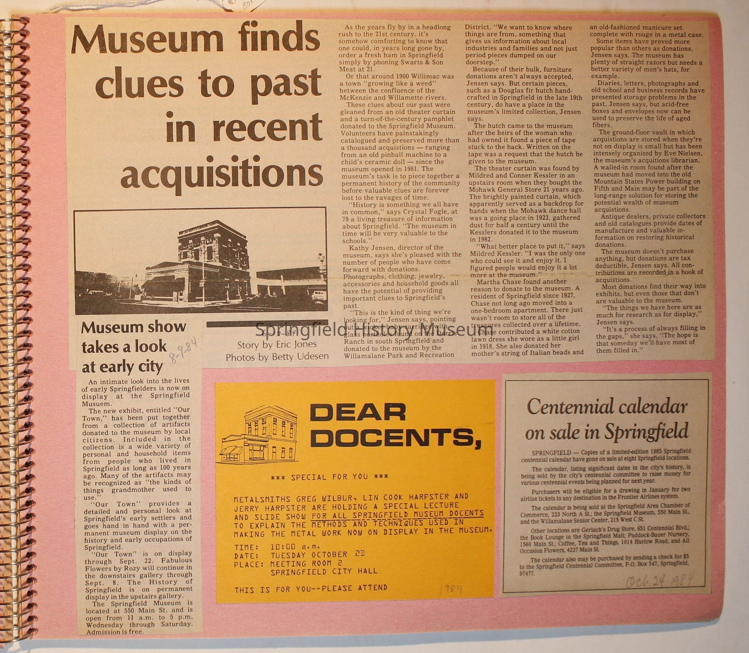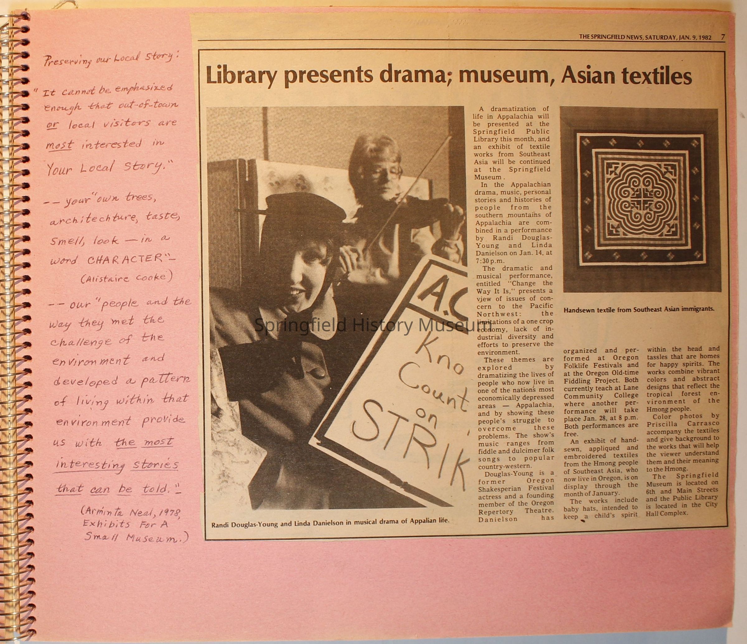 Scrapbook on the Springfield History Museum, 1981 through 1986Entry/Object ID