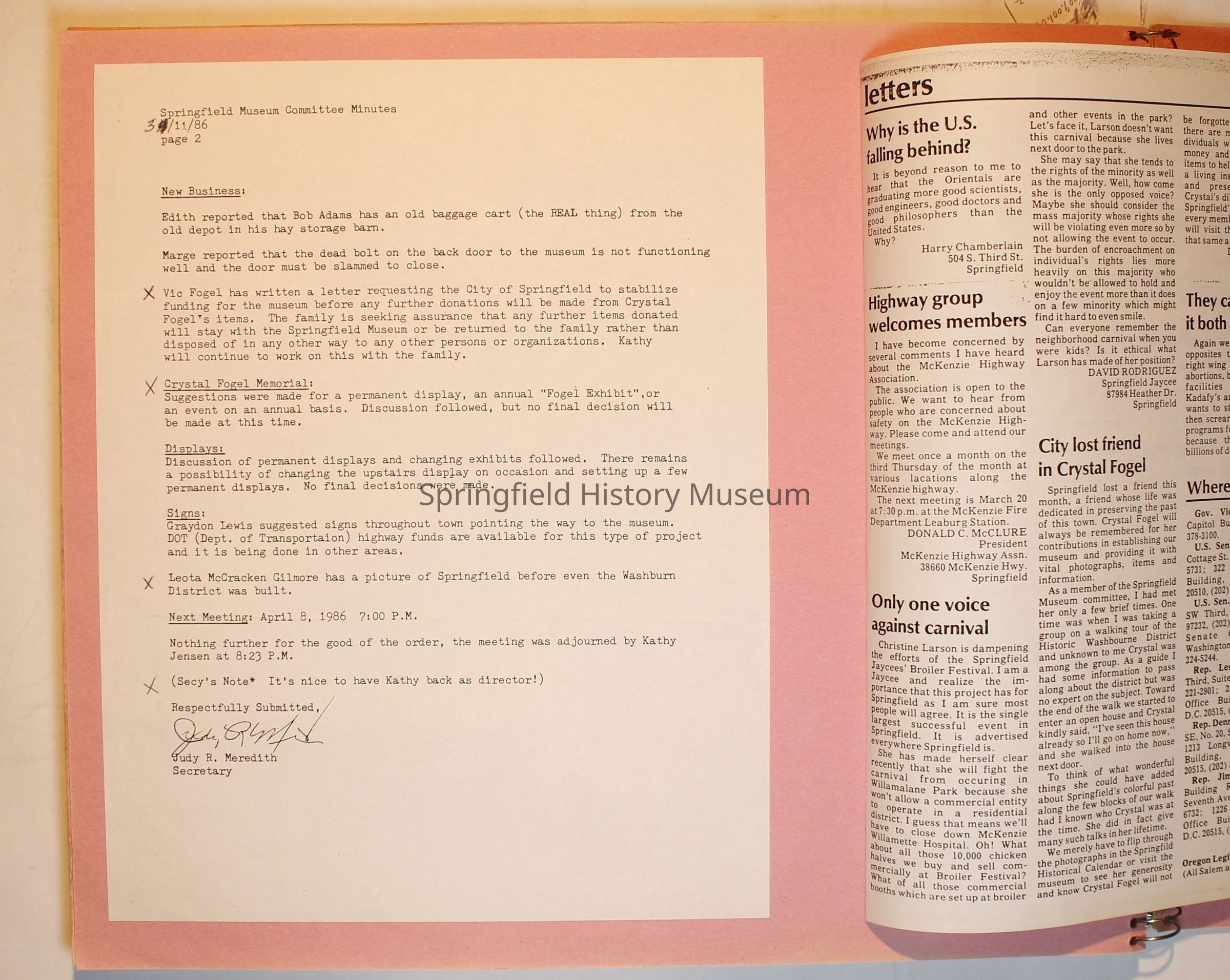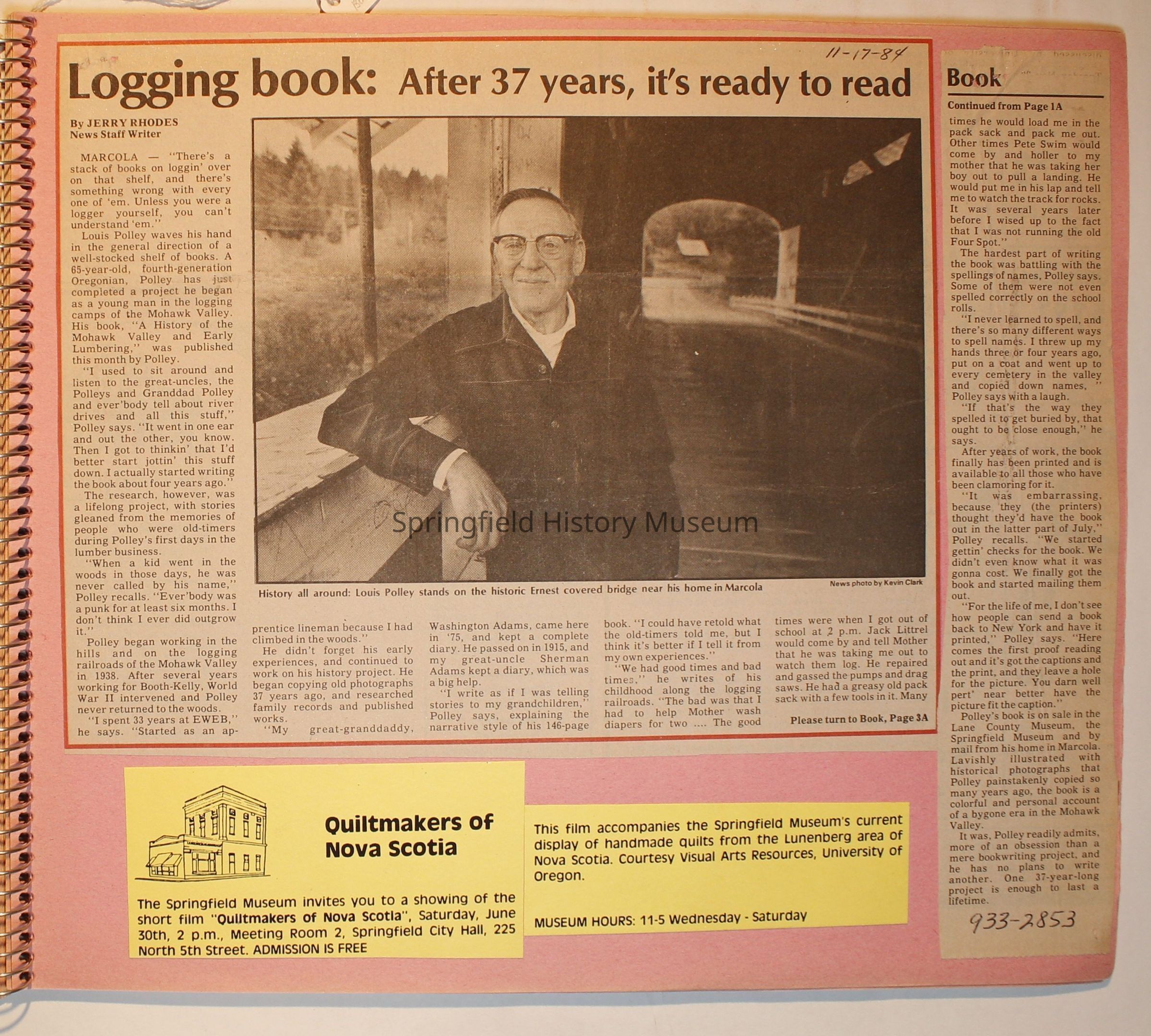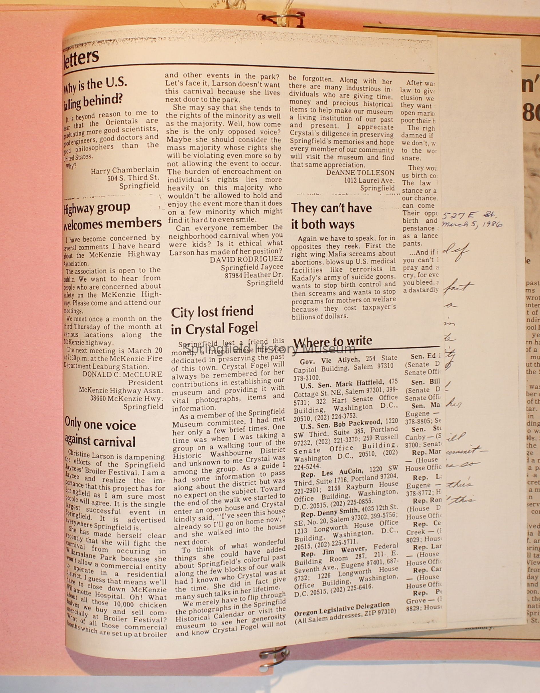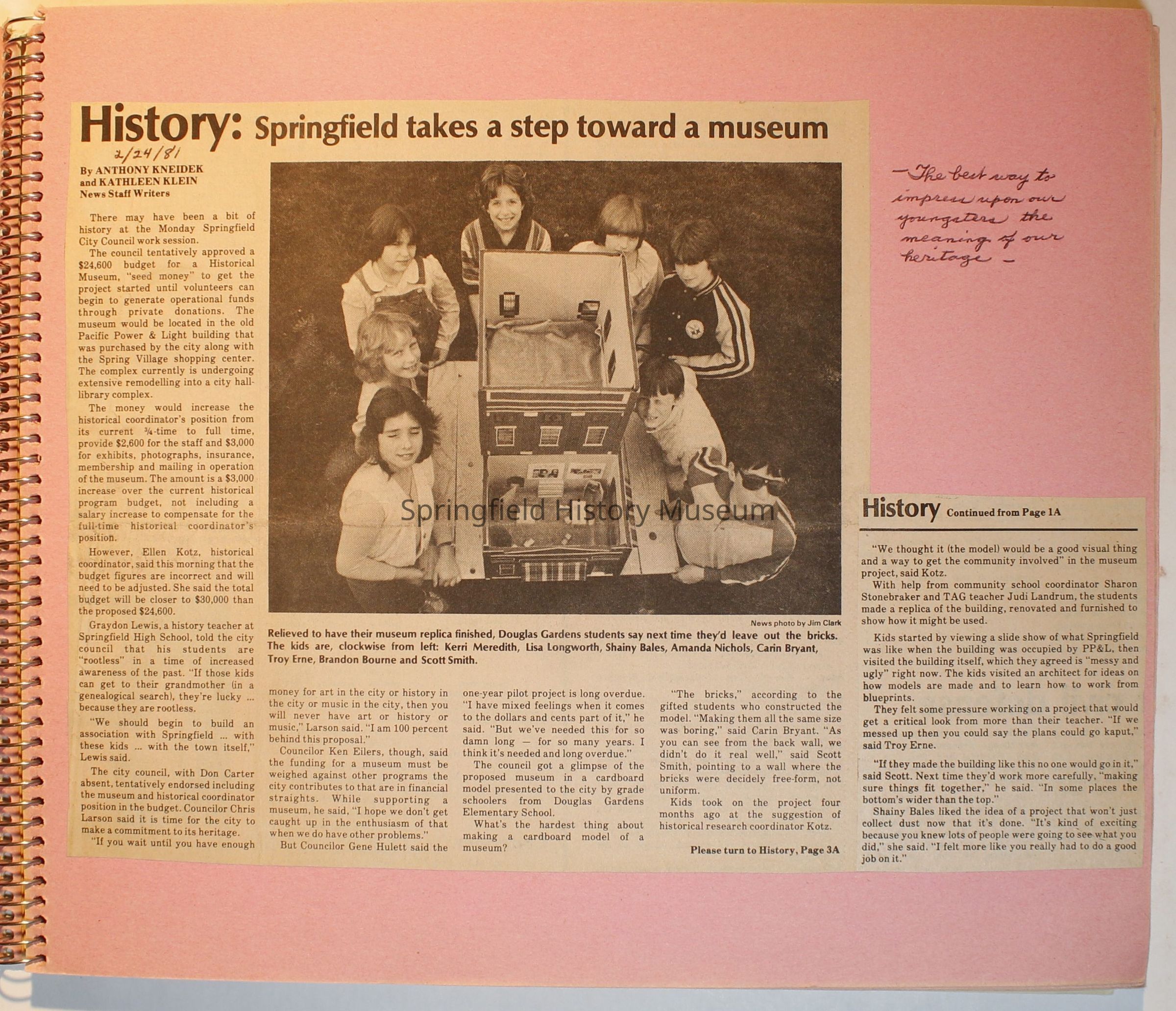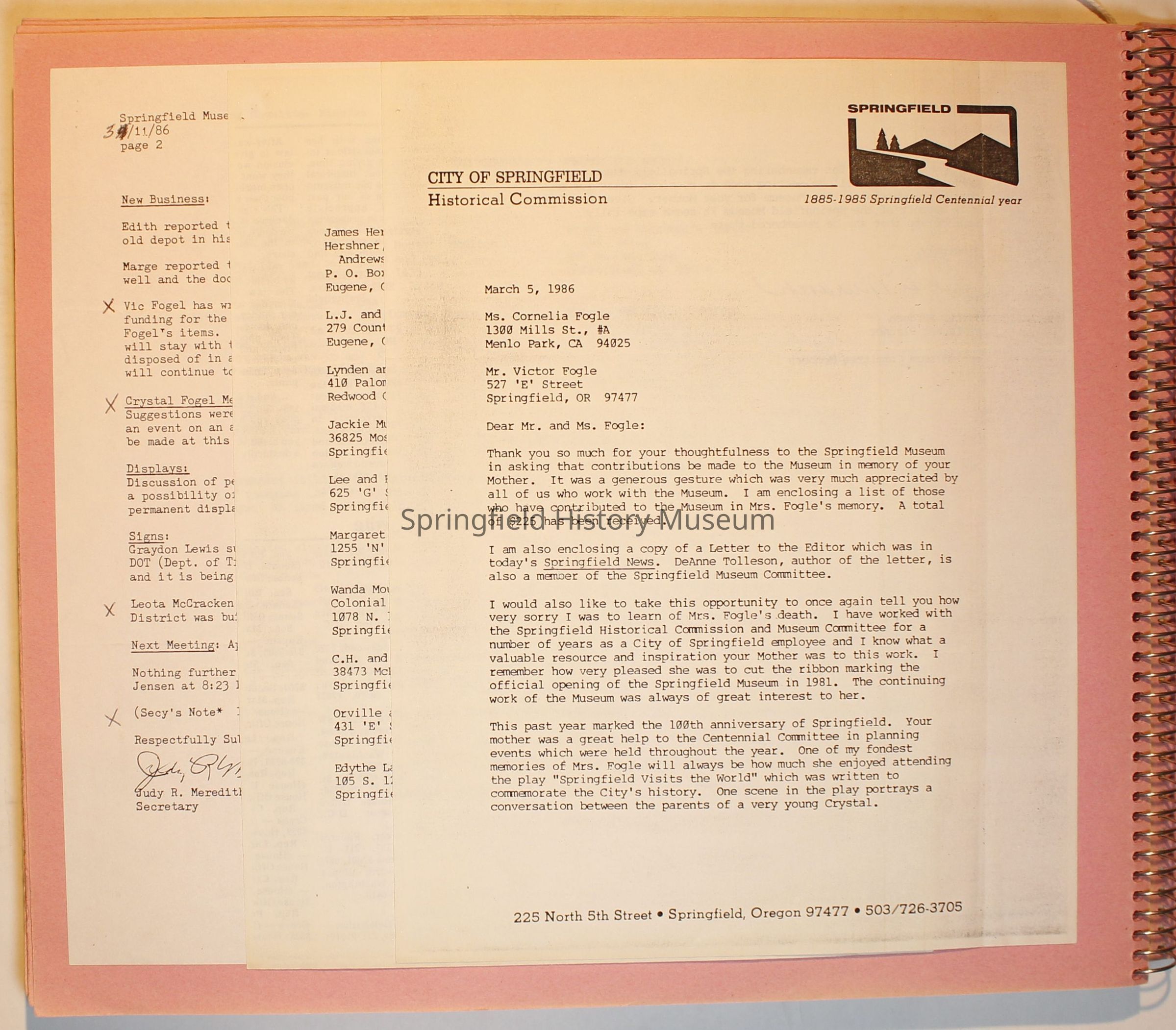 Scrapbook on the Springfield History Museum, 1981 through 1986Entry/Object ID