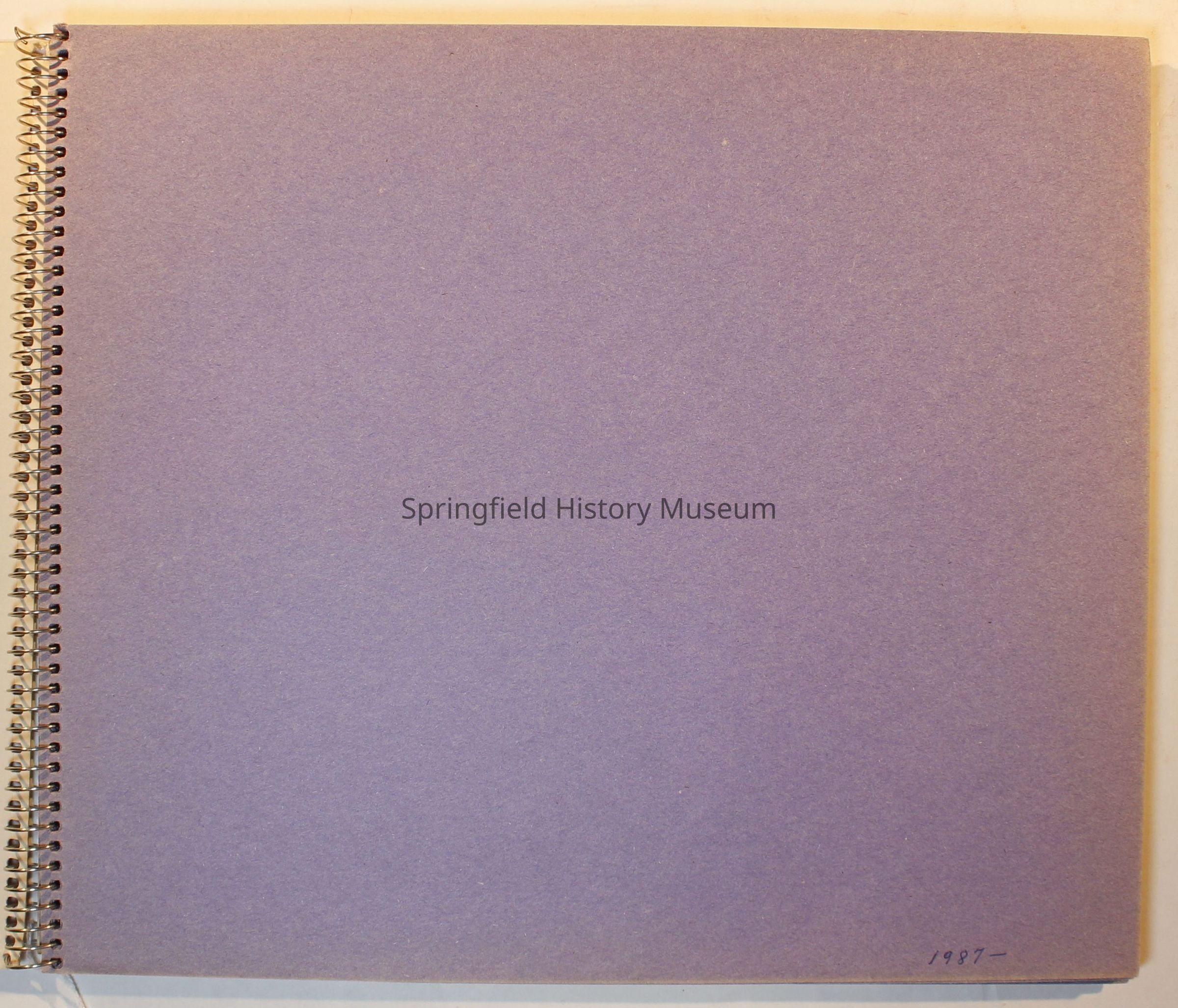 Scrapbook from 1987 through 1996 of Springfield Museum events. Most of the information is newspaper clippings with a sprinkling of event brochures and other papers. Wire spiral bound with blue, orange, and dark pink cover.Collection