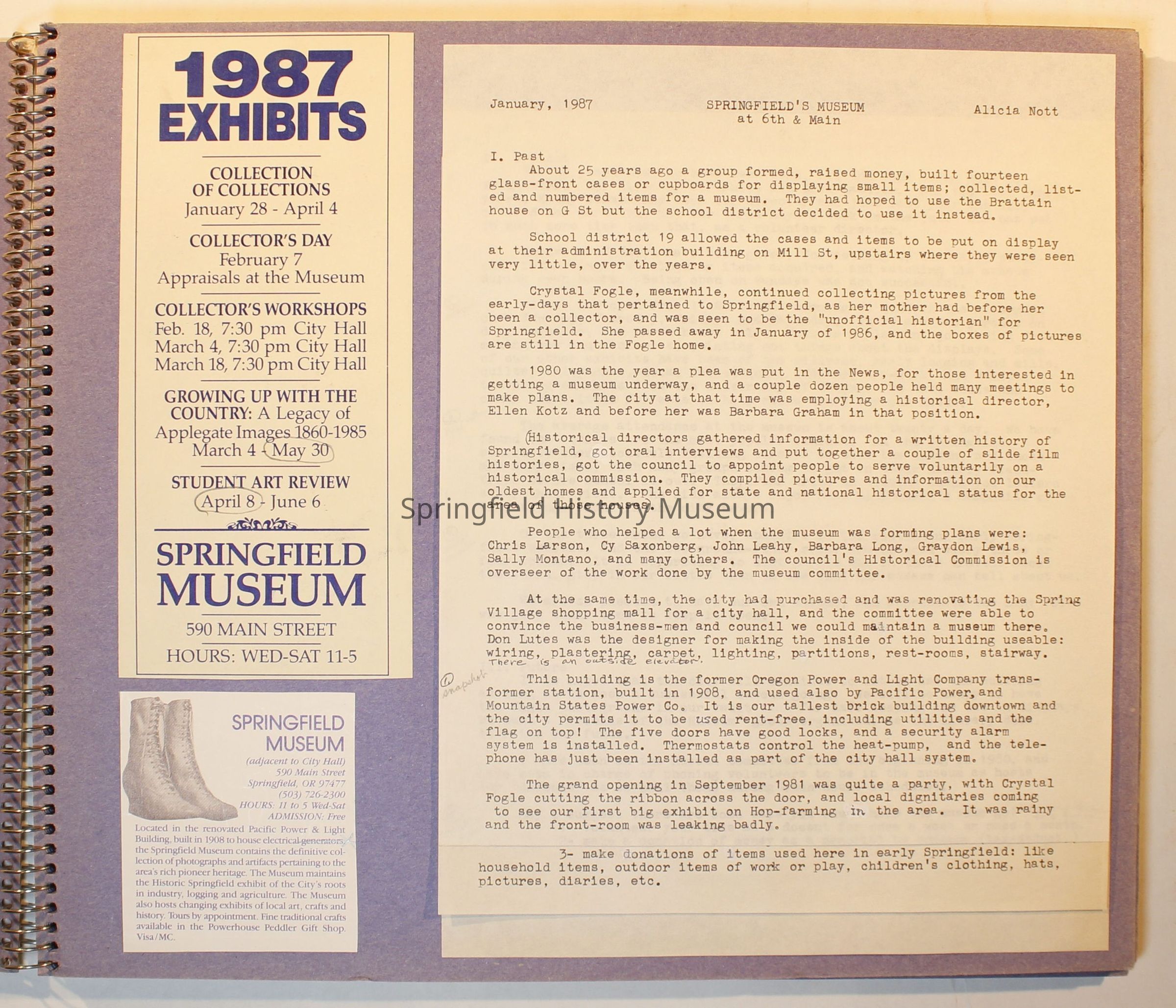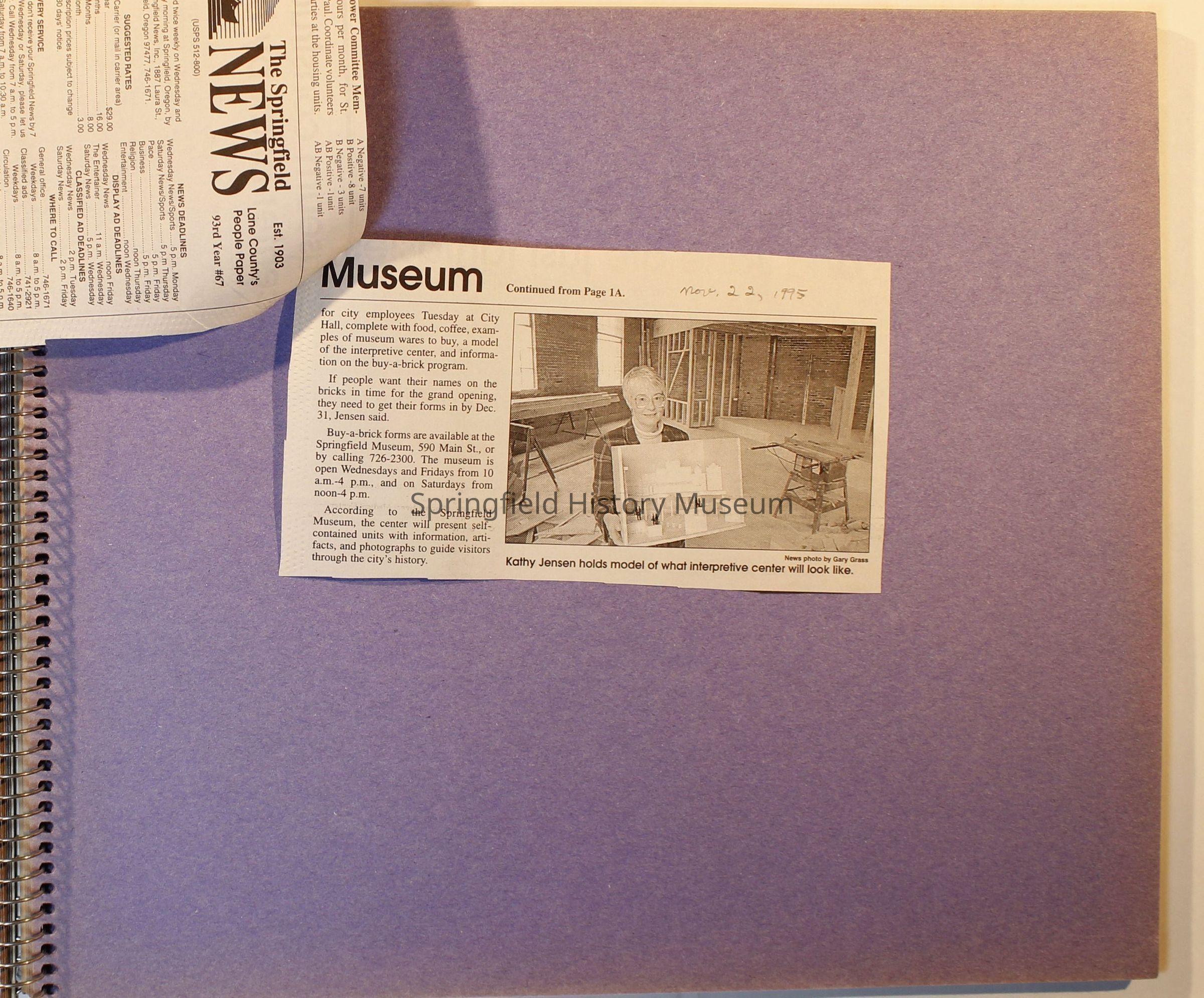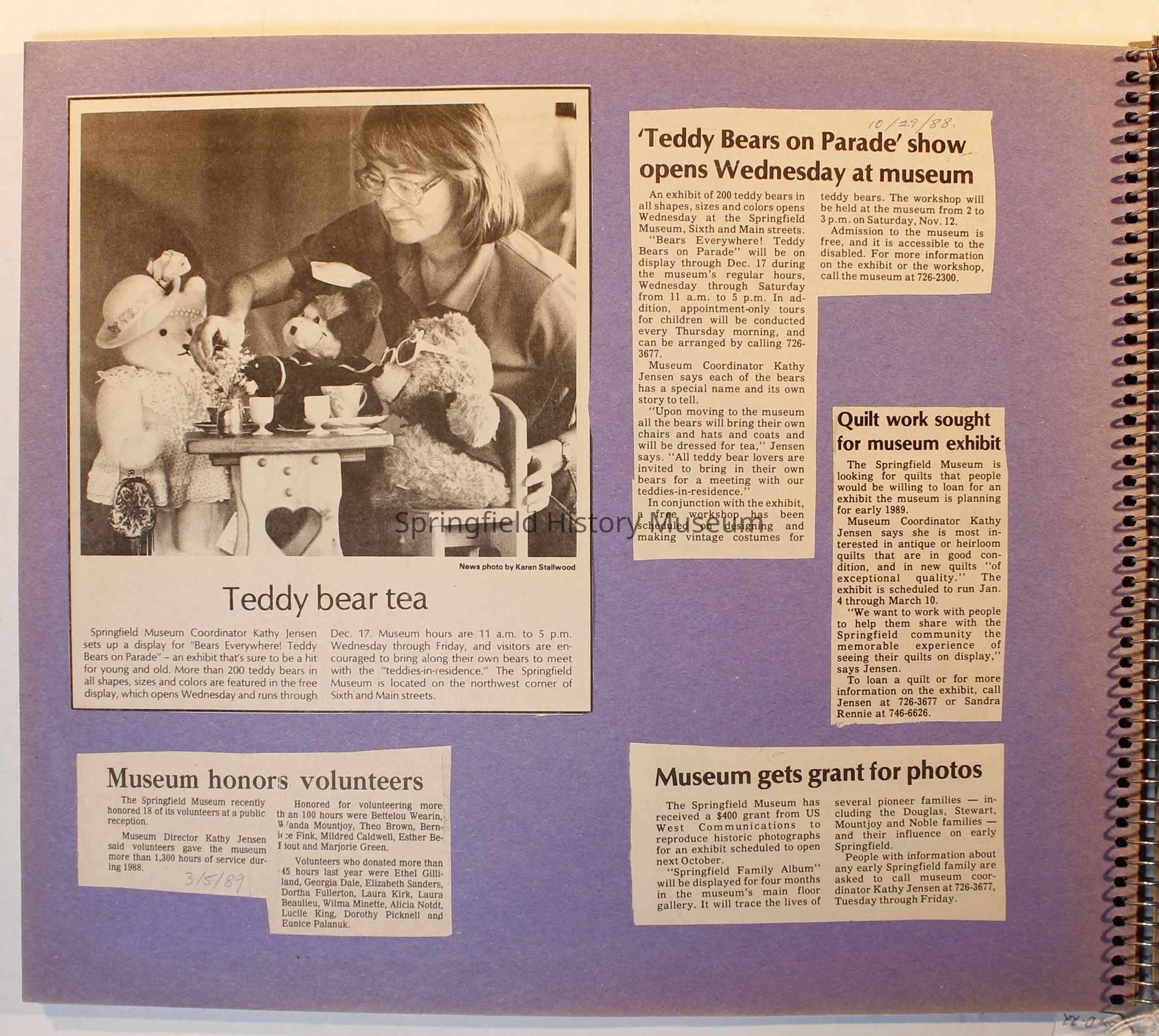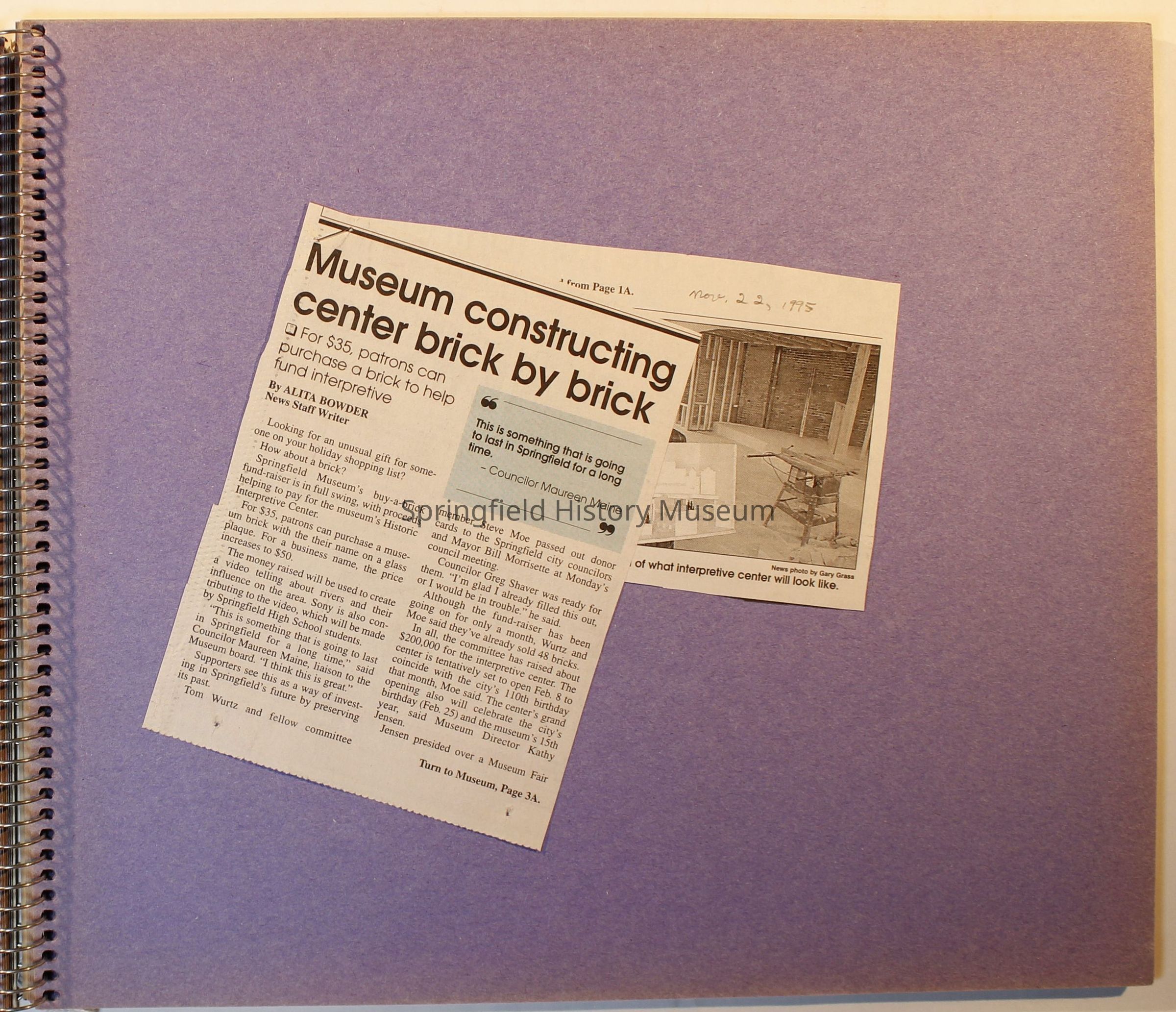 Scrapbook on the Springfield History Museum, 1987-1996Entry/Object ID