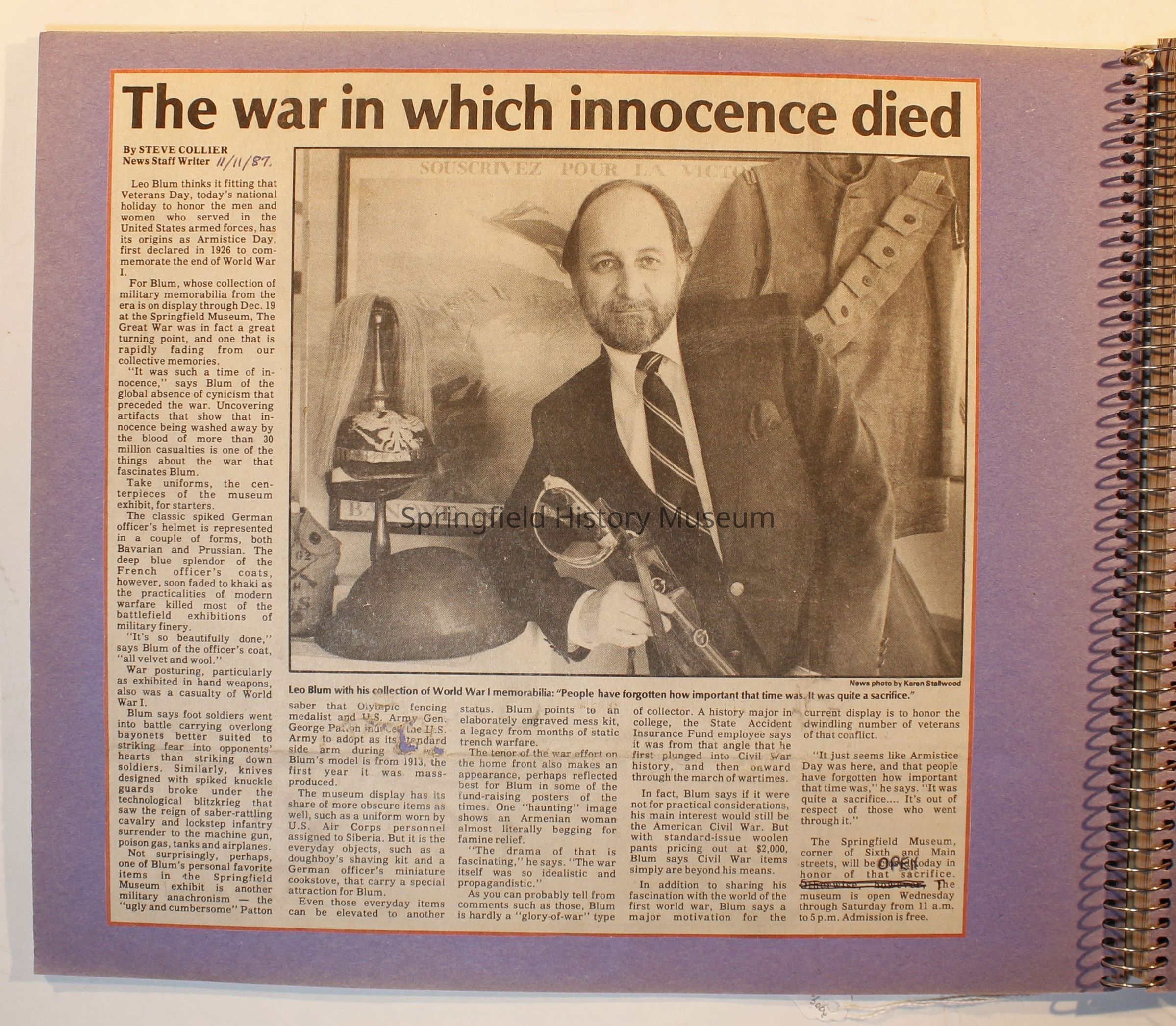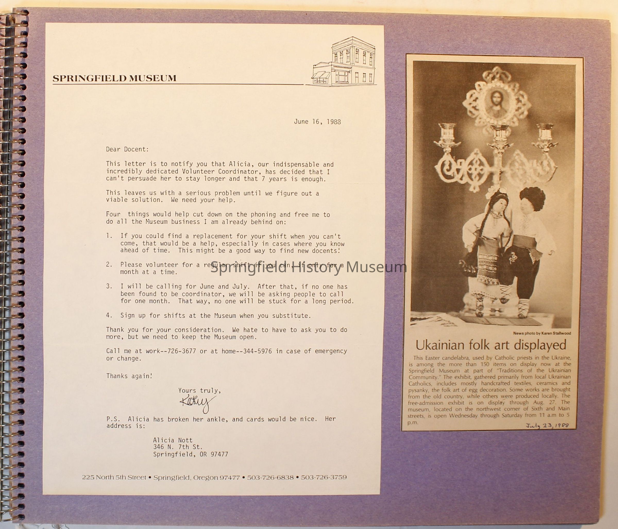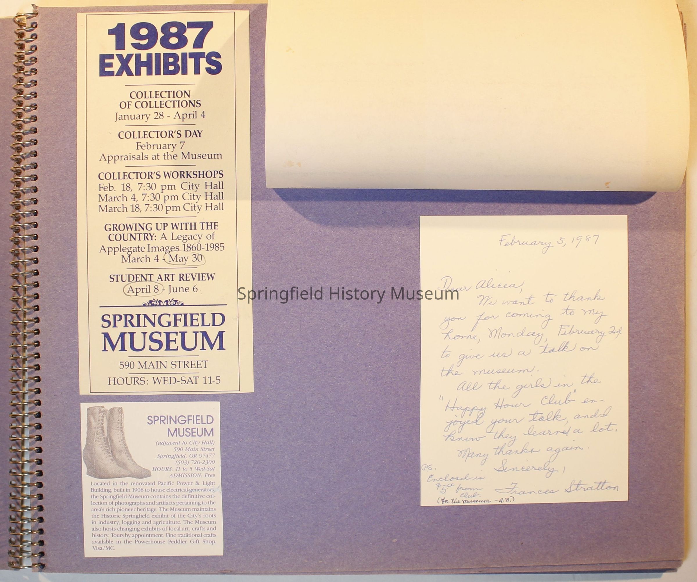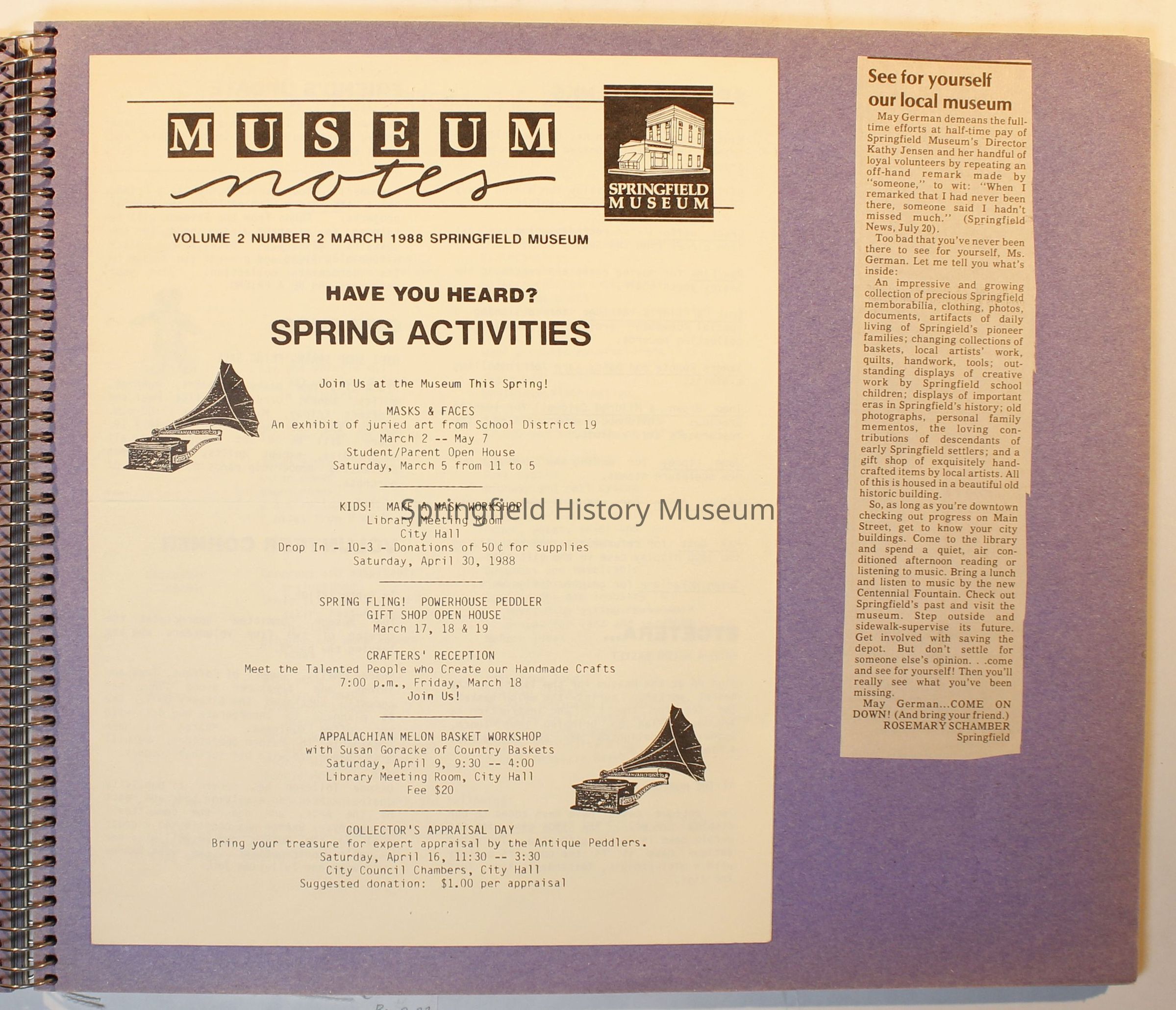Scrapbook on the Springfield History Museum, 1987-1996Entry/Object ID