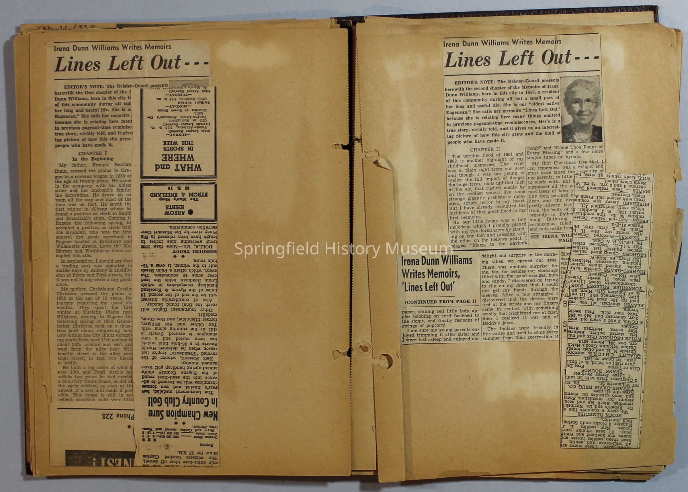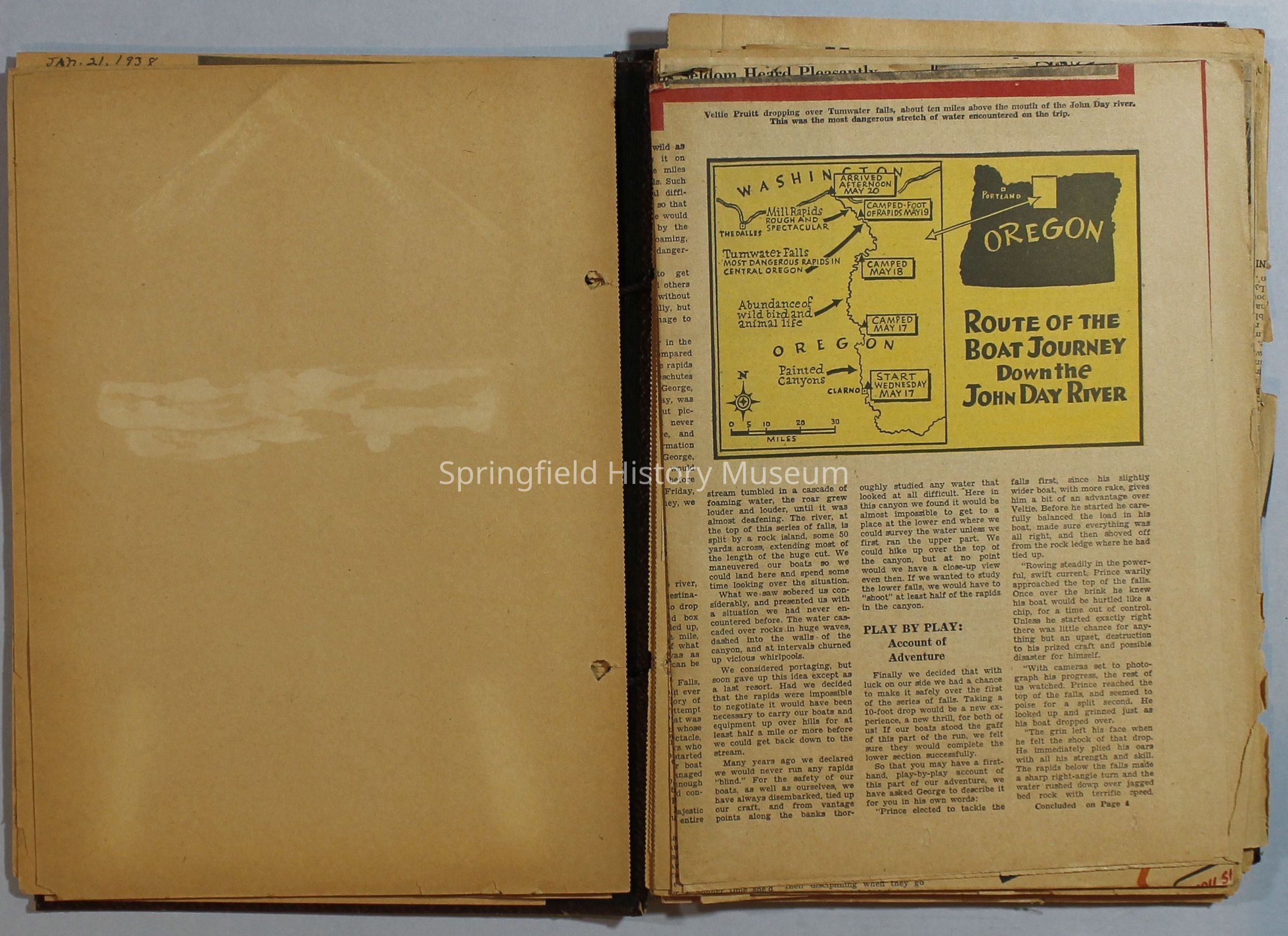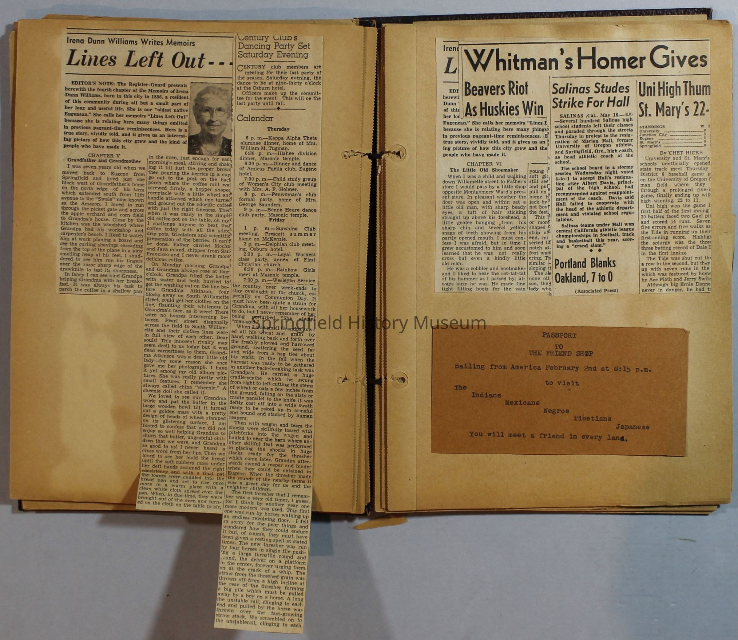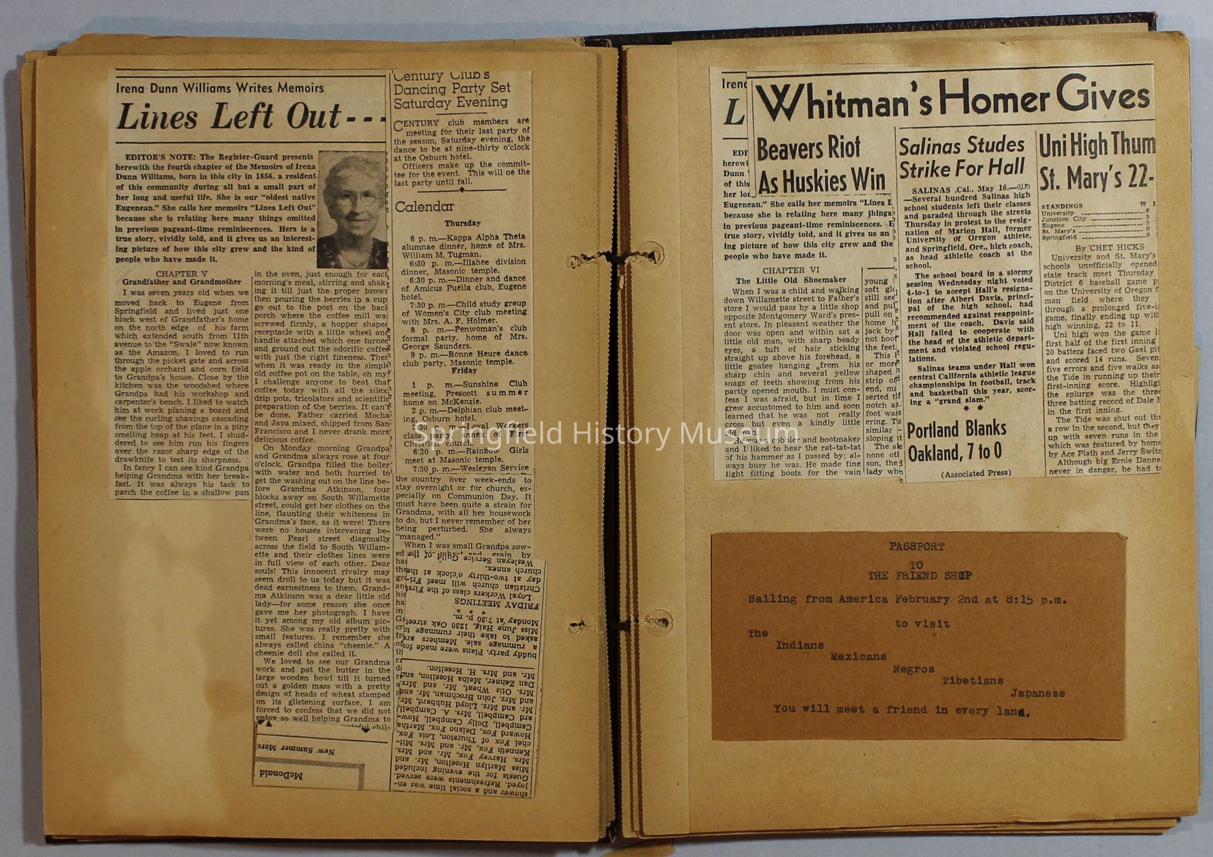 Scrapbook with newspaper clippings about Springfield area and Oregon, circa 1934-1939Entry/Object ID