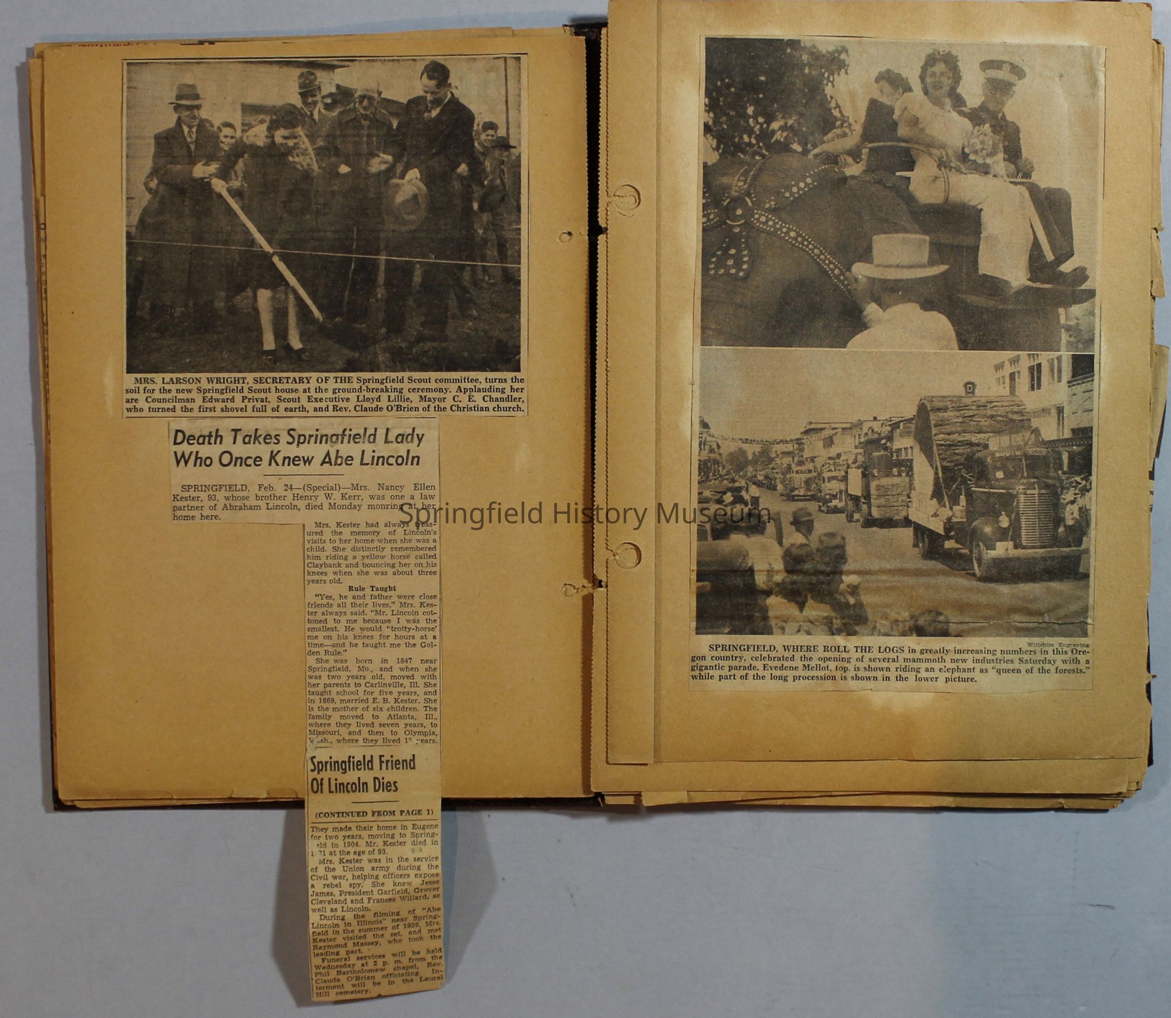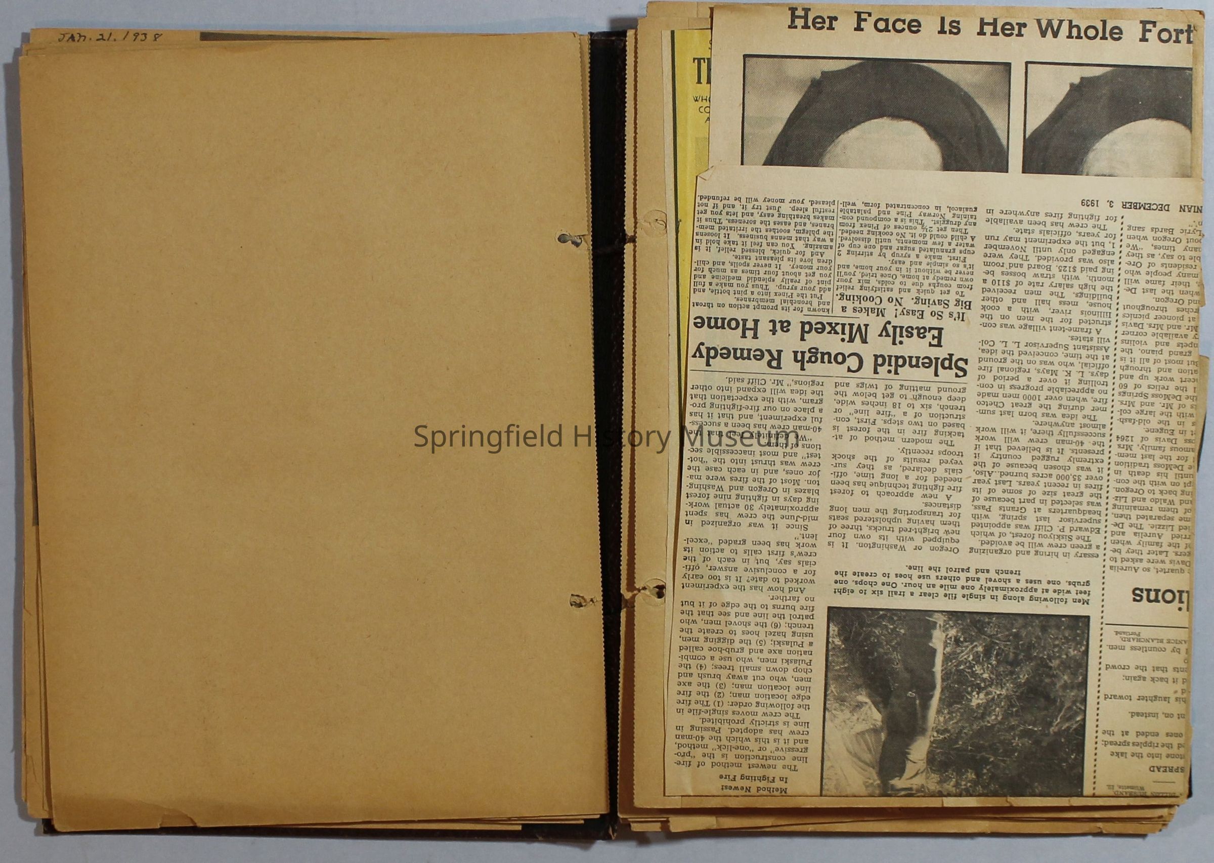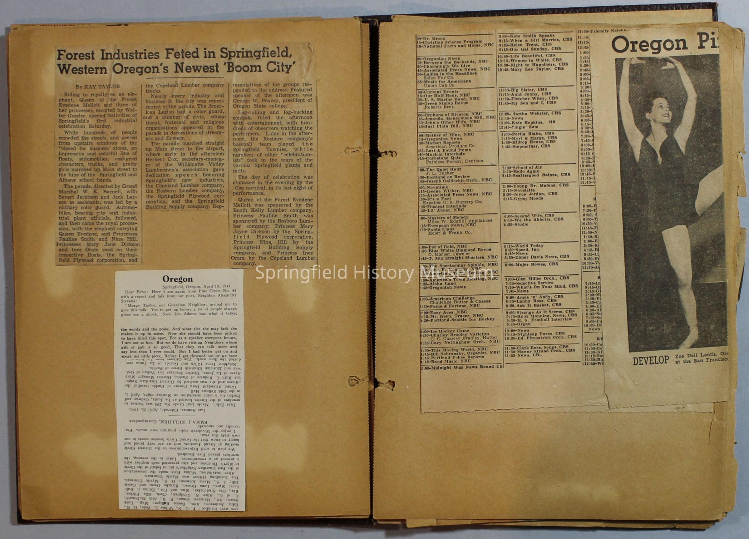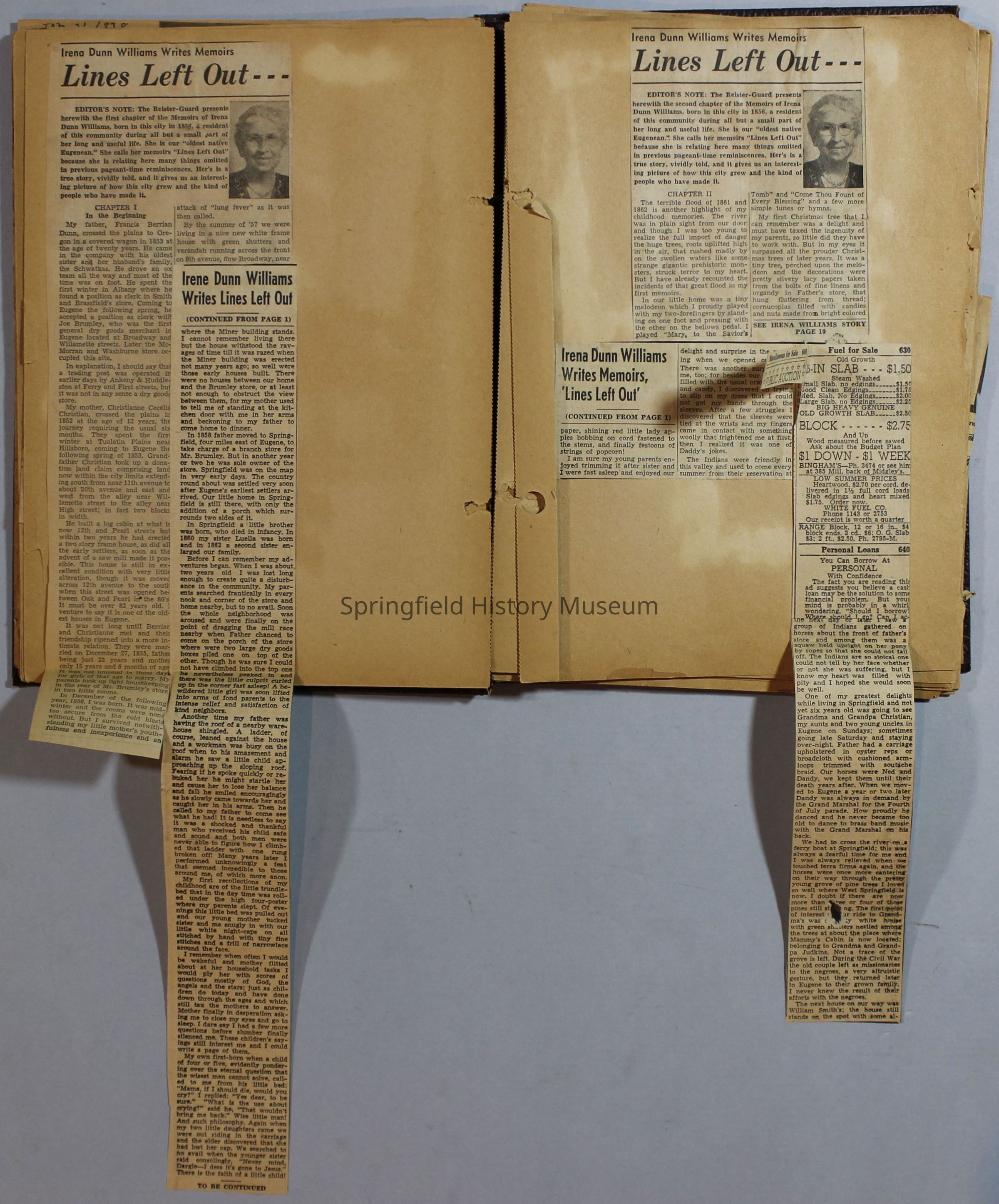 Scrapbook with newspaper clippings about Springfield area and Oregon, circa 1934-1939Entry/Object ID