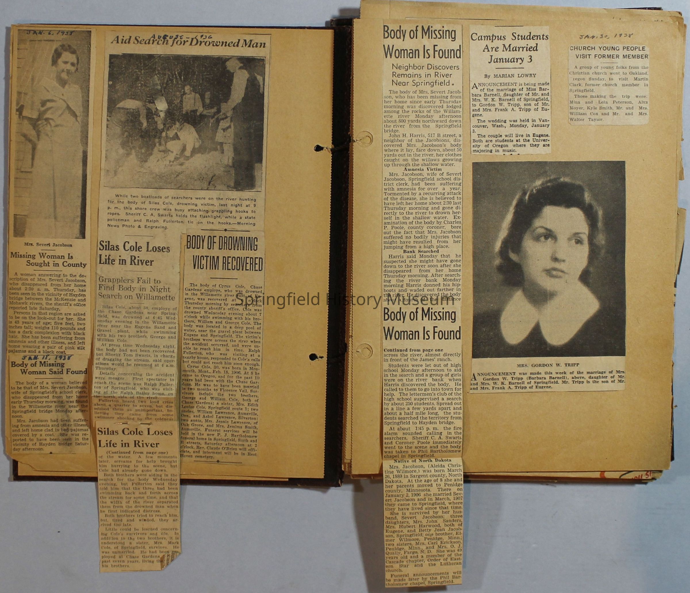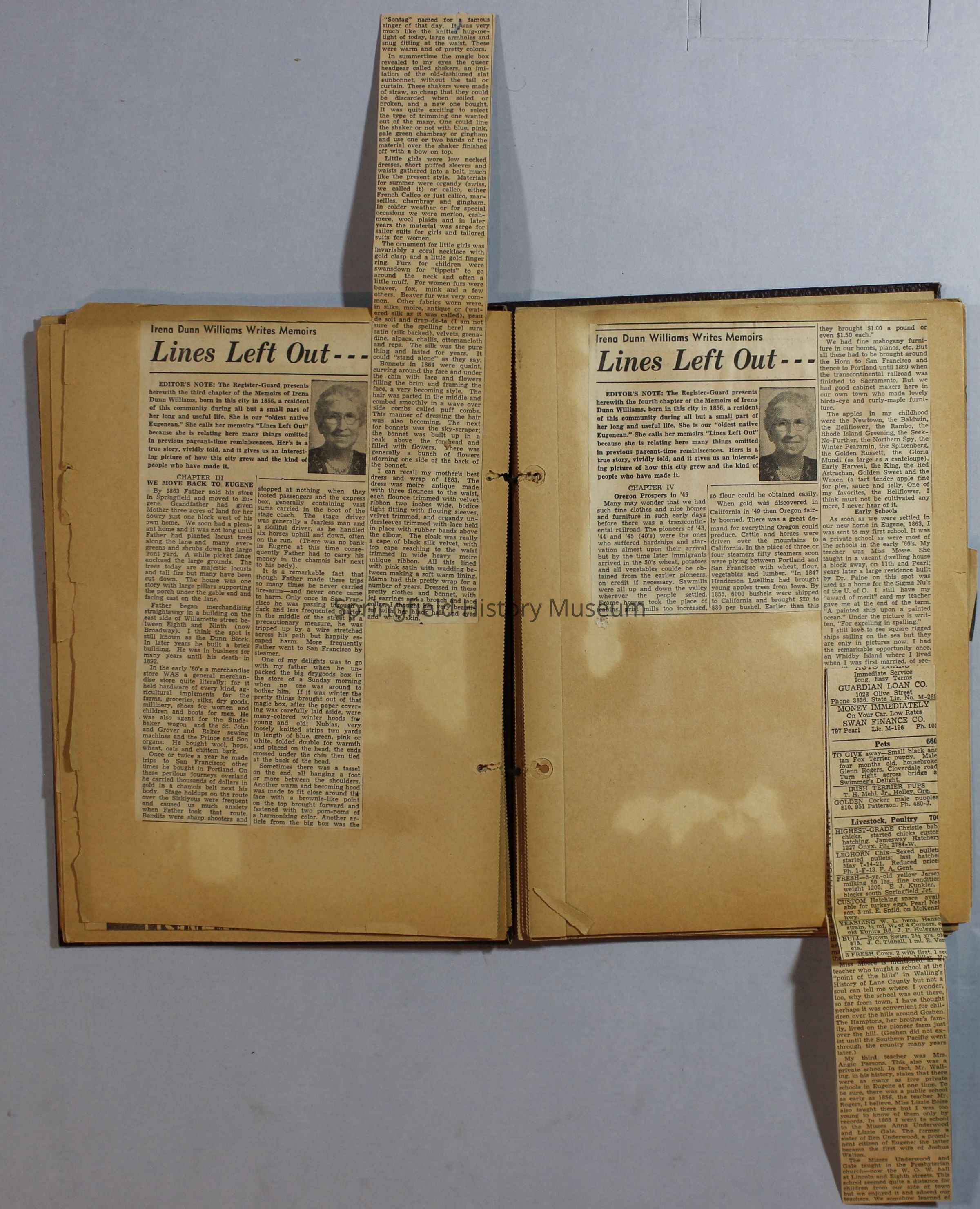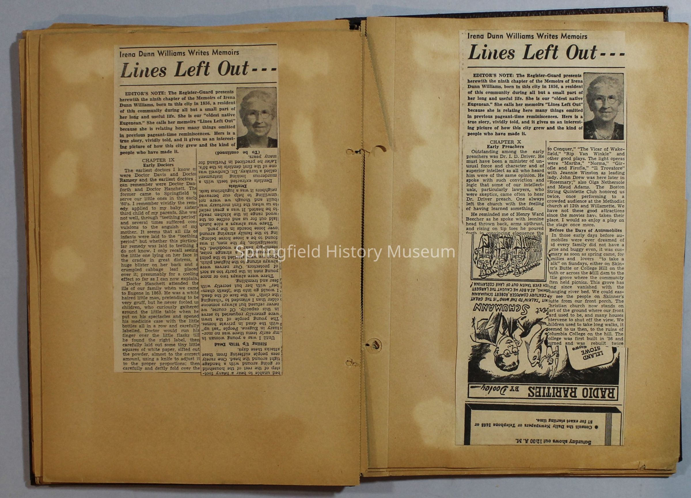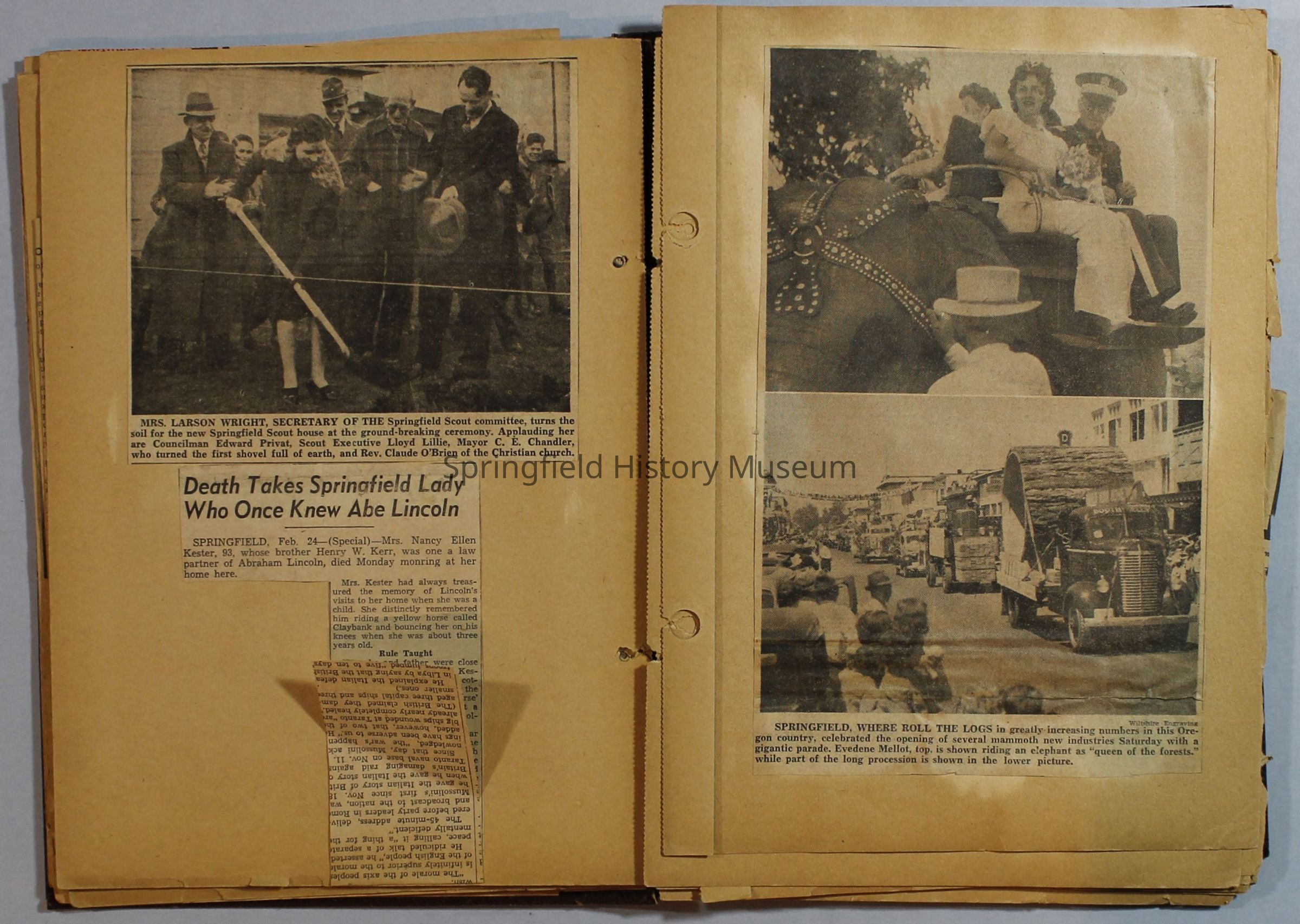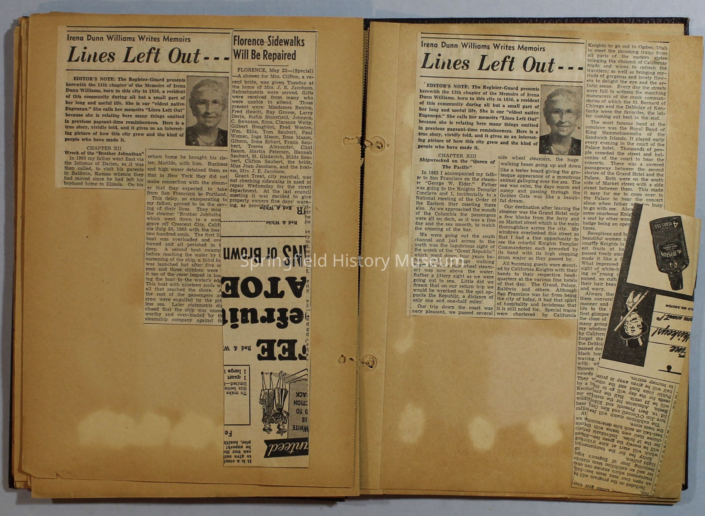 Scrapbook with newspaper clippings about Springfield area and Oregon, circa 1934-1939Entry/Object ID