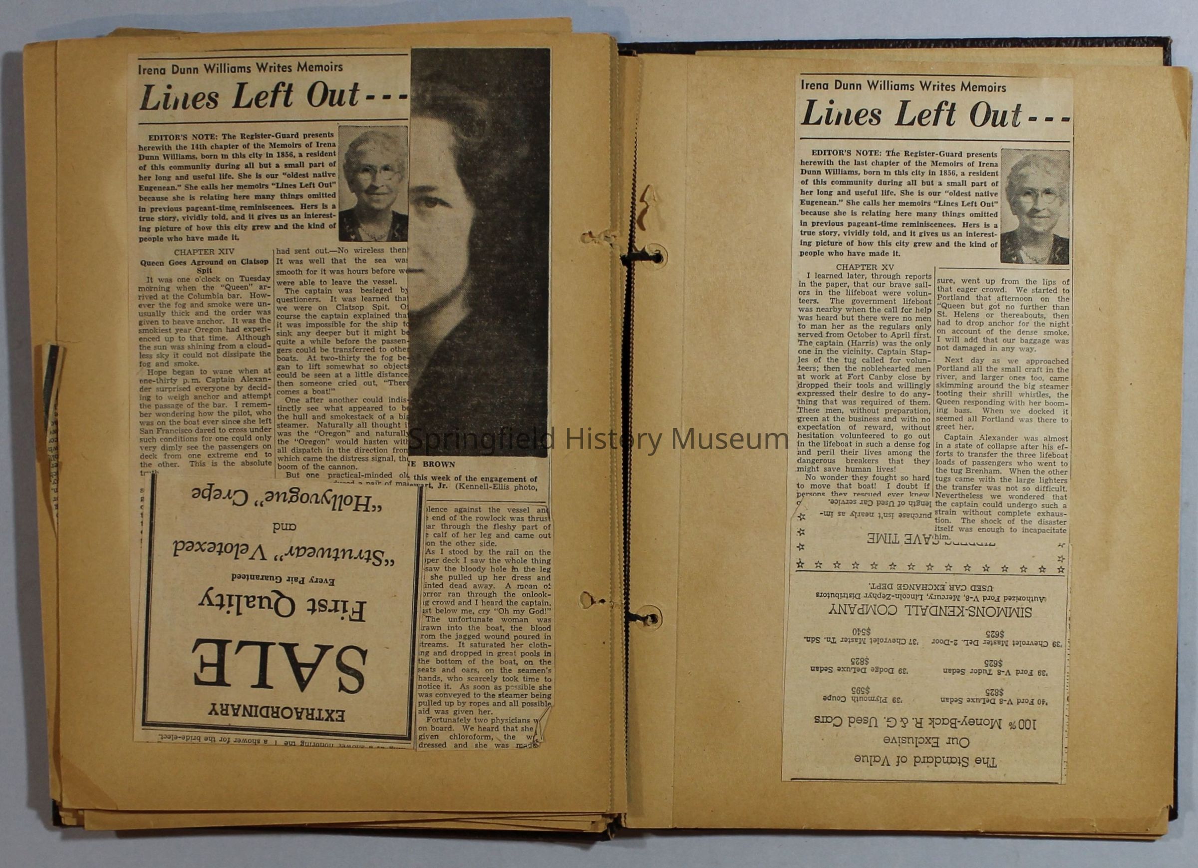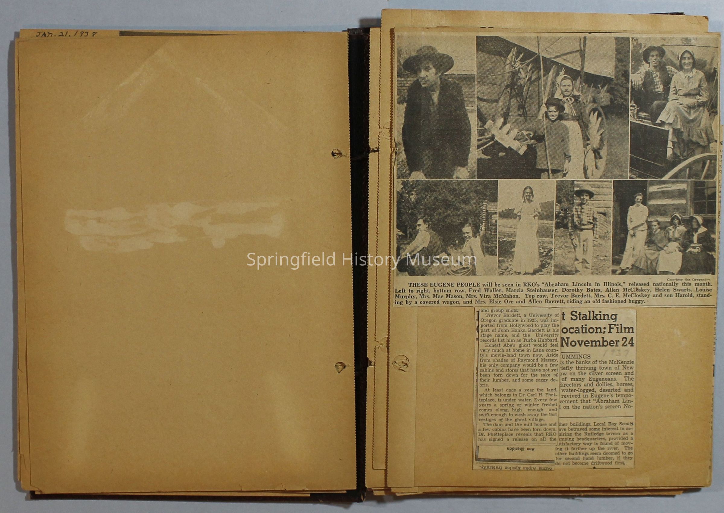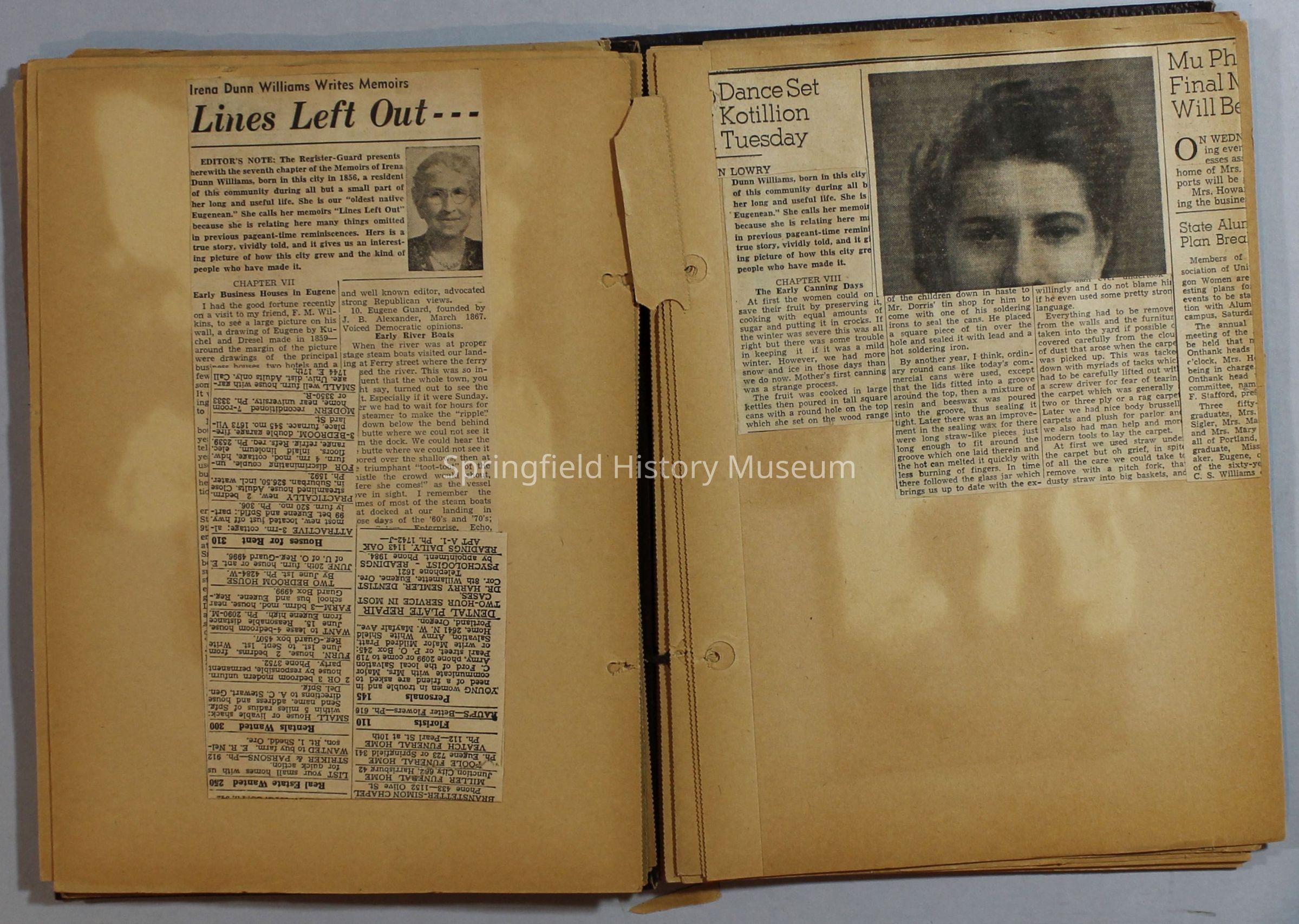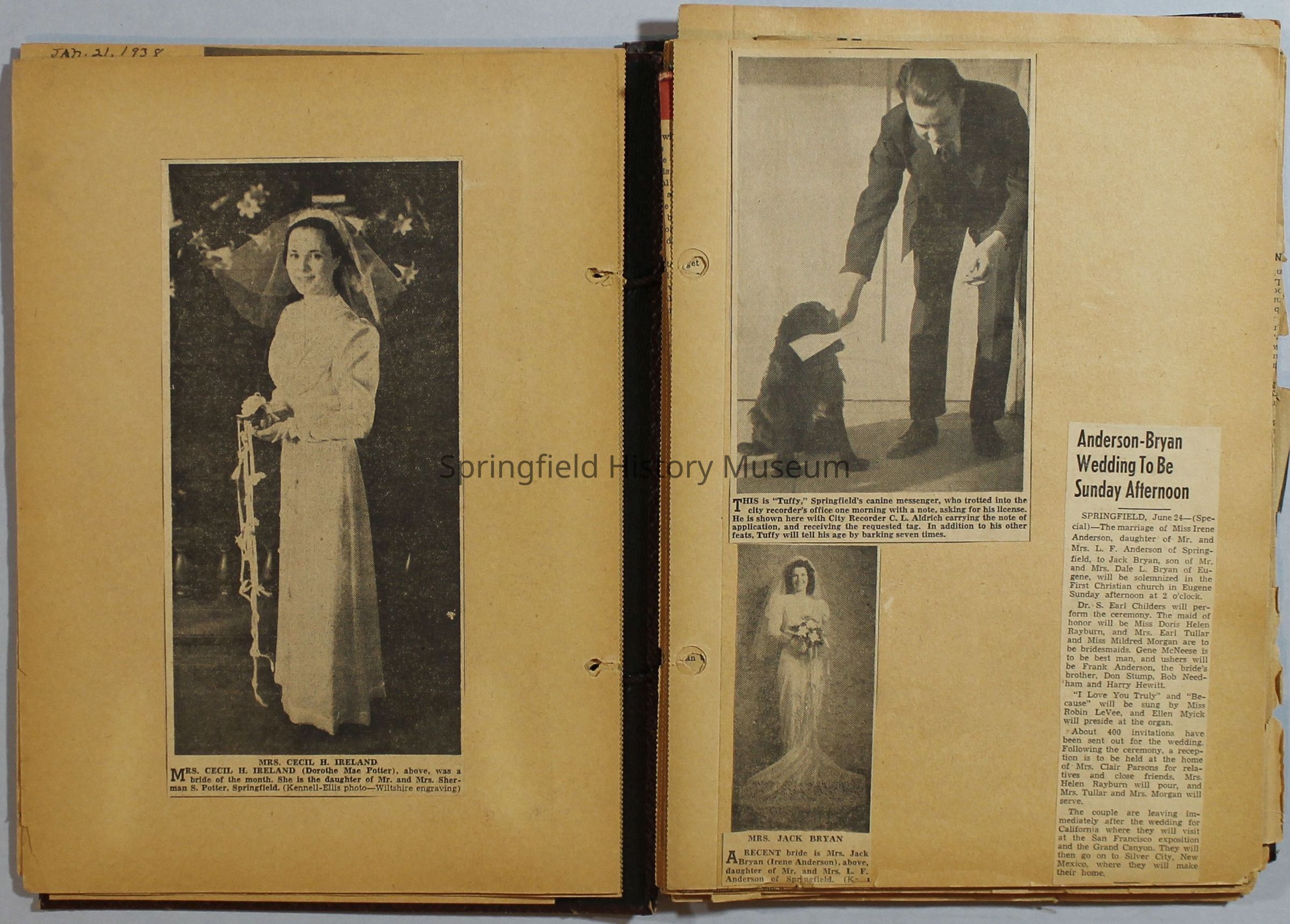 Scrapbook with newspaper clippings about Springfield area and Oregon, circa 1934-1939Entry/Object ID