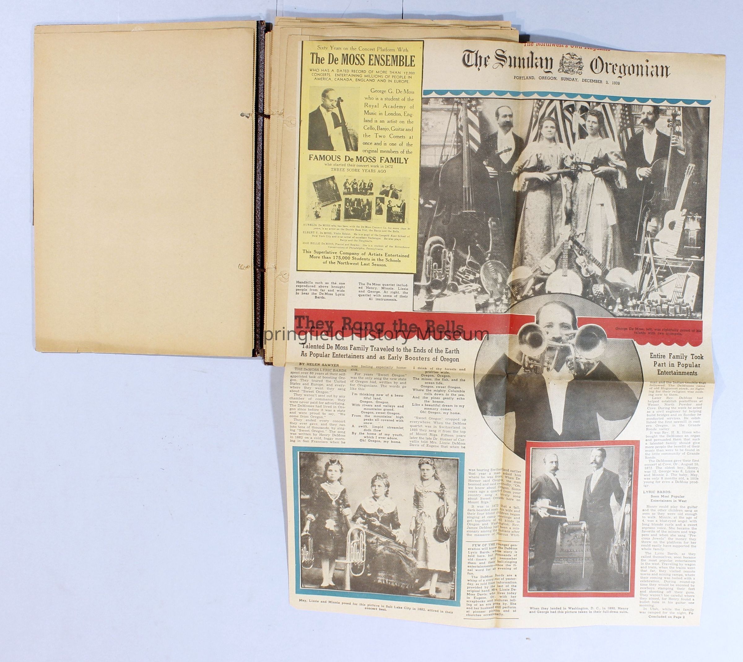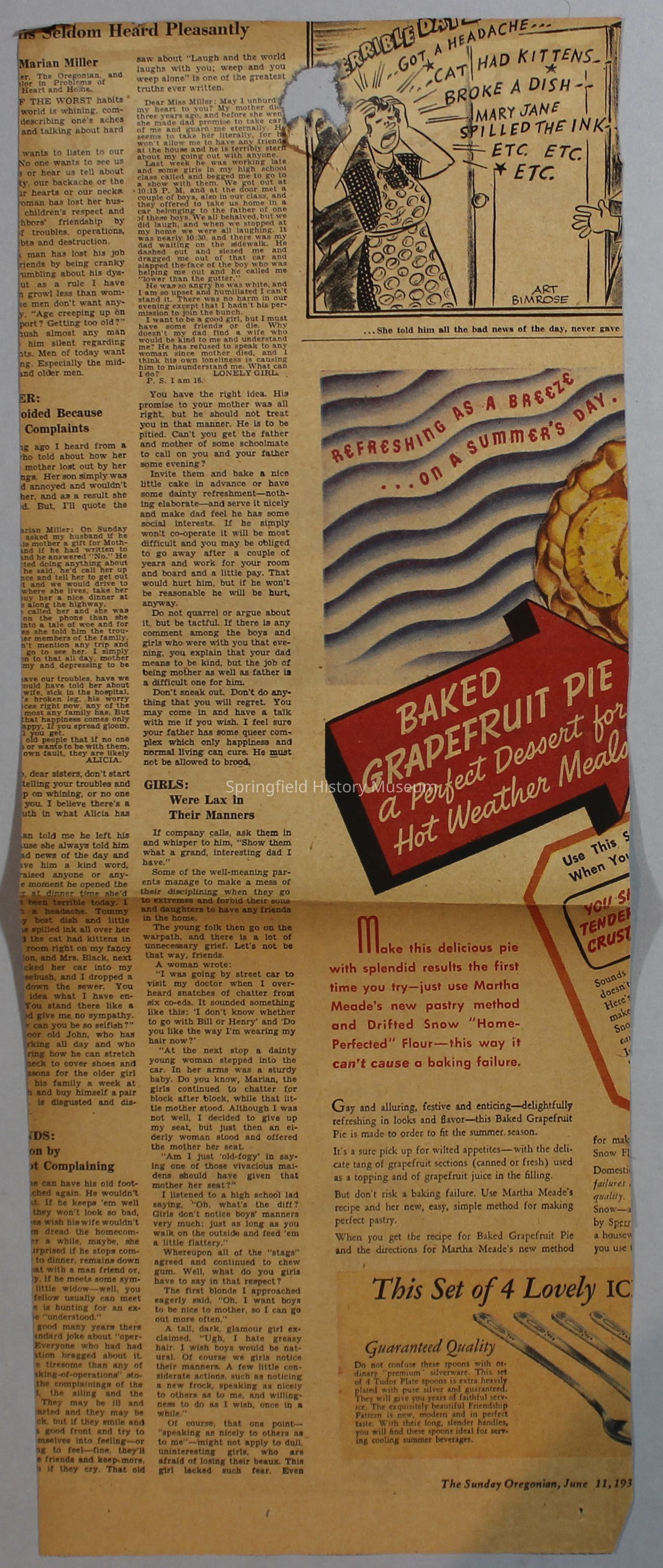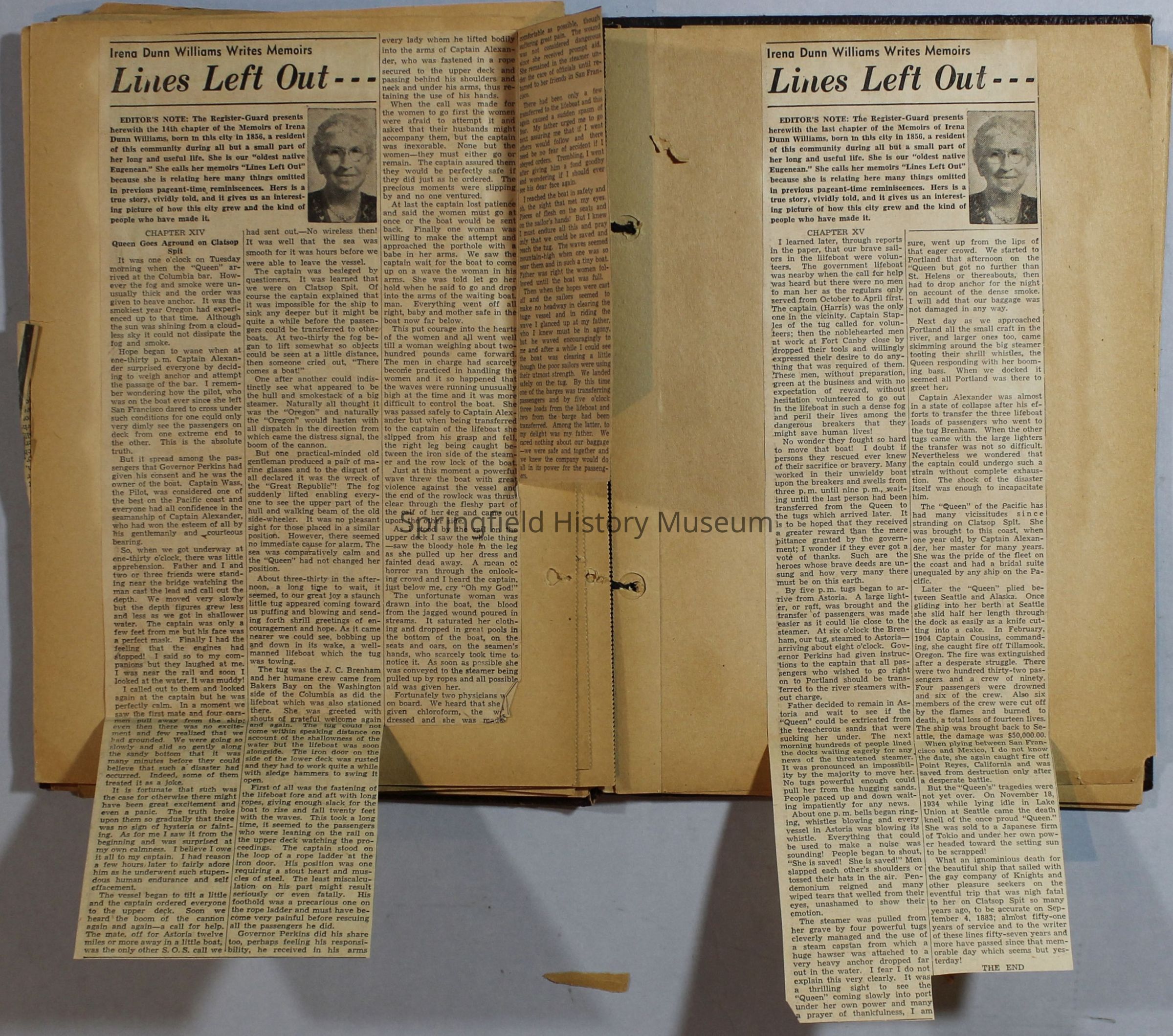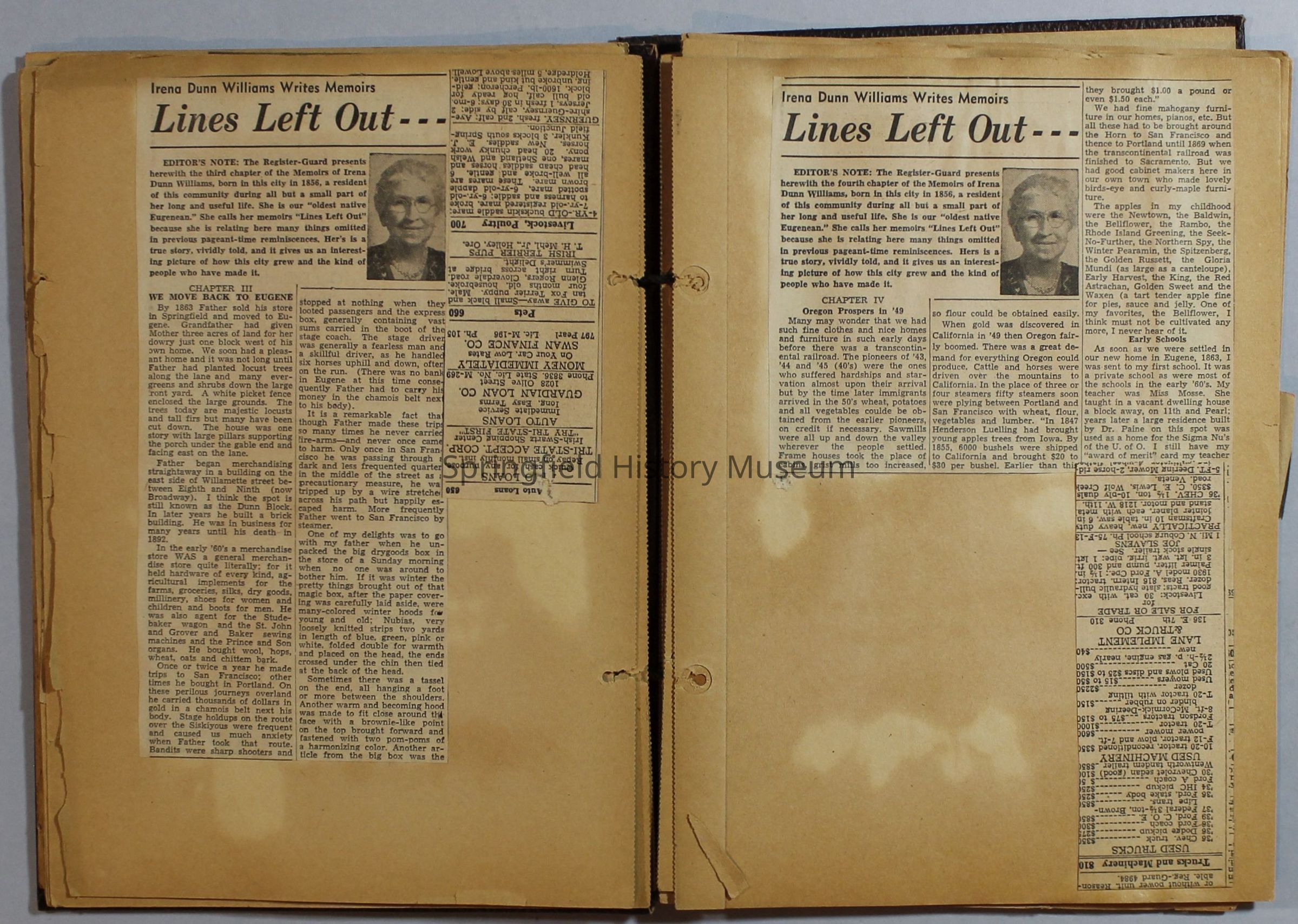 Scrapbook with newspaper clippings about Springfield area and Oregon, circa 1934-1939Entry/Object ID