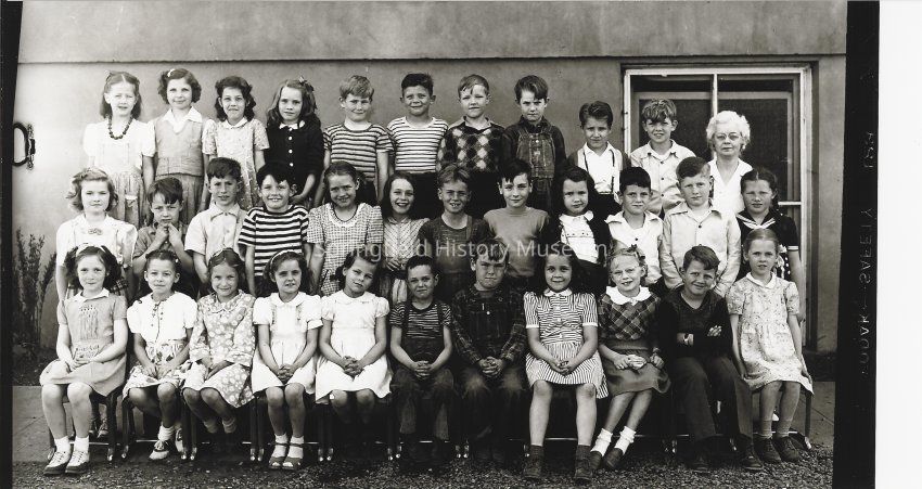 Unknown 2nd grade class photo with teacher ? School 1940s