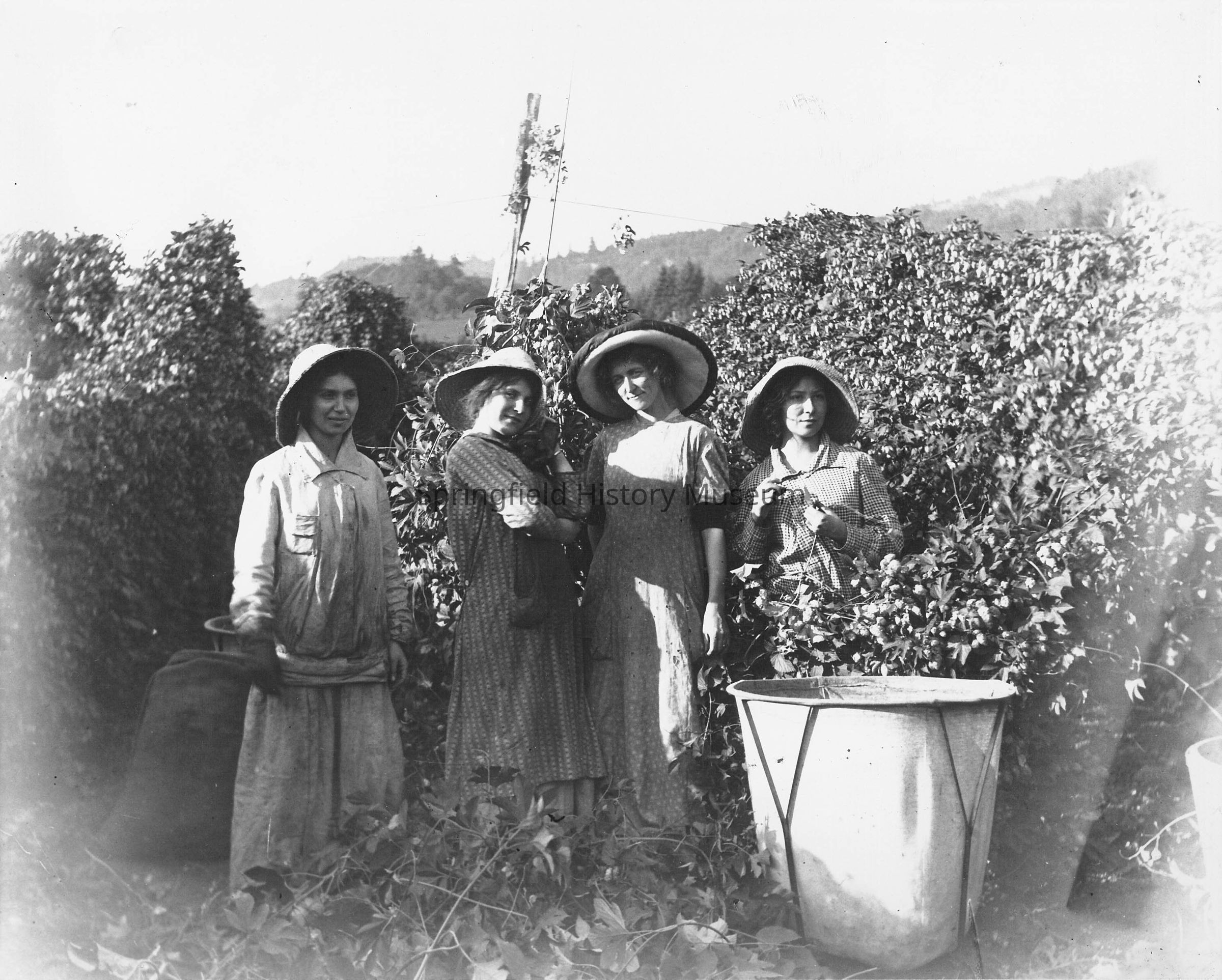 Sidwell sisters picking hops, "Dustin Bunch" at Seavey's Hop Yard, 1914. Smith Mountjoy photo.