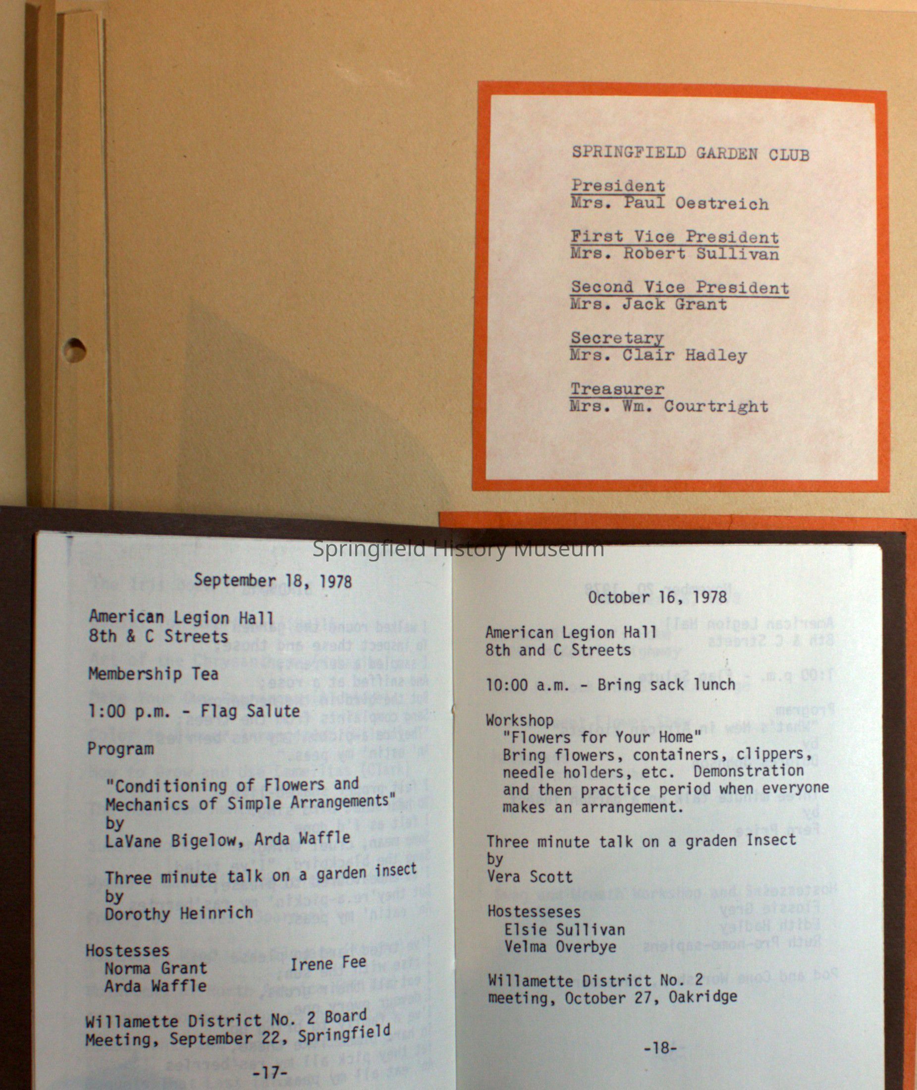 Springfield Garden Club Scrapbook, 1978-1979: contains club history, overview of activities, club rules etc.Collection
