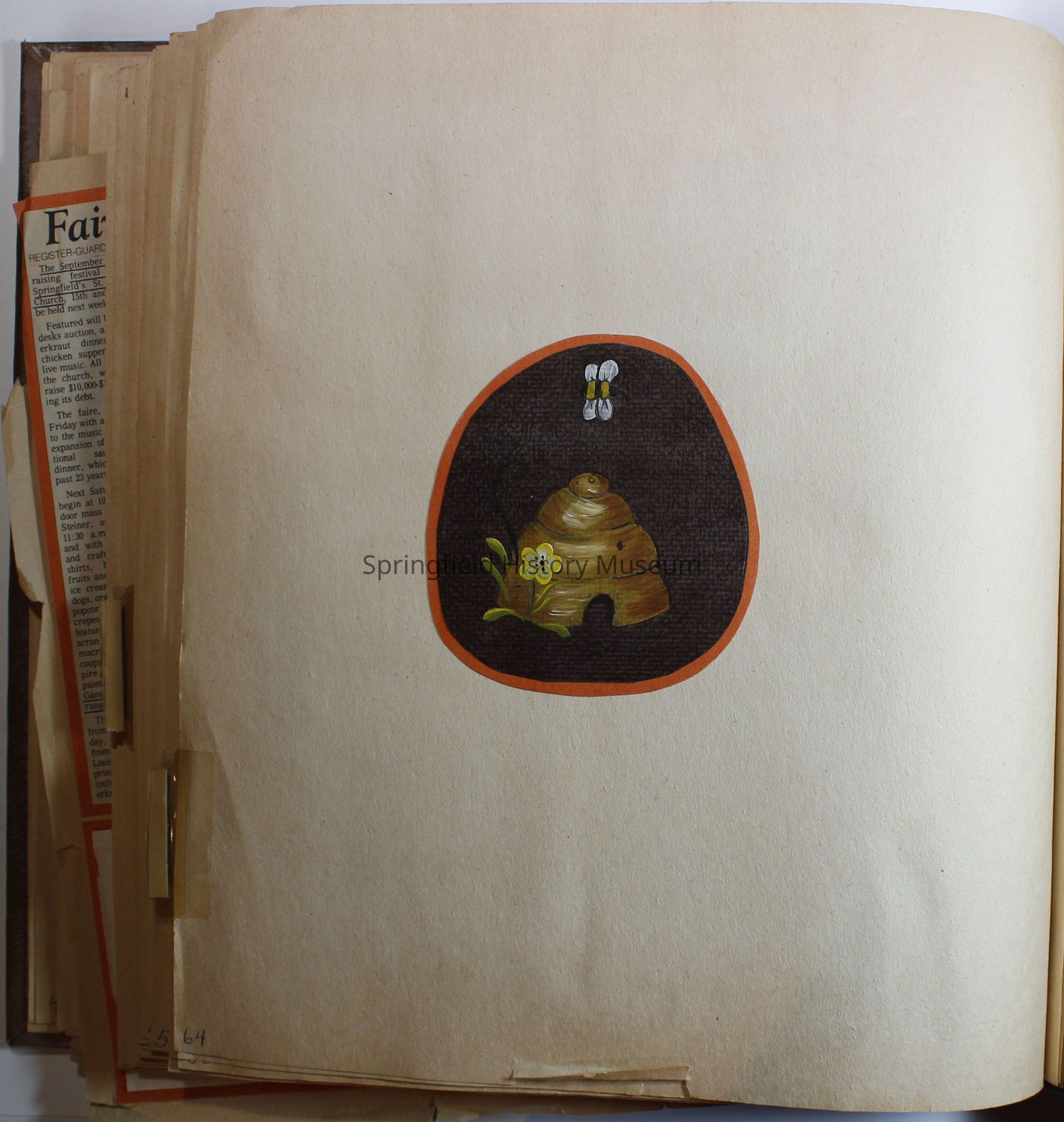 Brown scrapbook with title "Springfield Garden Club, 1978-1979" and illustration of a beehive and flowers.Relationships