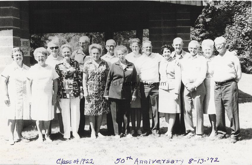 Reunion, August 13, 1972, 50th Anniversary of Springfield High, class of 1922. Also a newspaper copy of above reunion picture, stored in envelope with photo.