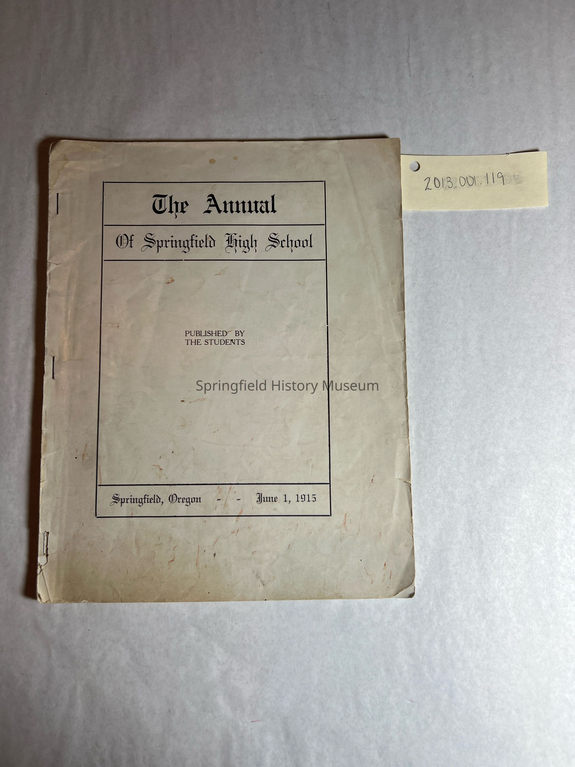 Yearbook Annual, Springfield High School, 1915Entry/Object ID
