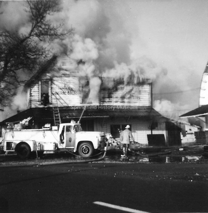 Fire at Thurston General Store: November 23, 1965. Fire truck.