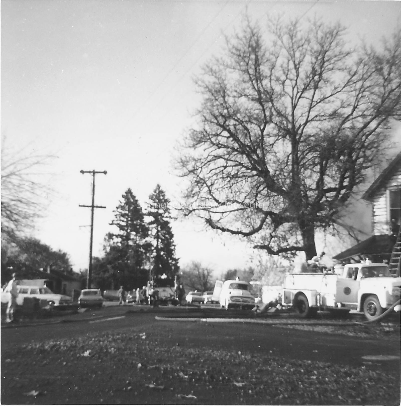 Fire at Thurston General Store: November 23, 1965. Emergency vehicles.