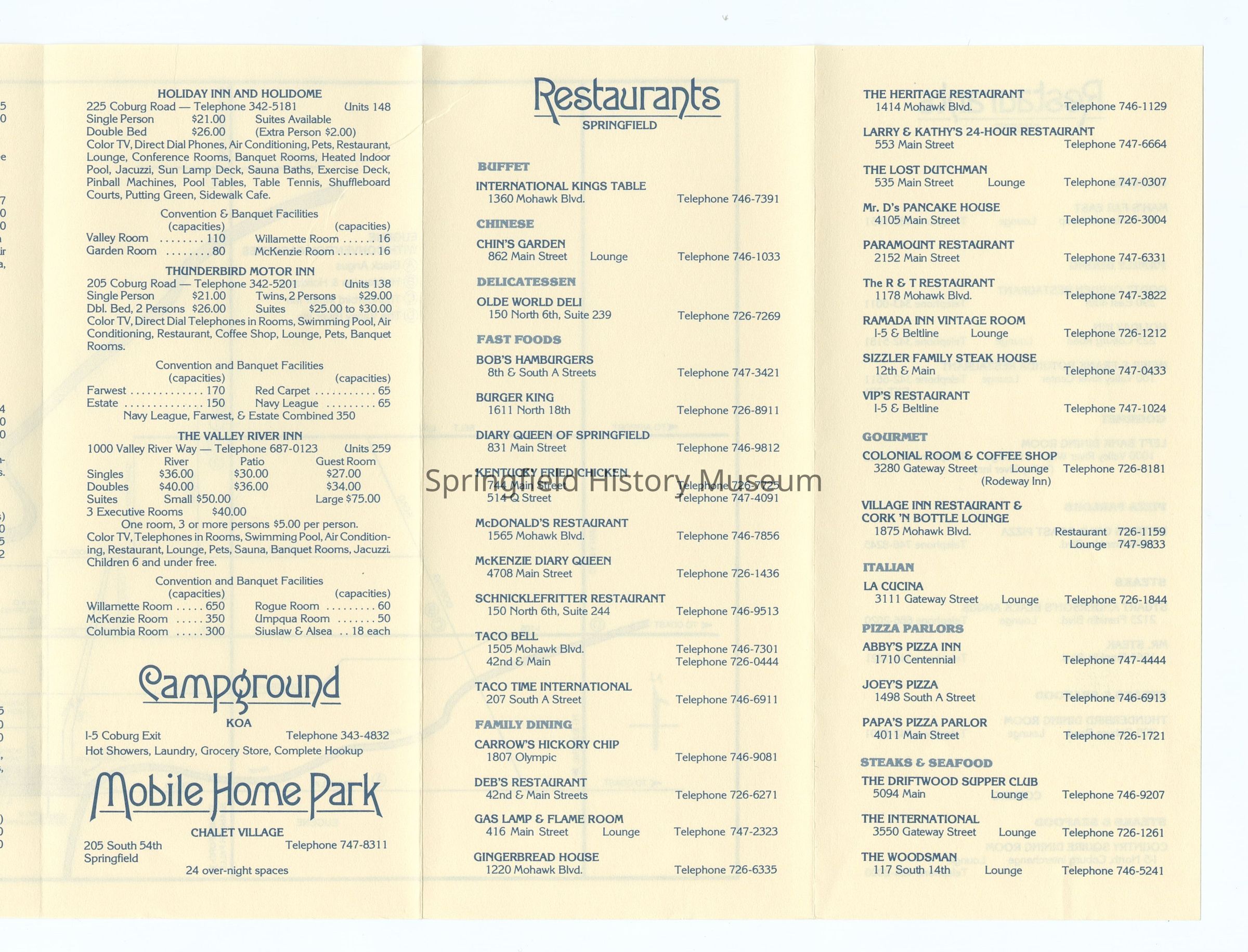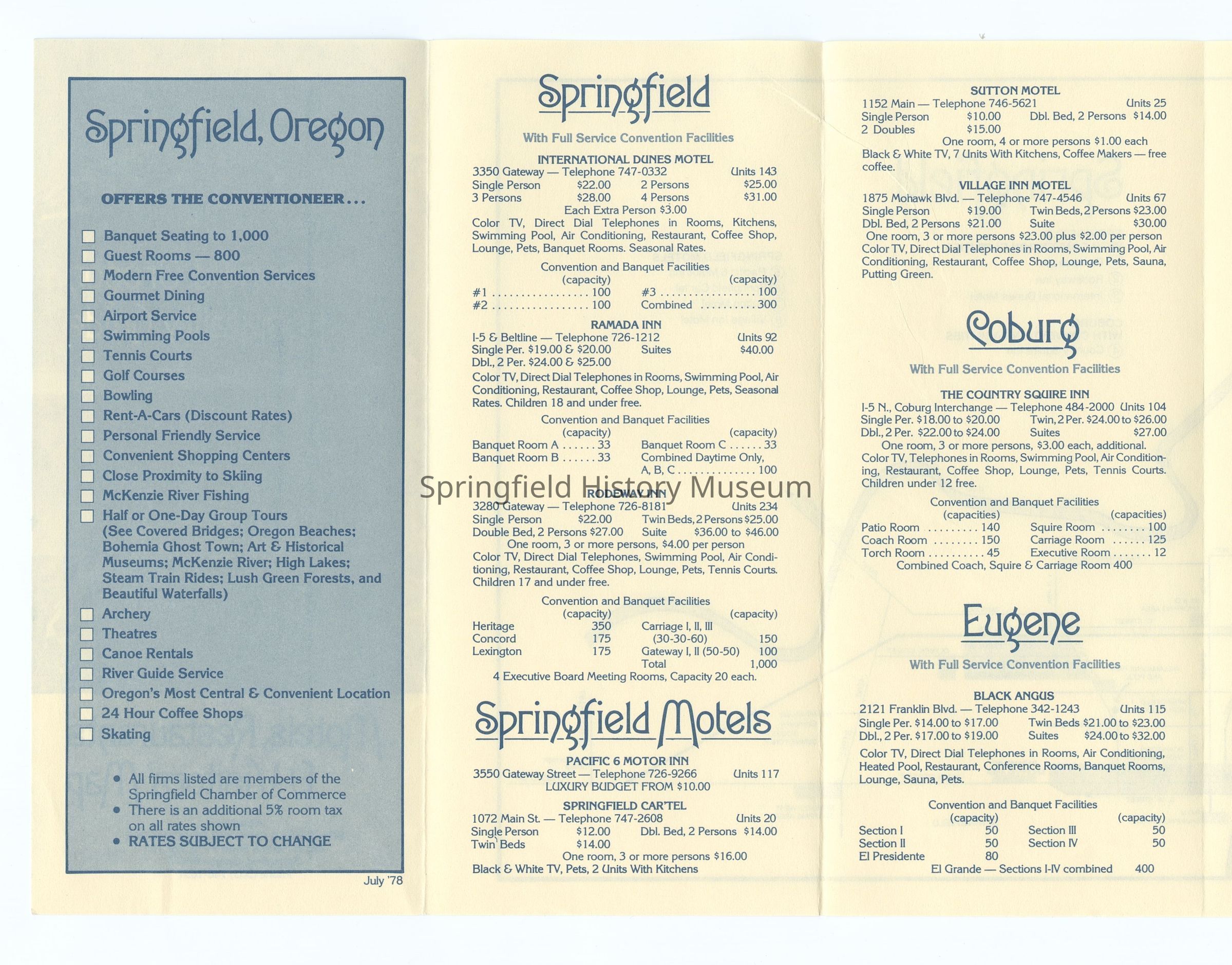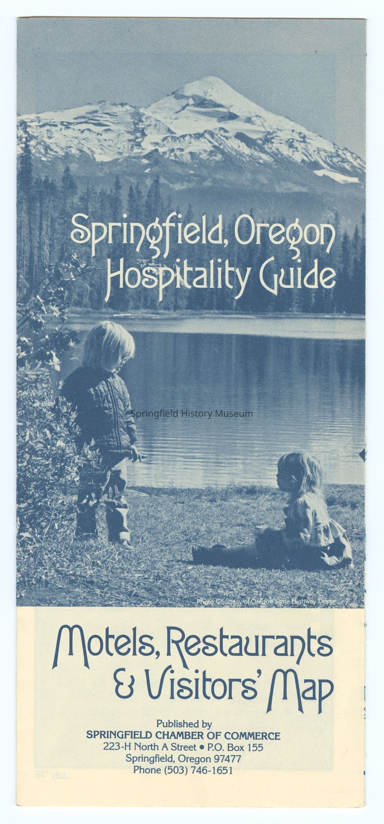 Hospitality Guide, Motel, Restaurants and Visitors Map of Springfield, 1978. Photograph 2021.005.213 on cover.Context