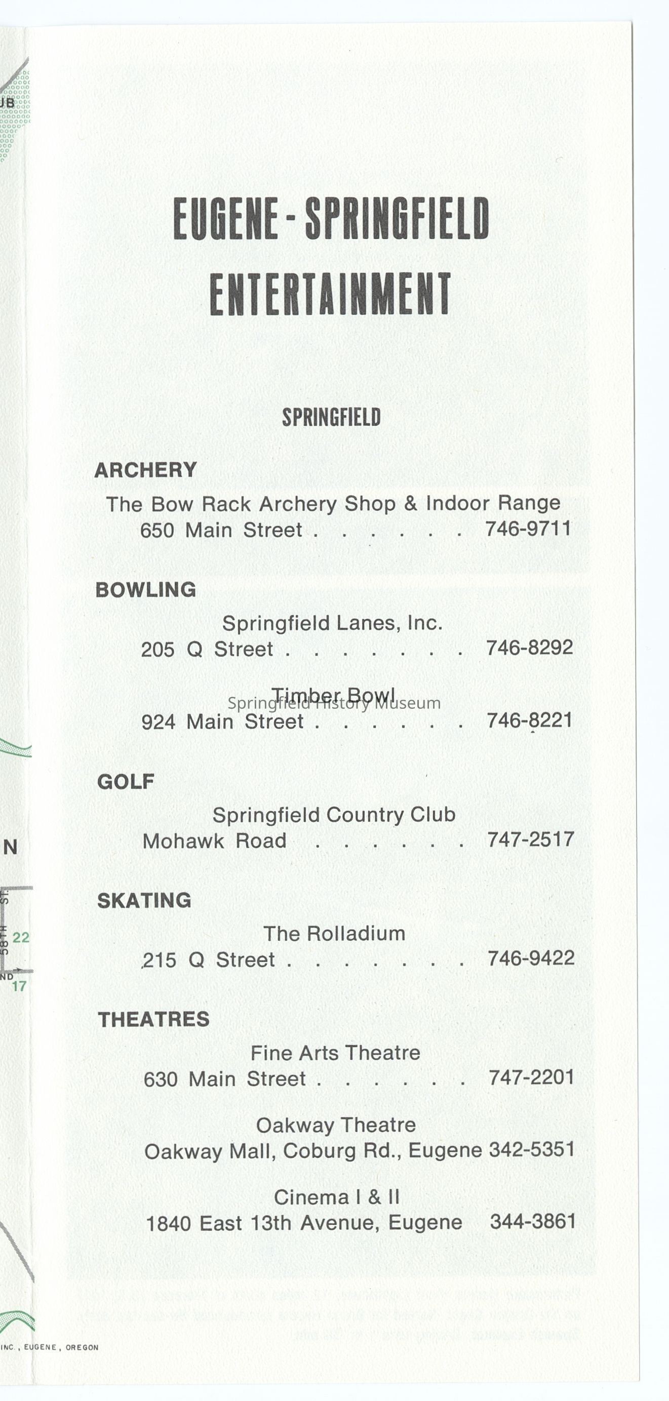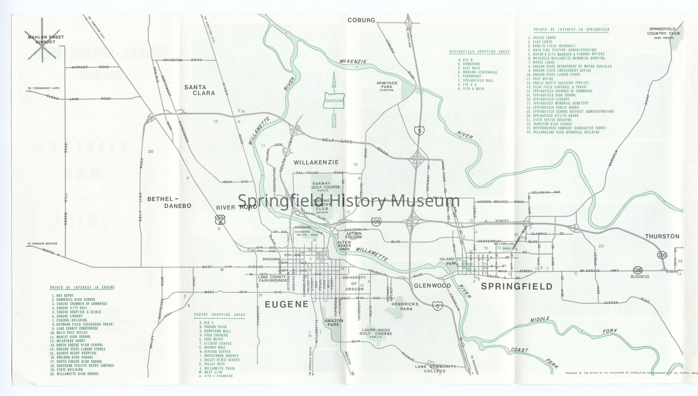 Tourist Map of Springfield and Eugene, undated, circa 1980Context