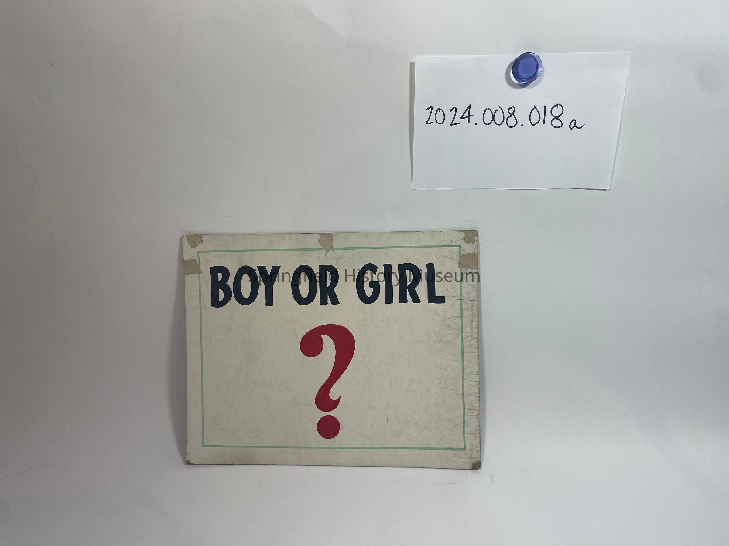 Two hand-painted signs made for Dorothy and Clarence Scherer's marriage in 1950 and the announcement of their first pregnancy following the marriage. Signs are numbered A and B.Collection