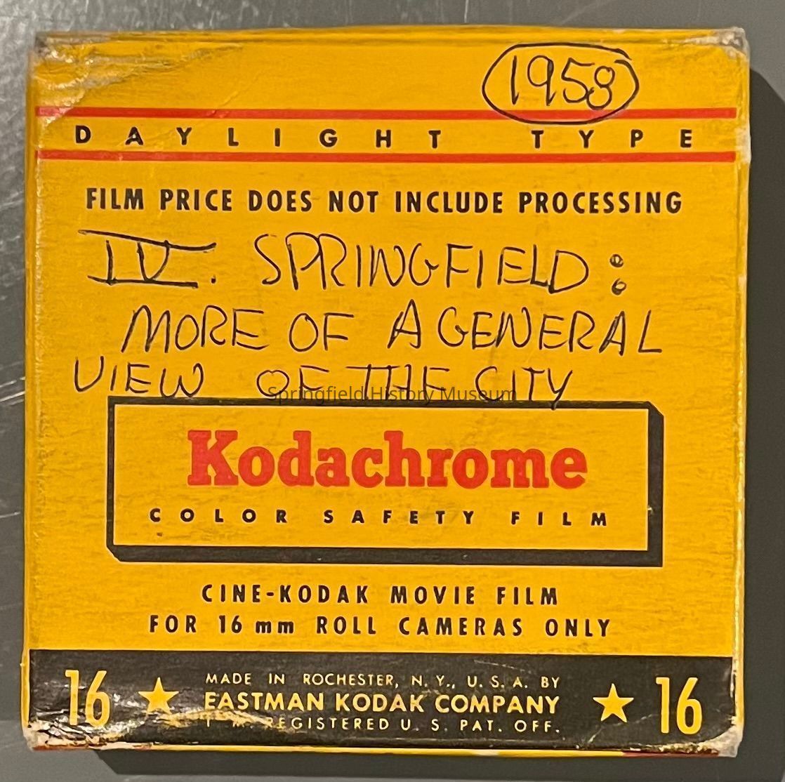 Video recording labeled 'IV. Springfield, More of a General View of the City', 1958. 16mm Kodachrome Color Safety Film.Collection