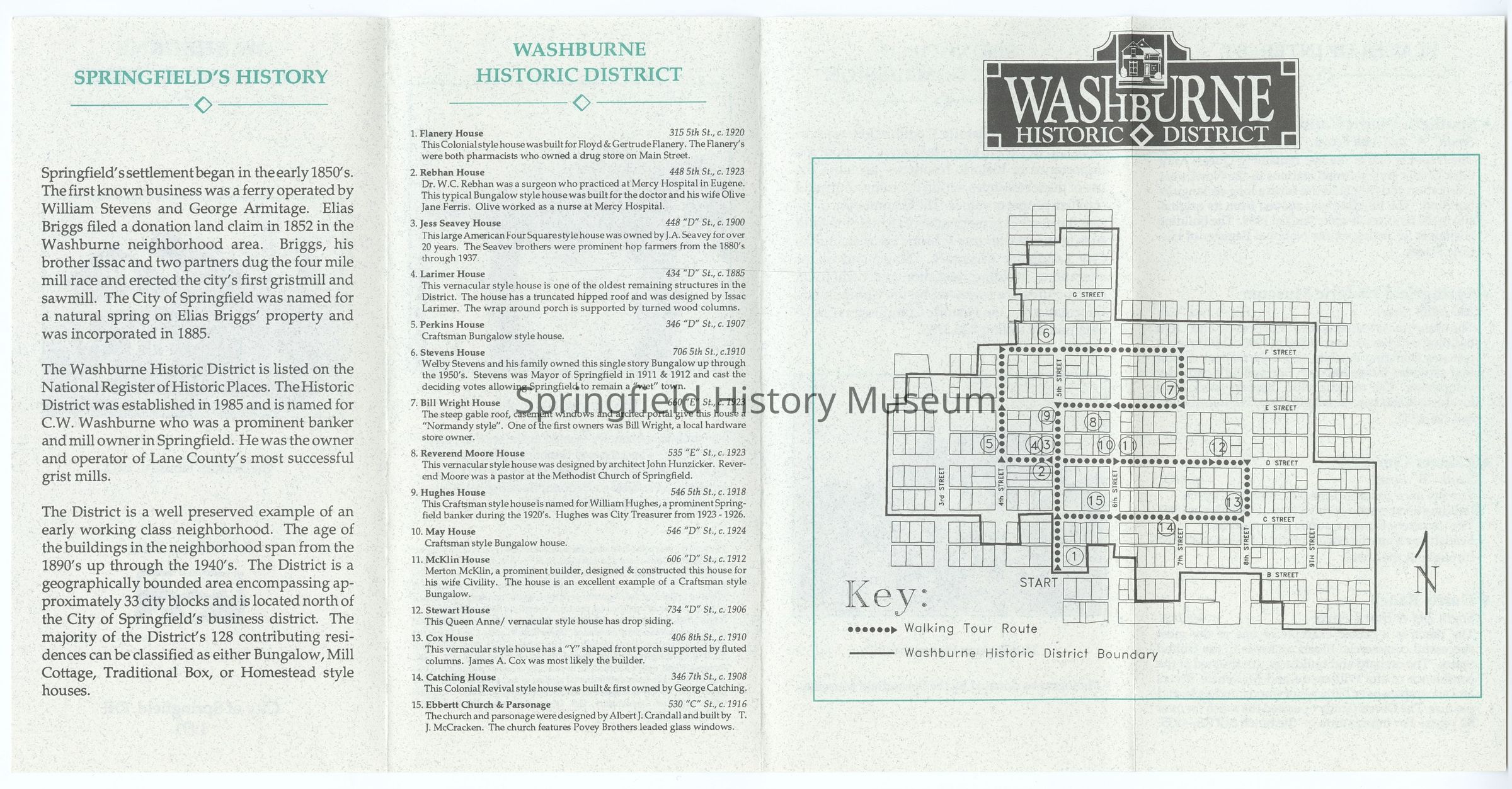 Walking Tour Map of Washburne Historic District, Springfield, 1991Context