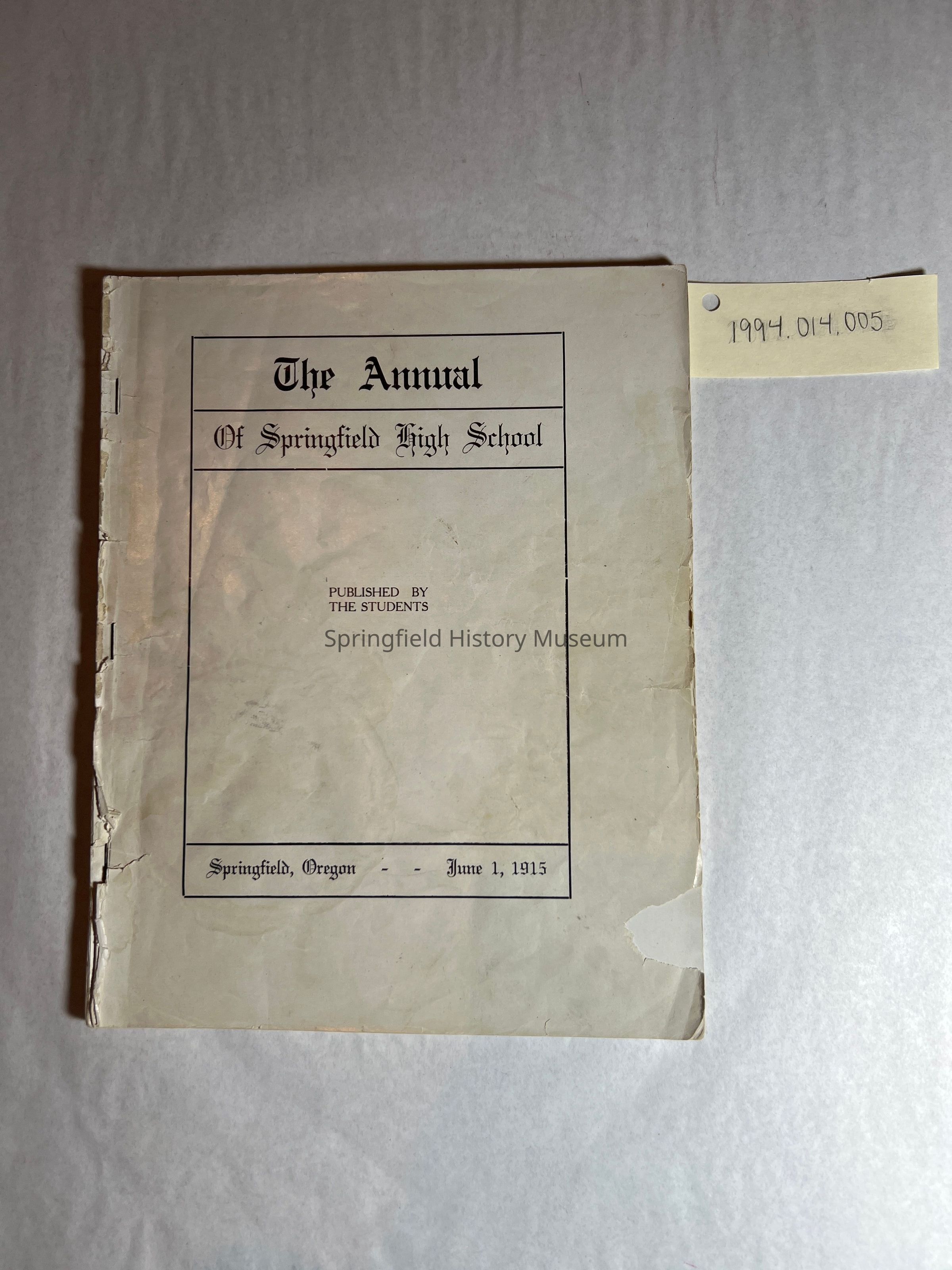 Yearbook, Springfield High School Annual, 1915