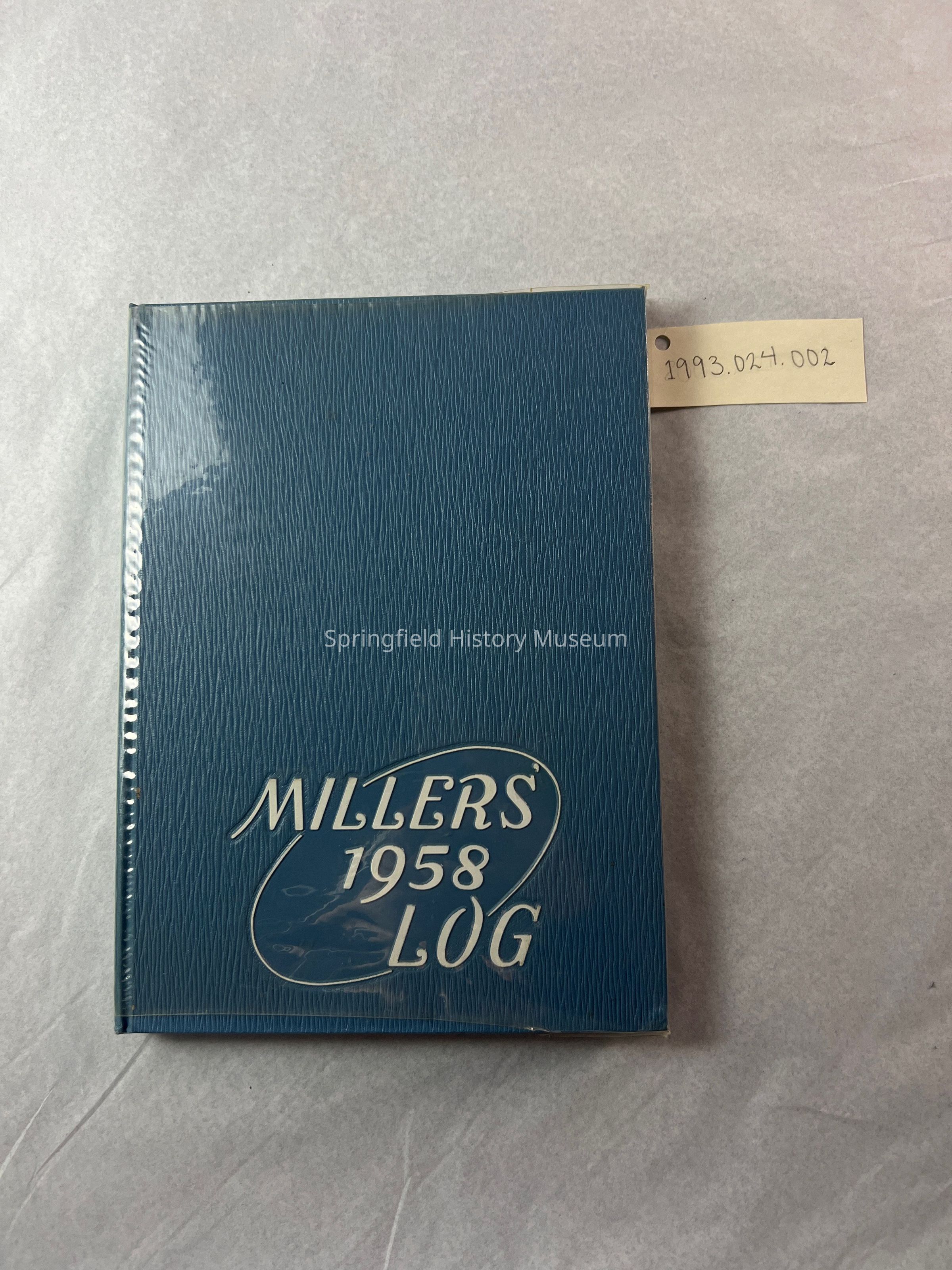 A Millers' 1958 log, SHS Yearbook, blue hardback (Missing from original packet).