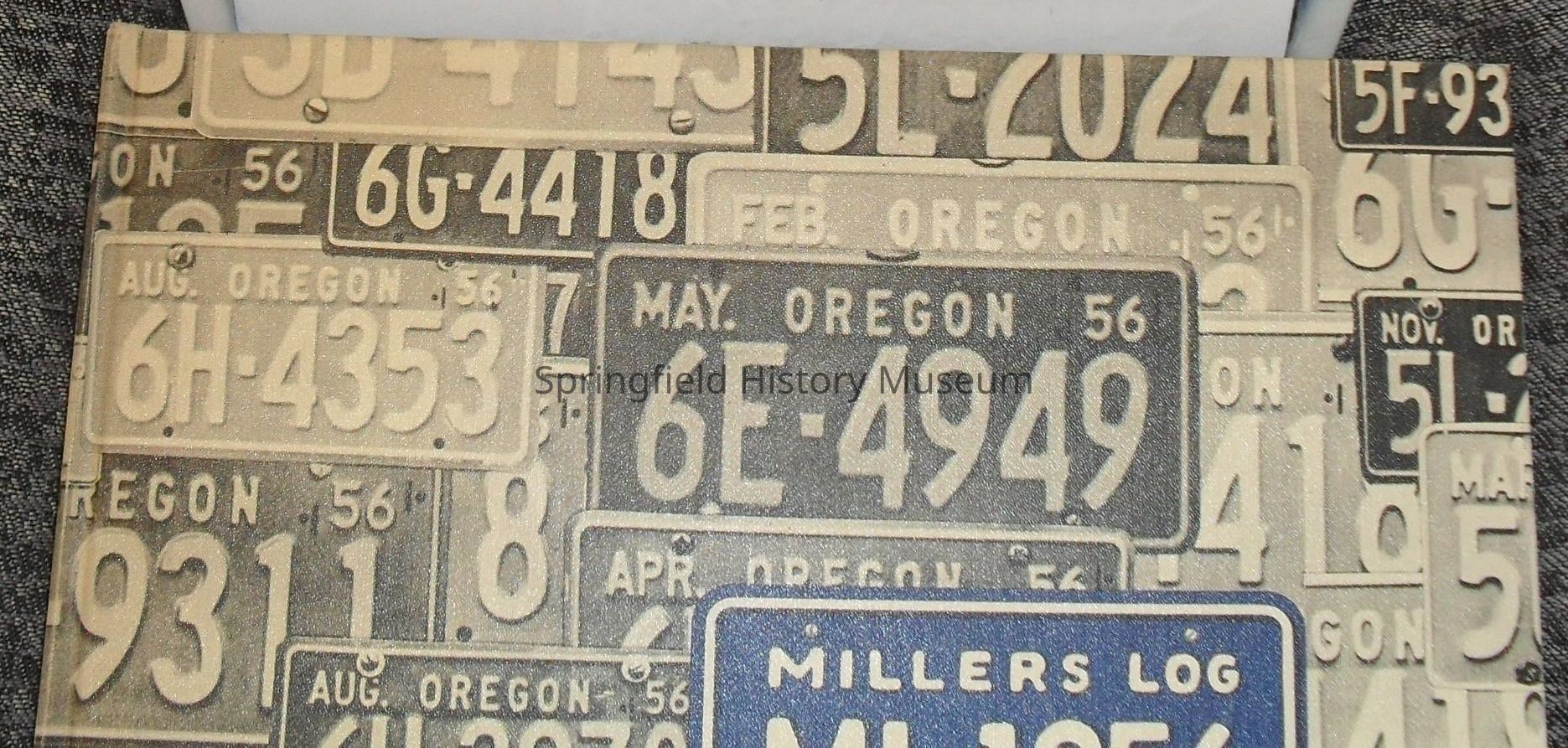Millers' log, ML 1956, Springfield High School yearbook, hardback, license plate collage. (Yearbook is missing from original packet).