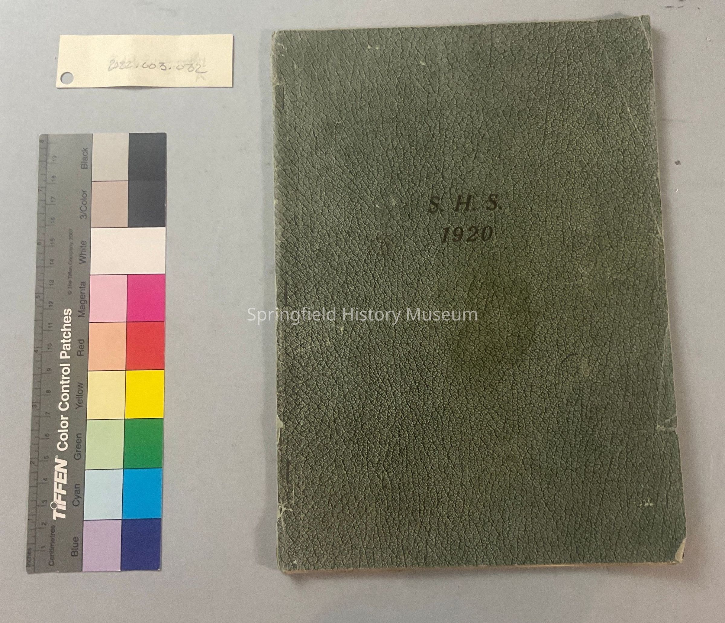 Springfield High School Annual, 1920. Softbound with green mottled covers. Owned by Mabel McPherson.