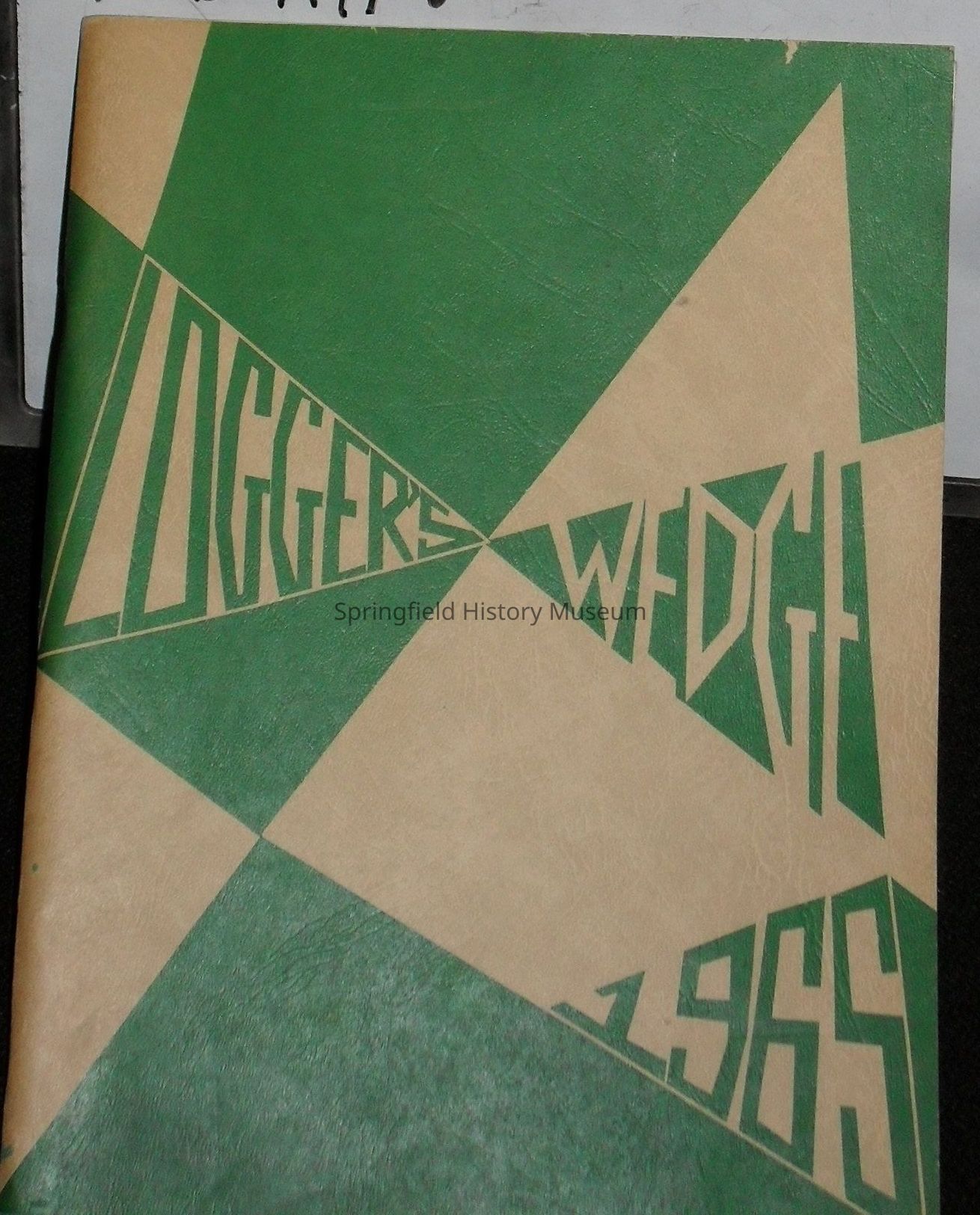 A yearbook for Hamlin Junior High School of 1965. The front has a triangular imagery with the words "Loggers Wedge" and 1965. The inside has pictures of students from the 7th-9th grade and other school activities.