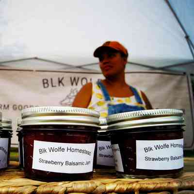 photograph of food stands during Flood, 1945