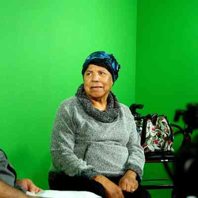 photograph of Elwina Meacham on Studebaker, circa 1940