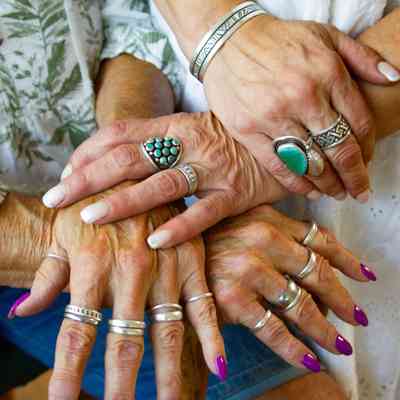 photograph of Millrace with two women sitting on fence, date unknown