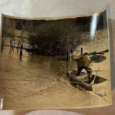 photograph of men in boats unloading people during Flood 1945,