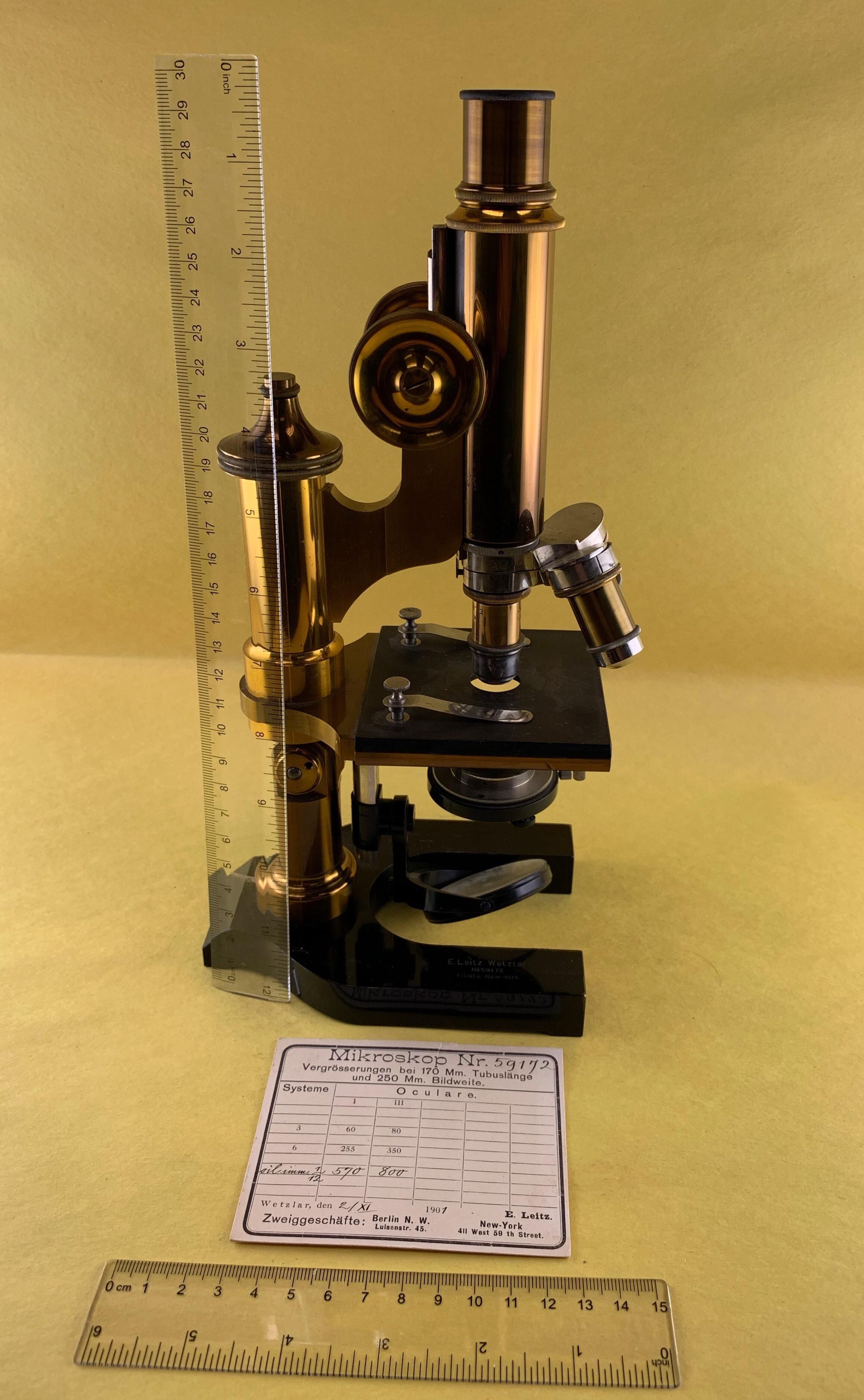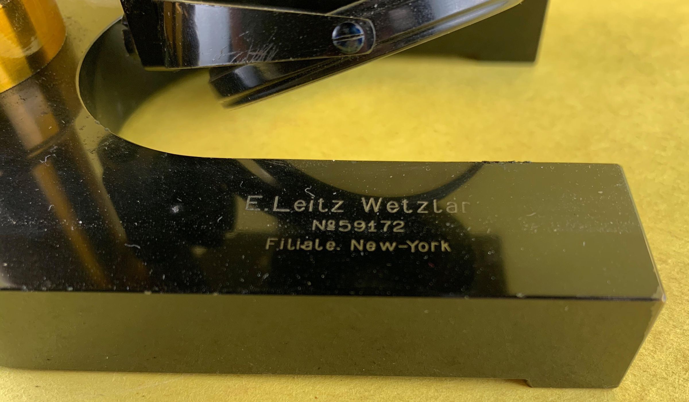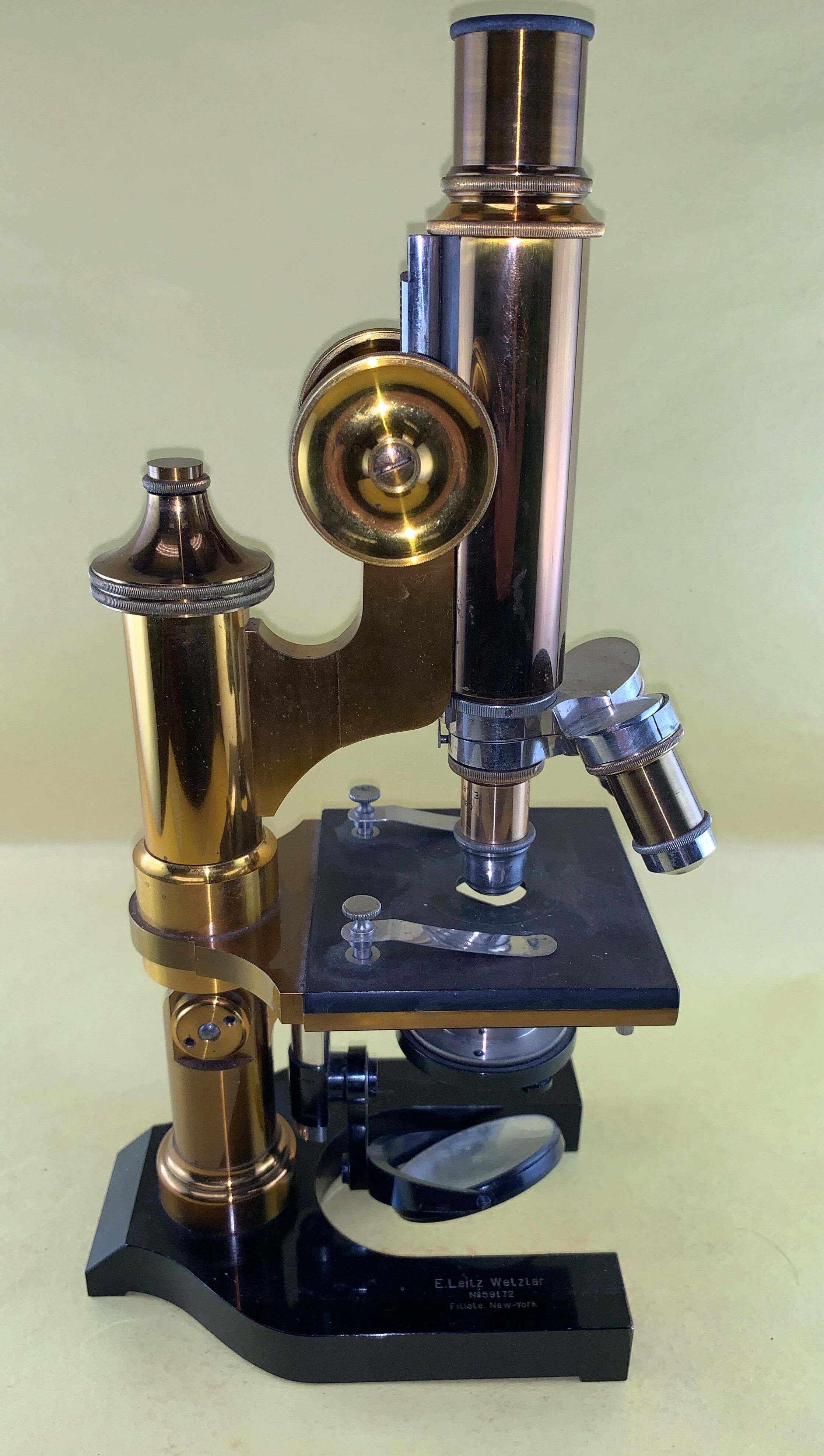 Left; E. Leitz Wetzlar, Germany; about 14 “ high, rusted copper color with a black base
