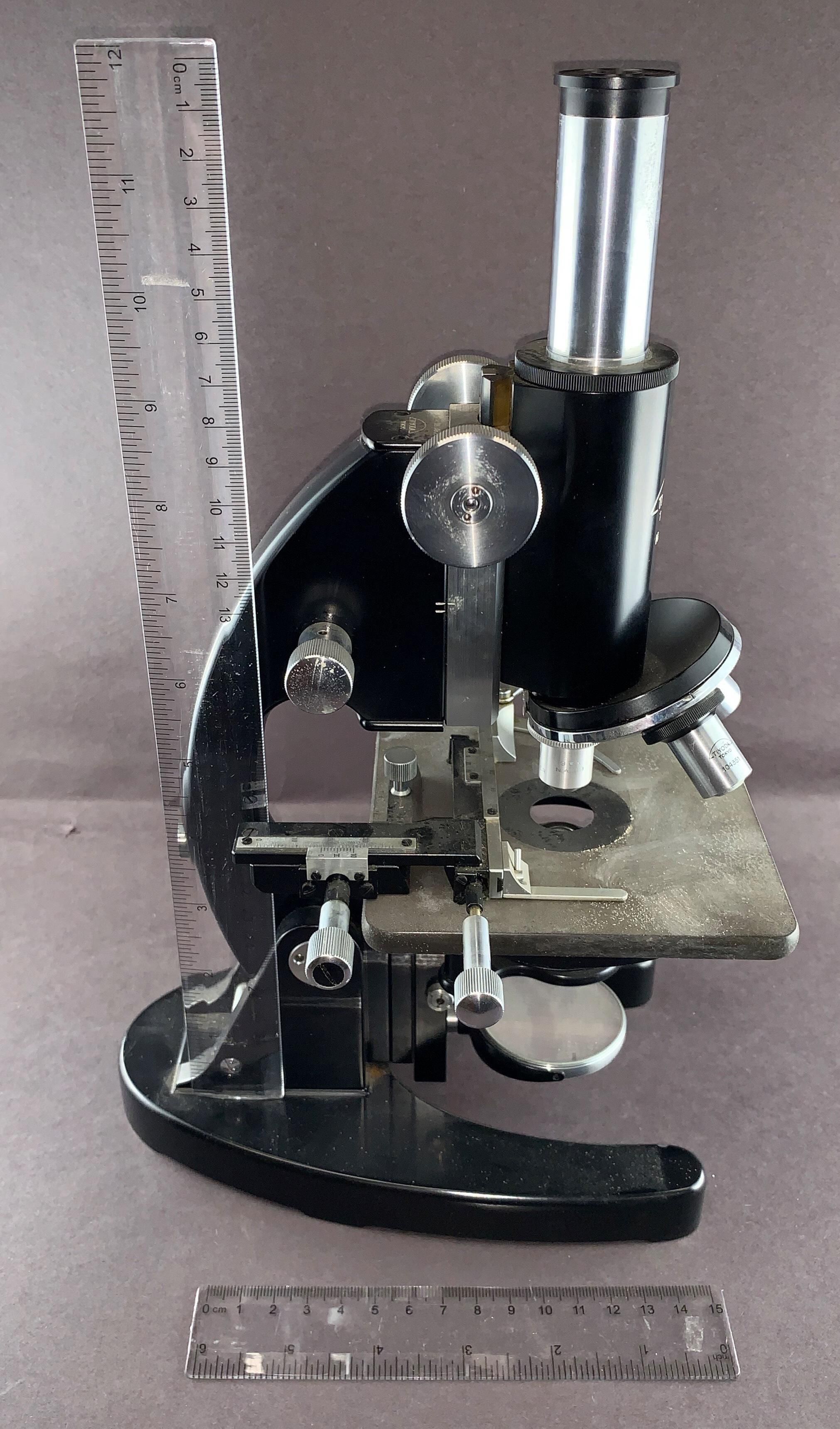 Japanese black and silver microscope