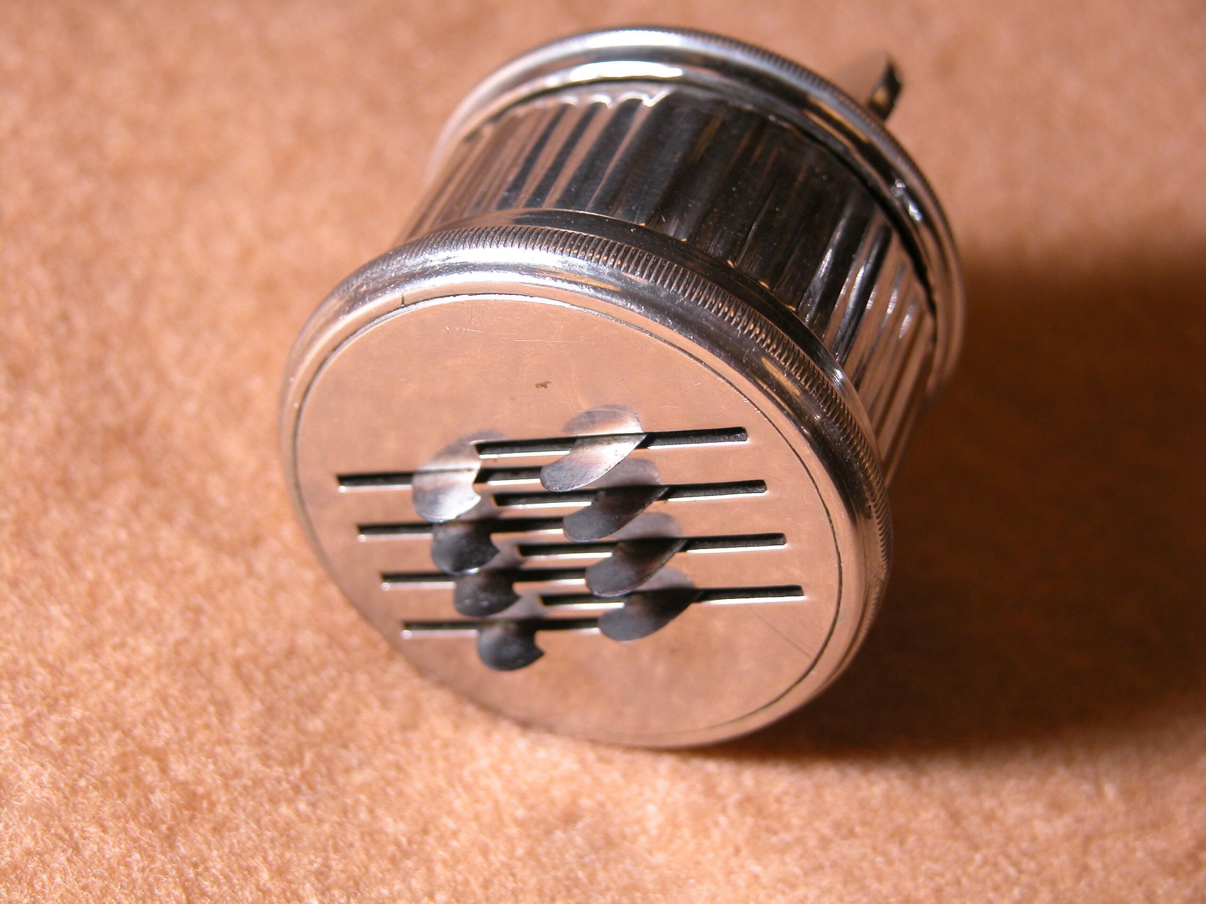 The scarficator which employed twelve, spring-loaded rotary blades to puncture the skin, was a bloodletting instrument used in the ancient practice of phlebotomy to balance the four humors (blood, phlegm, yellow bile and black bile). The blood would be collected in a shallow bowl with the practice continuing up until the early 19th century. Our first President, General George Washington is believed to have died from excessive bloodletting to cure a soar throat (quinsy).