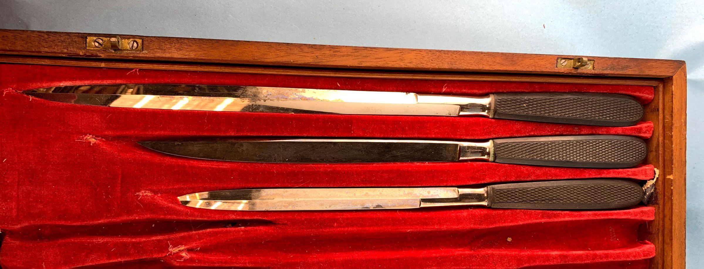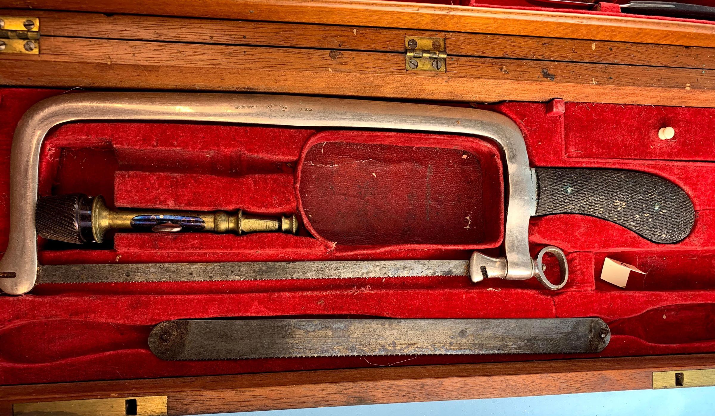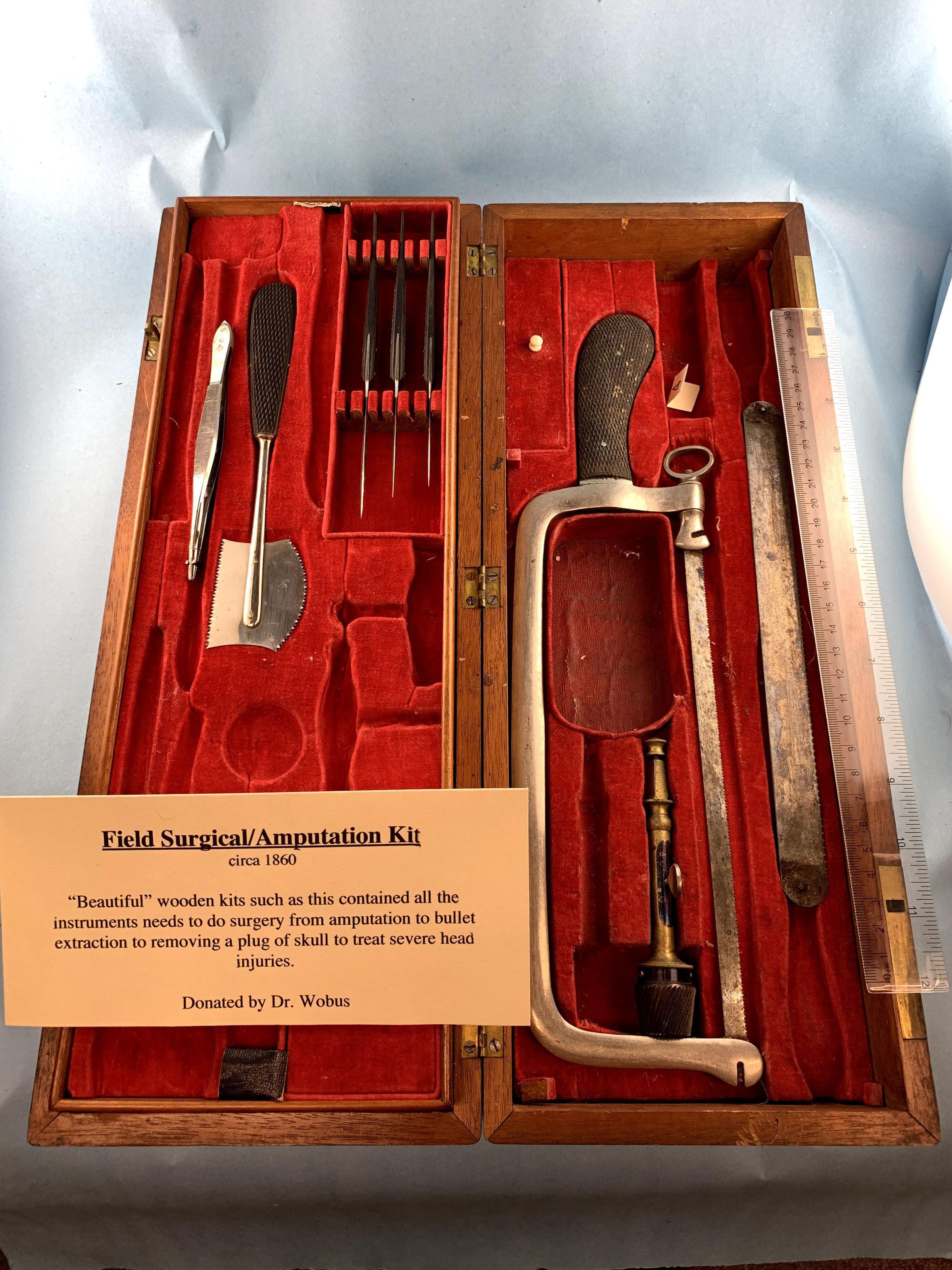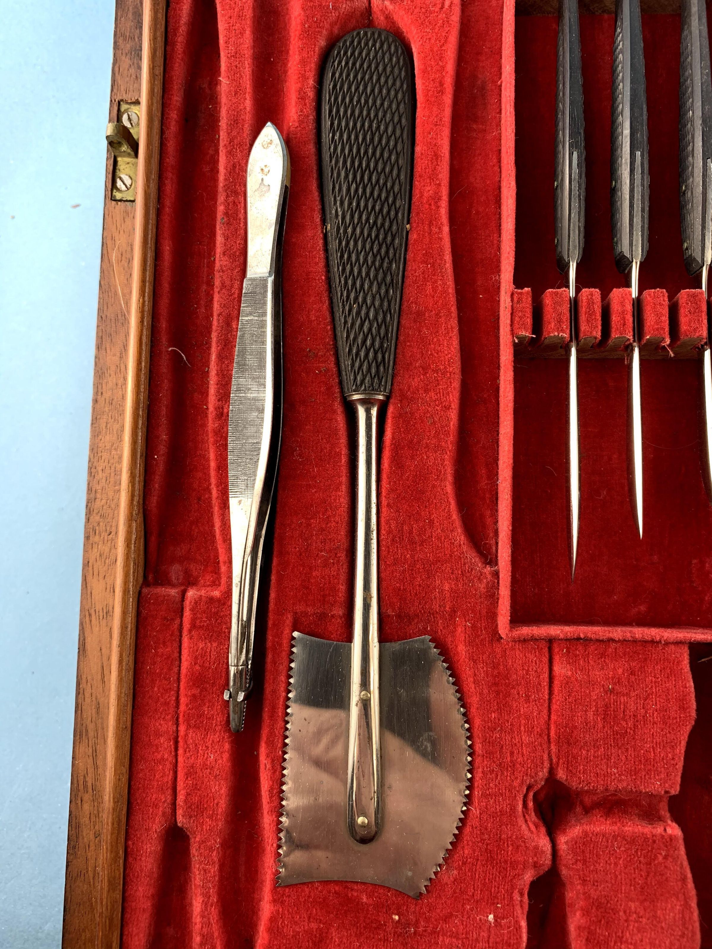 AMPUTATION KIT, WOODEN CASE, EBONY HANDLES, CIRCA 1860