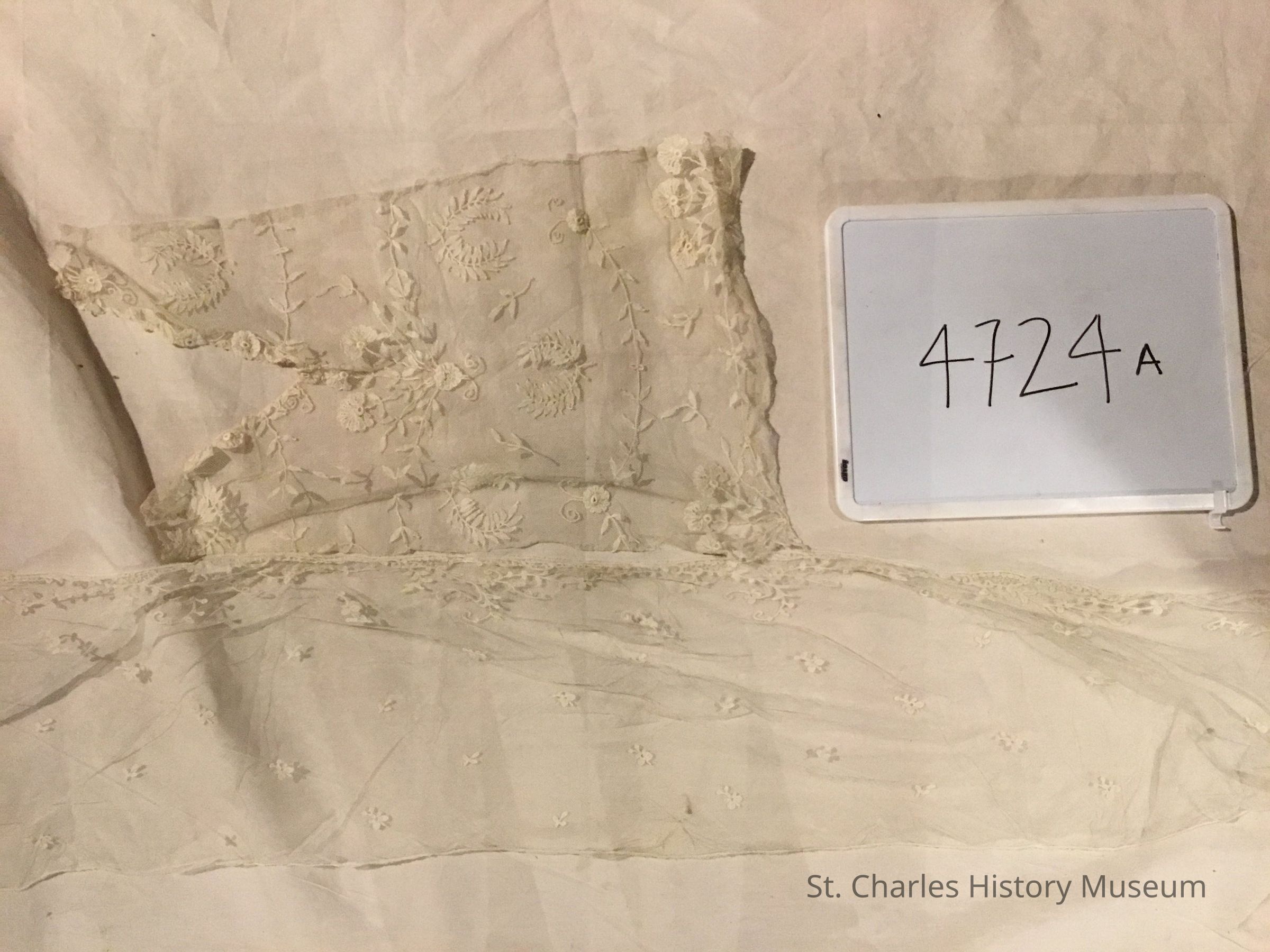 One piece net and lace; Scarf? White net with floral design lace; design incompleteLexicon