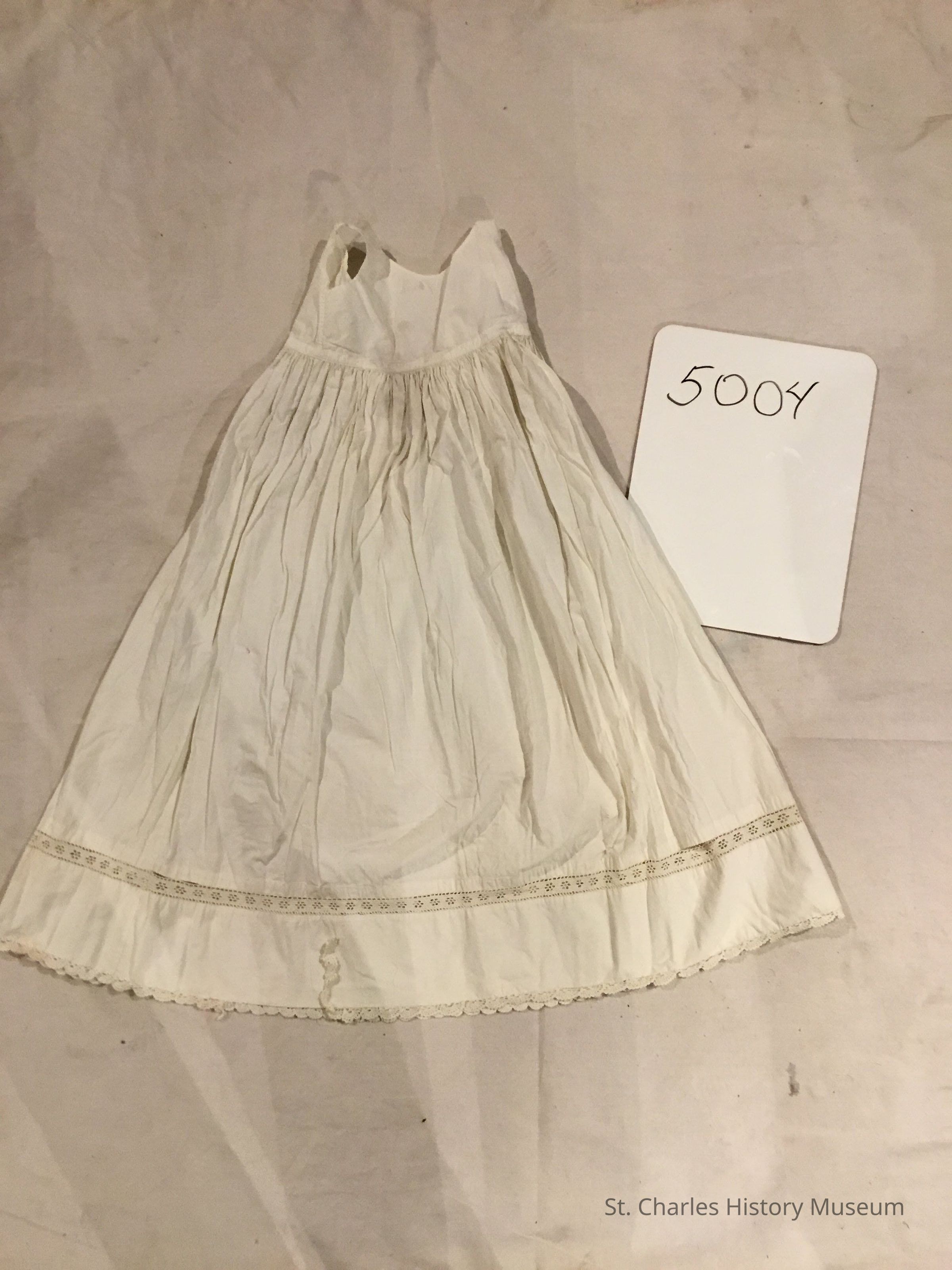 Baby slip, white w. crochet trim on hem; crochet band 3.5" from hem