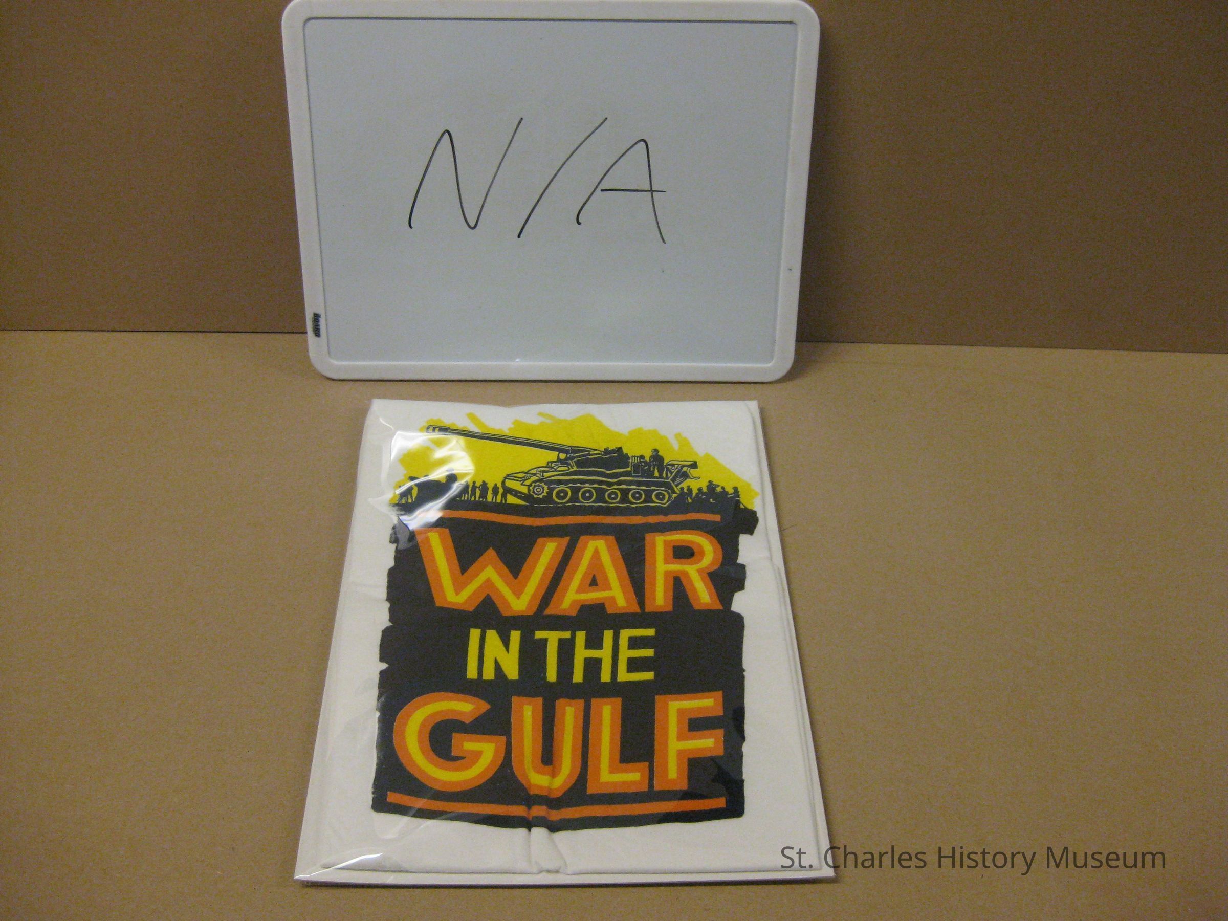 Man's T-Shirt; "War in Gulf" printed on front; owned by Lawrence Gonzales; Haines; Size XL; 1990-1991Lexicon