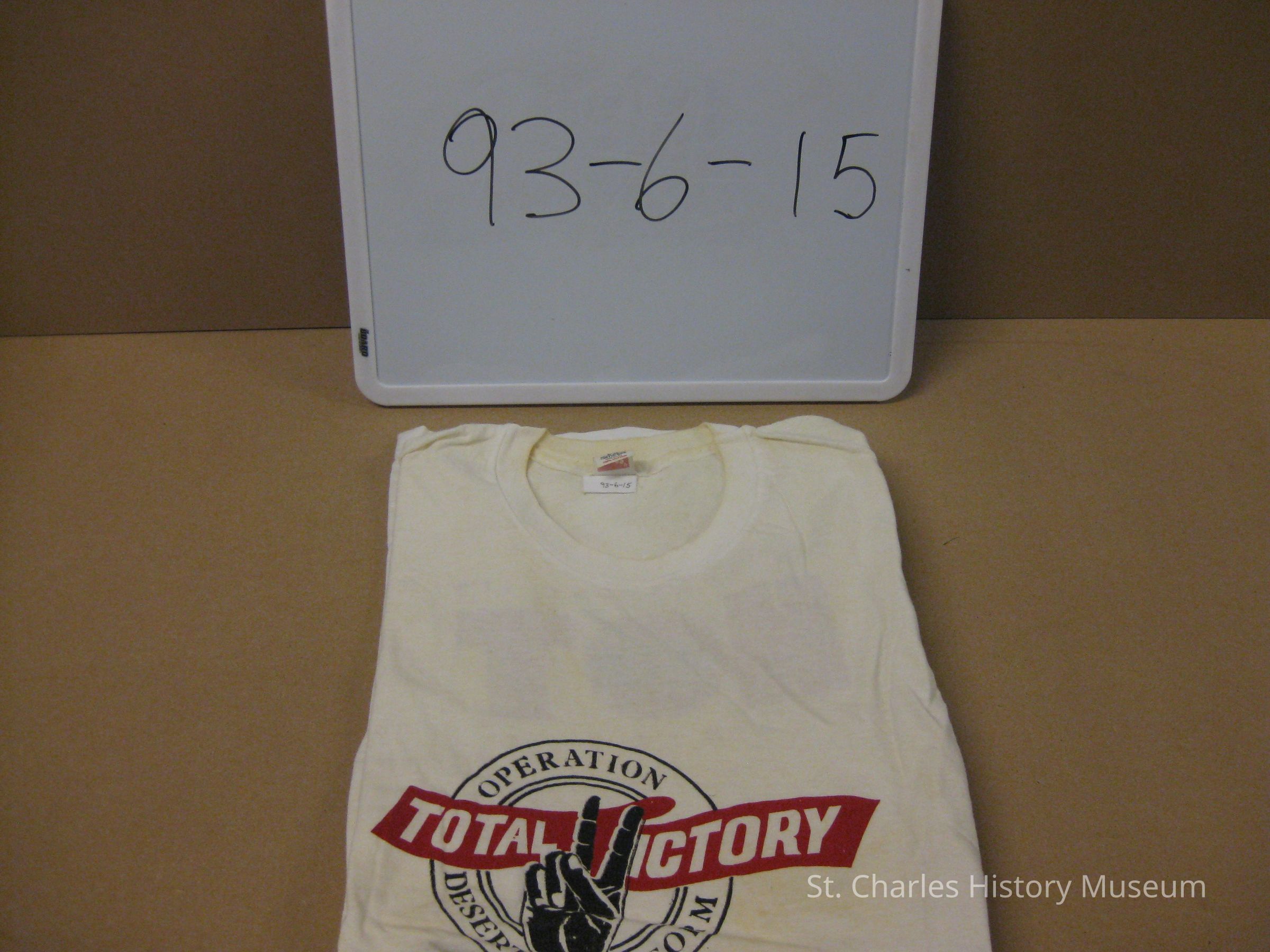 Operation Desert Storm T-Shirt; Total Victory on front; I'm back and It's Hot Down There on back; Haines, Size XL; stain to left of emblem and lower hem; 1990-1991Lexicon