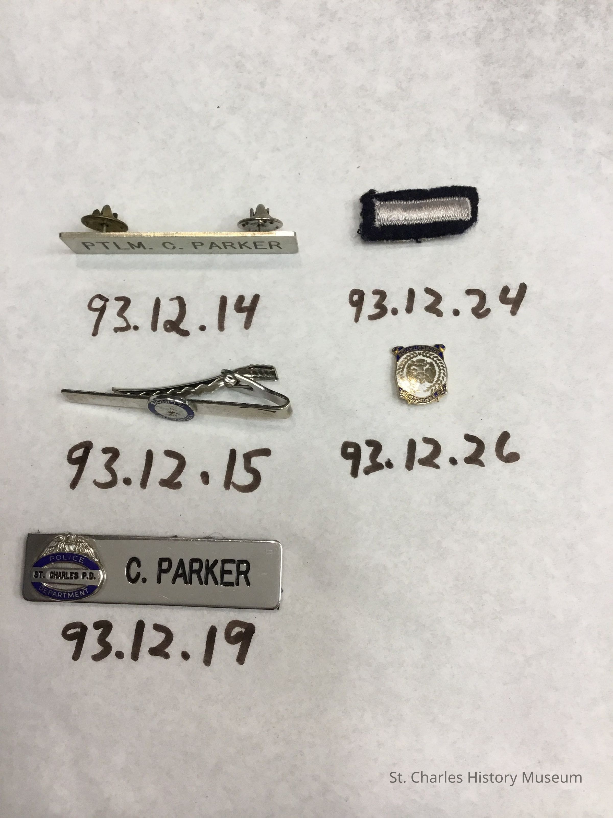 St.Charles Police Dept. uniform tie clasp; State of Illinois emblem on front