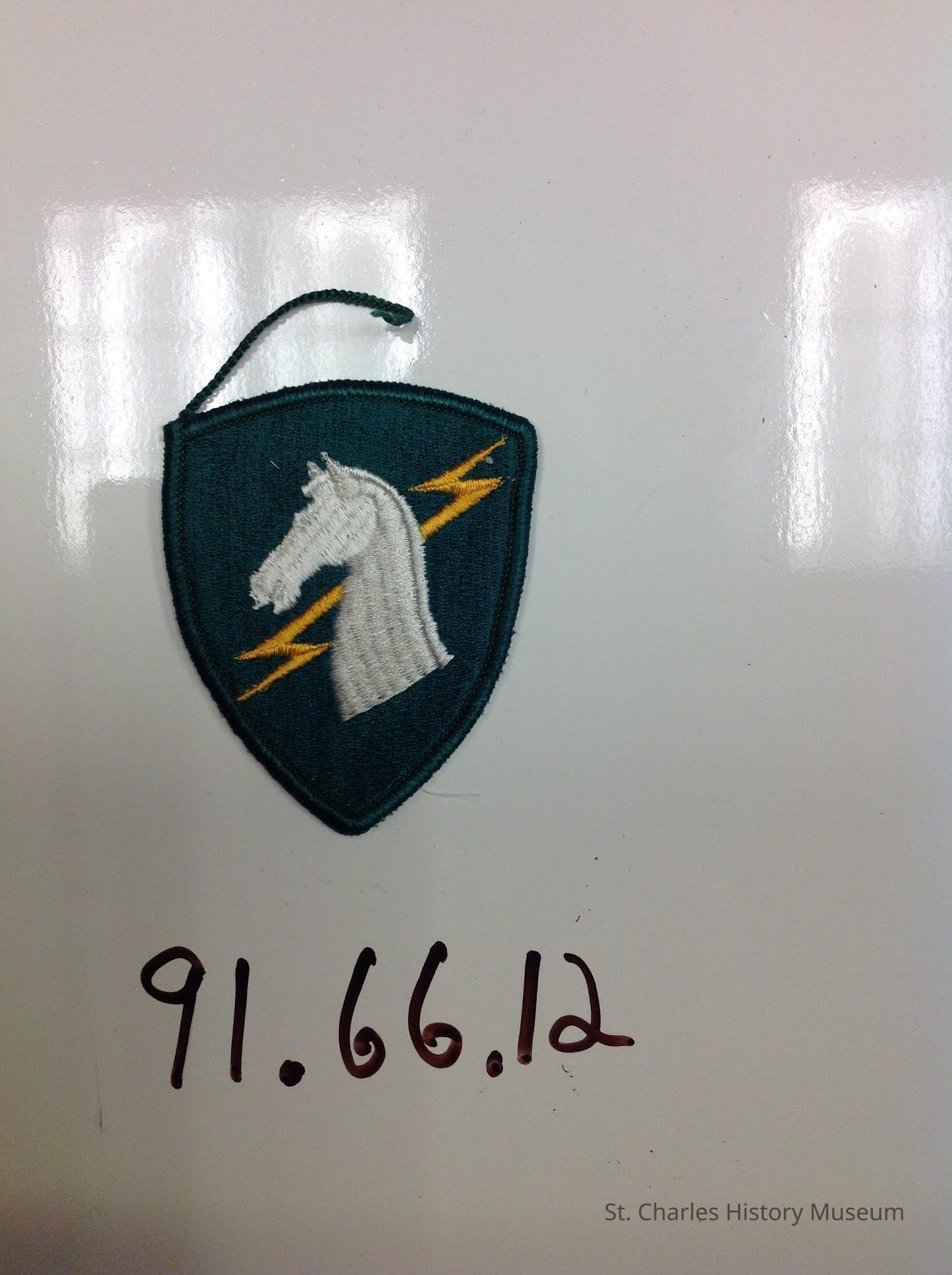 Bright green patch with gold lightening bolt and white horsehead. Worn on dress uniform.Lexicon