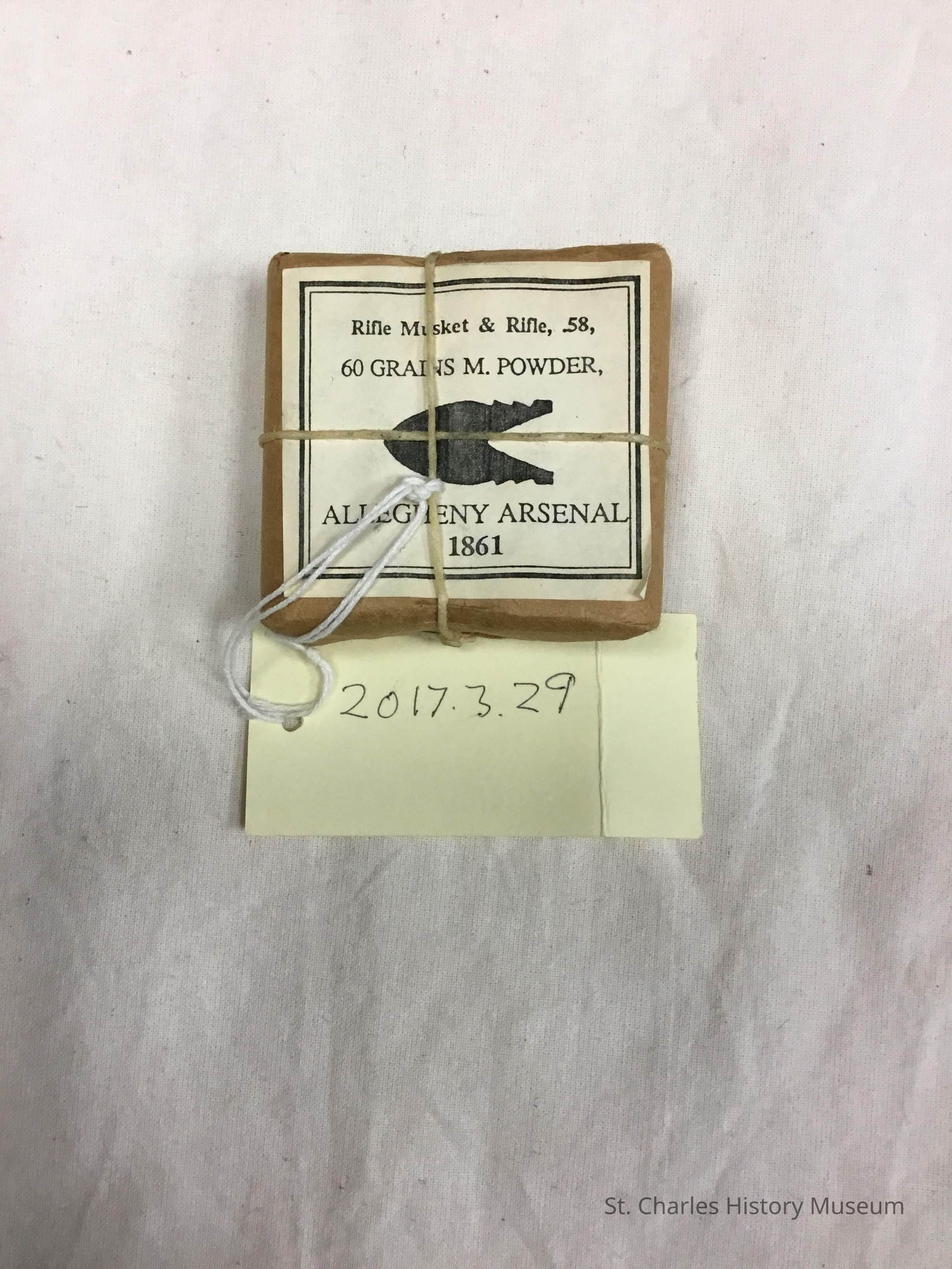 2017.3.29 This packet of gunpowder was placed with many like it in large wooden boxes. This one package would be a soldiers ration of gunpowder.Context