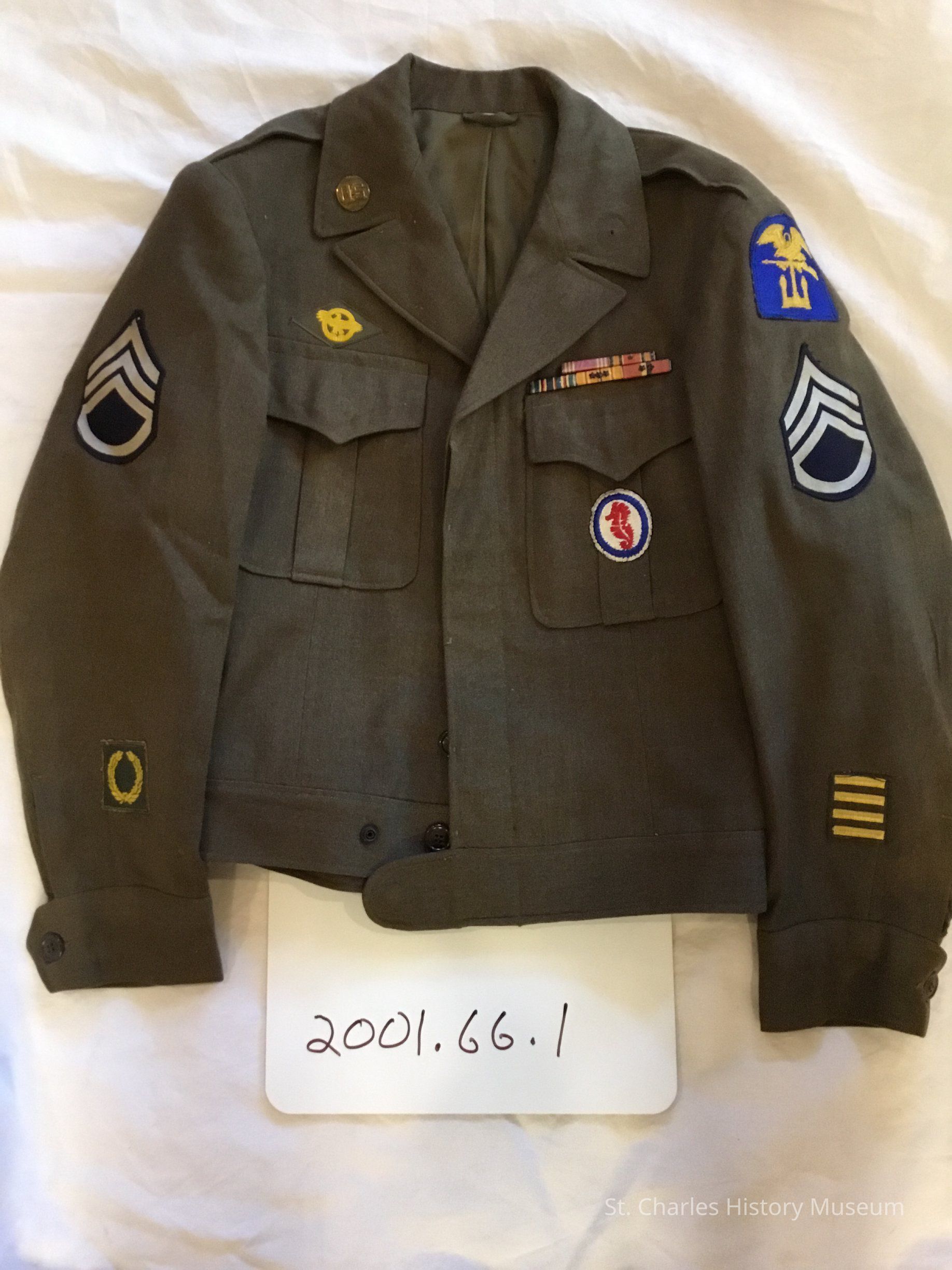 World War II Eisenhower Jacket worn by St. Charles Veteran Medeyo Cotti.