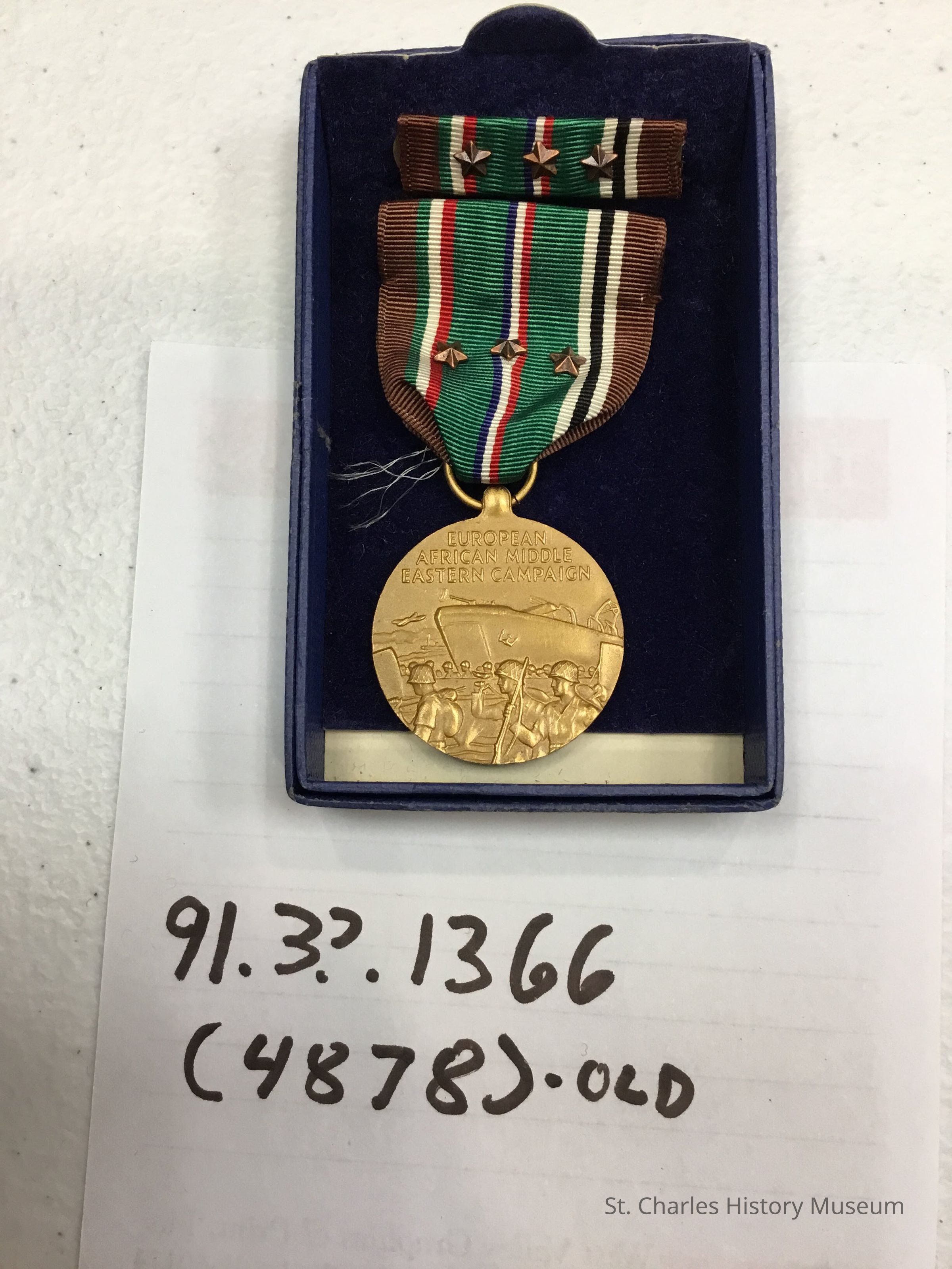 under fire with an airplane in background below the words ‘‘European-African-Middle Eastern Campaign.’’ The